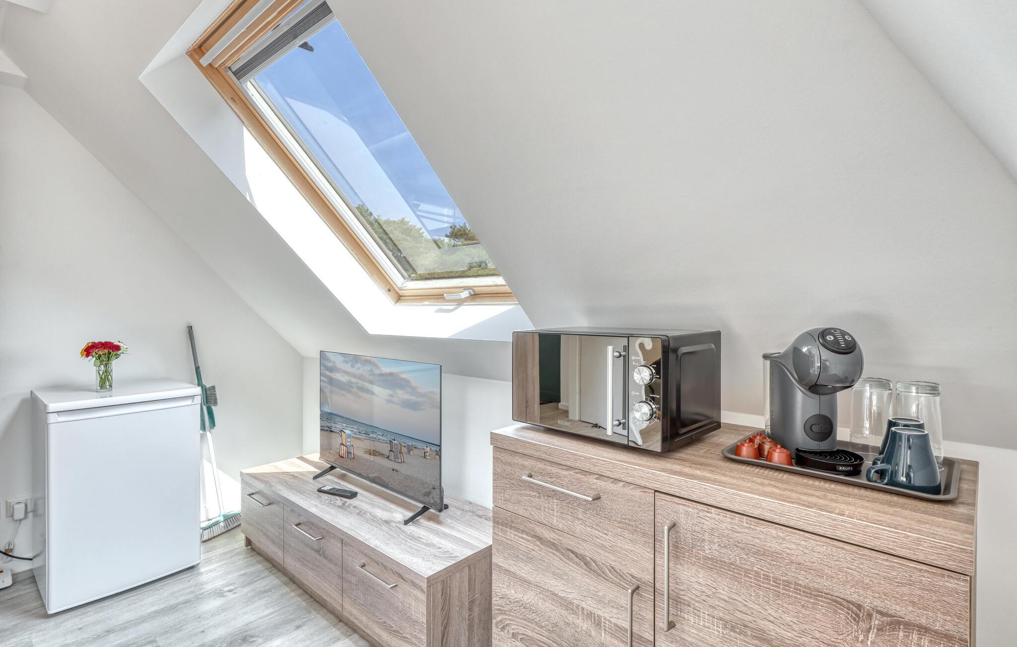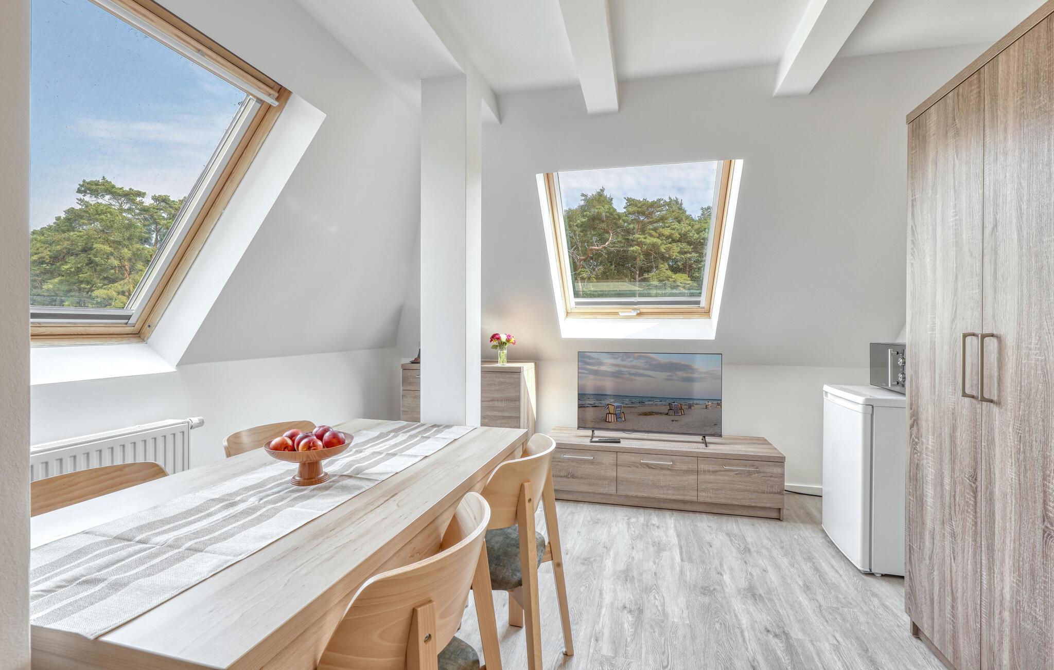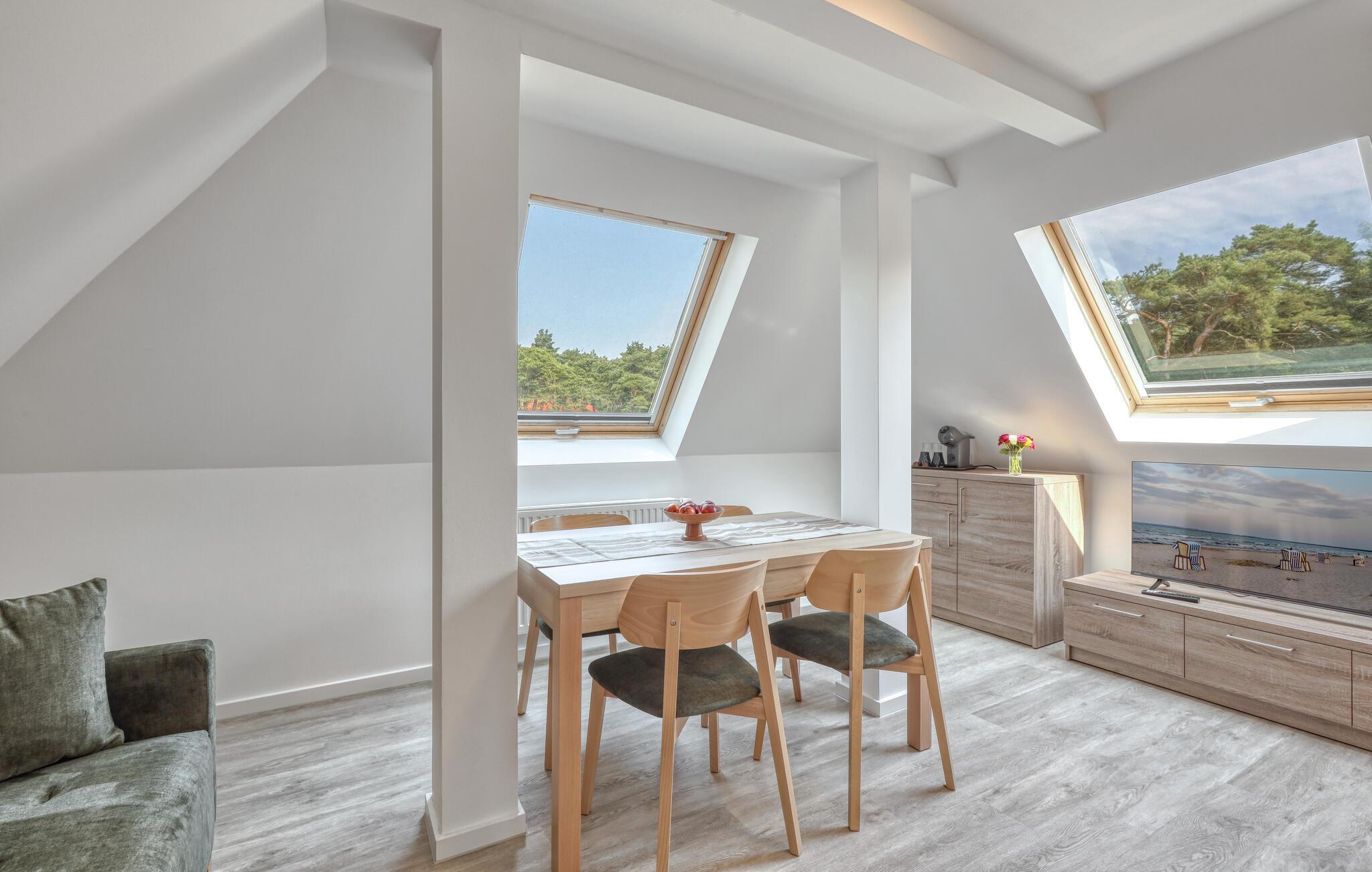 Der er lagt op til nogle fredfyldte dage i denne funktionelle og moderne lejlighed, der ligger nogle få skridt fra den smukke naturstrand. Her er der gode rammer til par, familier eller venner på tur. Feriekomplekset ligger idyllisk placeret mellem fyrreskove og klitter, ideelt til afslappende dage ved havet eller aktiv rekreation midt i naturen. Efter en begivenhedsrig dag kan I vende tilbage til de lyse rum, sætte jer til rette i de behagelige møbler og snakke længe.