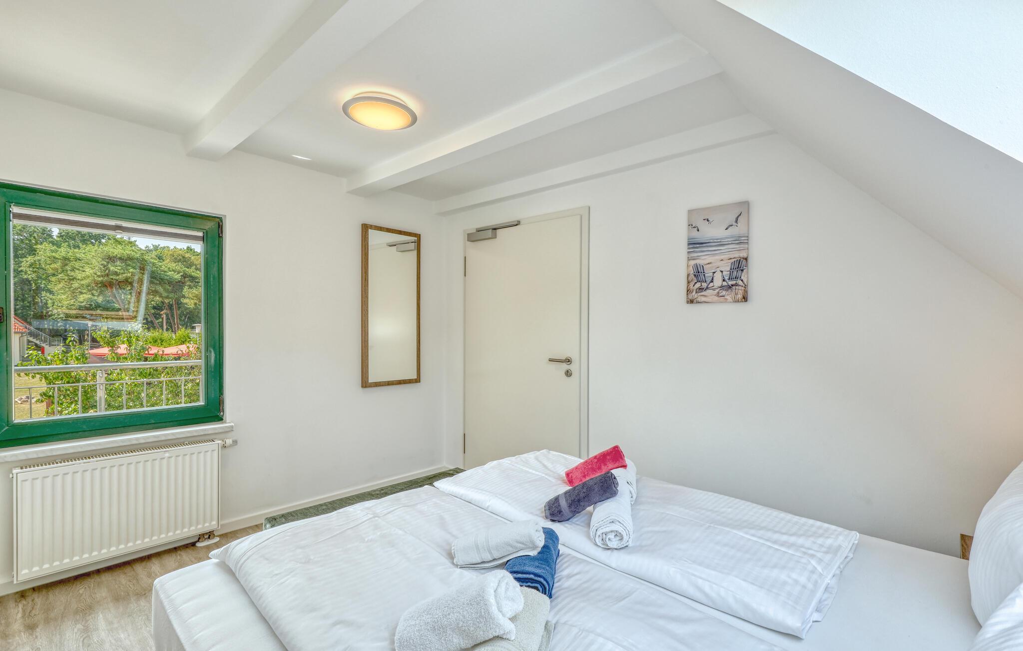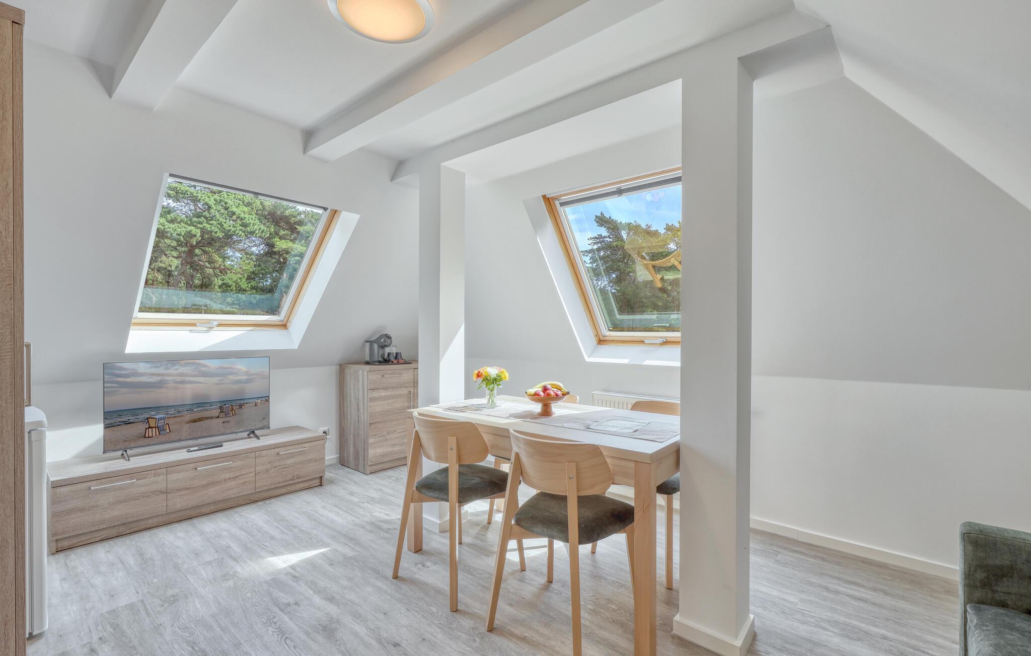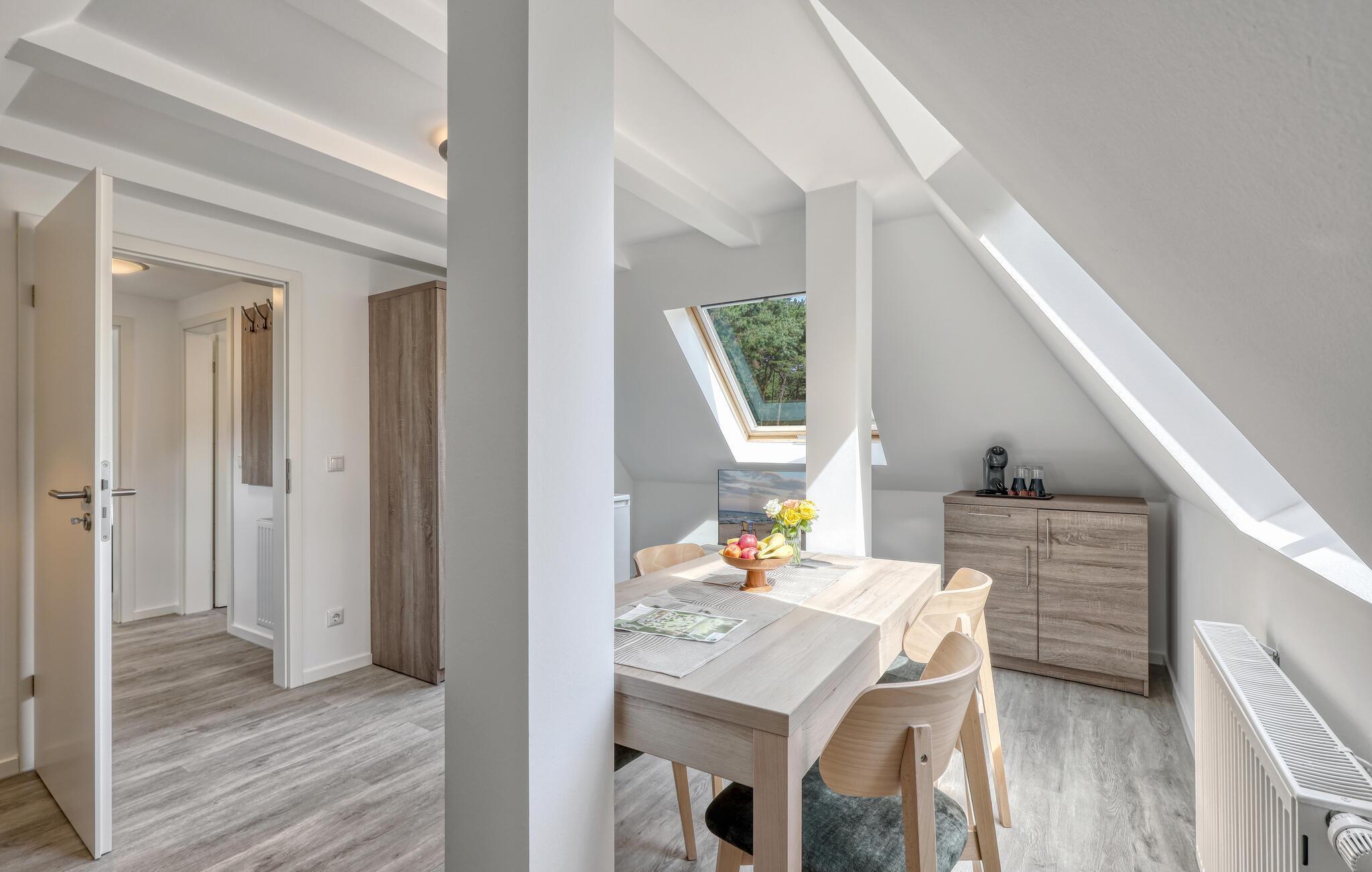 Der er lagt op til nogle fredfyldte dage i denne funktionelle og moderne lejlighed, der kun ligger et stenkast fra den smukke naturstrand. Feriekomplekset er smukt placeret mellem fyrreskov og klitter, ideelt til afslappende dage ved havet eller aktiv rekreation midt i naturen. Efter en begivenhedsrig dag kan I vende tilbage til de lyse værelser, sætte jer til rette i de komfortable siddepladser og snakke længe.
