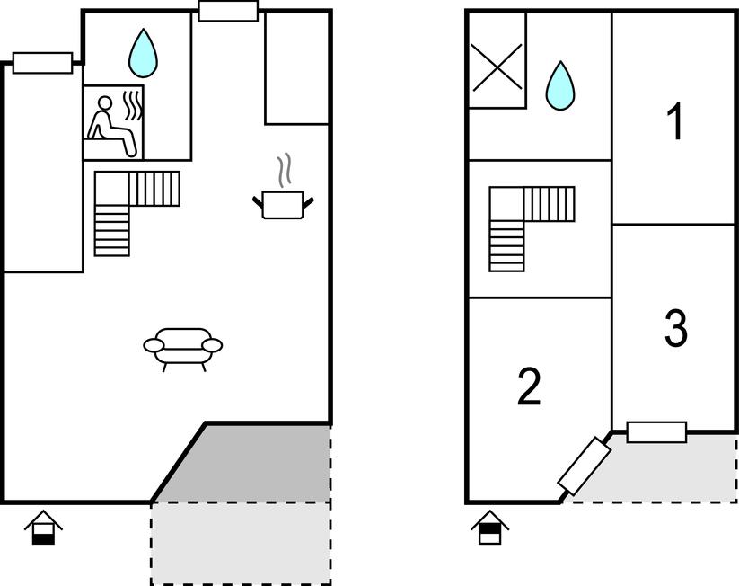 De viste billeder kan være virkelige eksempler. Alle objekter er indrettet efter en høj standard, men farverne og designet på møblerne kan variere en smule. Grafikken blev lavet af Plankosmos.