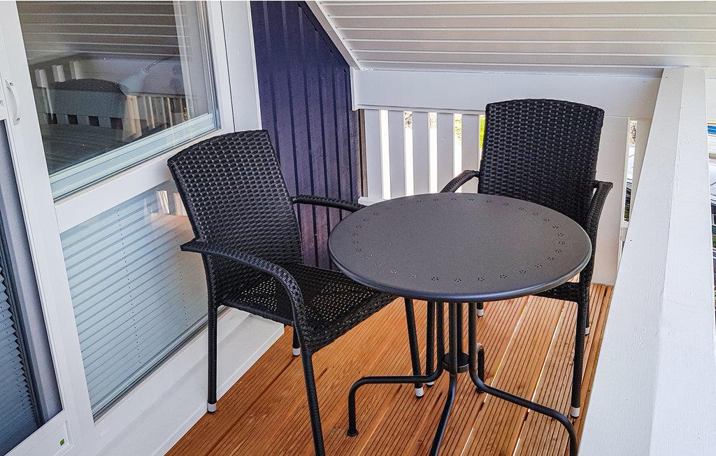 De møblerede soveværelser i høj kvalitet ligger på 1. sal. I kan nyde jeres morgenkaffe på balkonen.