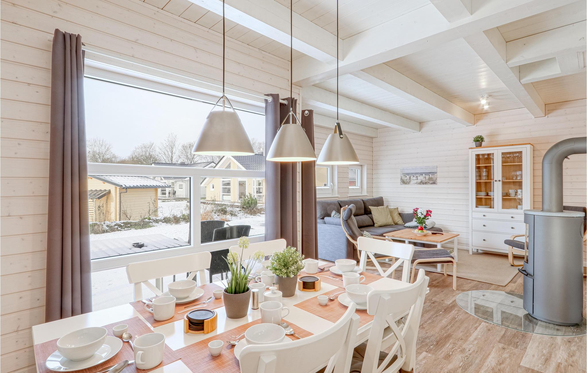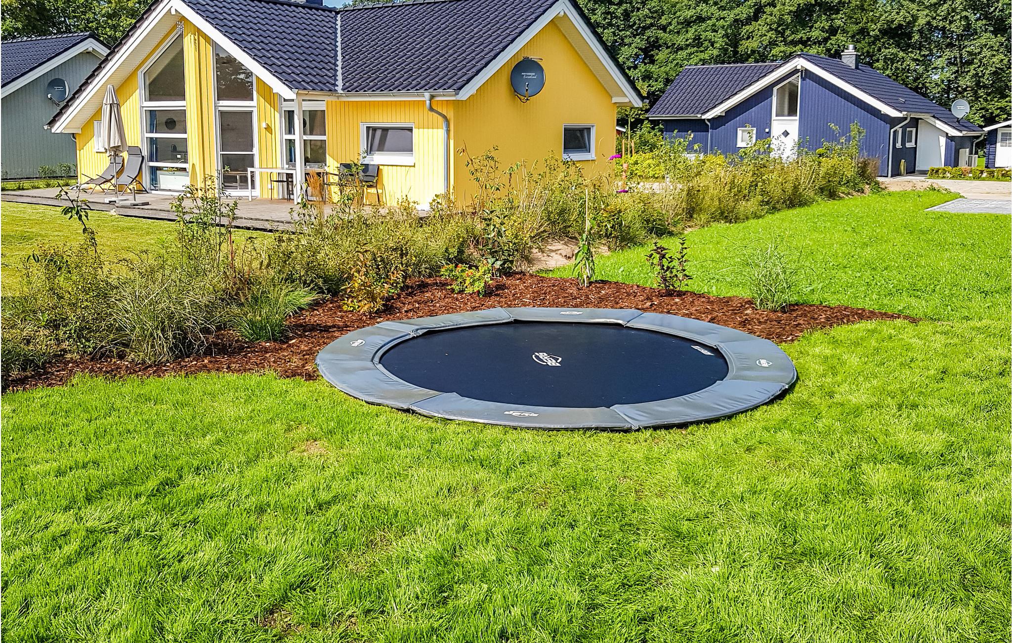 Dette rummelige træhus imponerer med sin flotte stil og tilbyder plads til 6 voksne plus 1 barn i 2 etager. Især jeres børn vil føle sig hjemme her; trampolin og sandkasse samt indendørsspil er tilgængelige for dem.