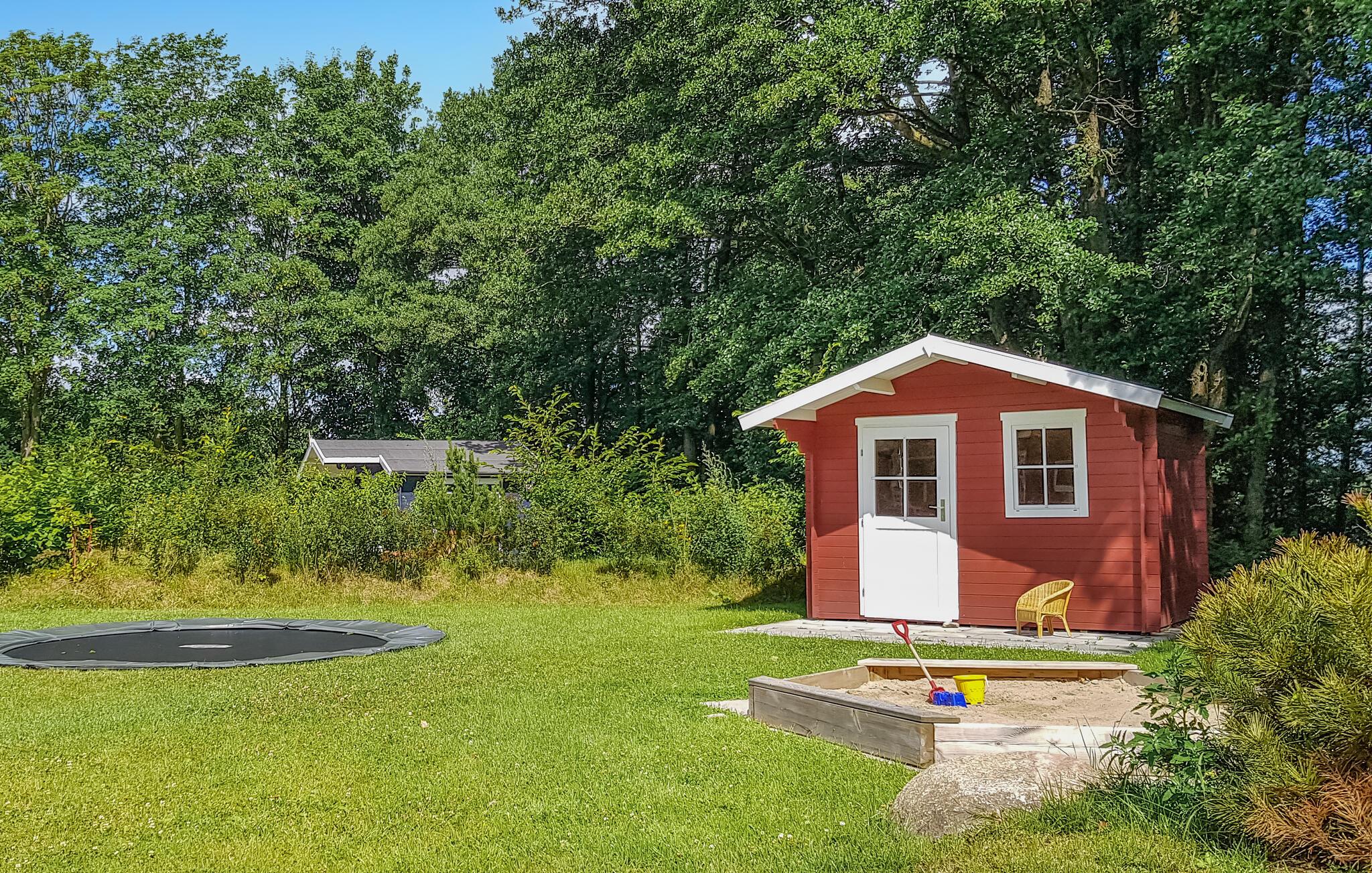 I sommermånederne lokker solens stråler dig ud på den rummelige terrasse, hvor du kan slappe af og spise morgenmad med hele familien. Ejendommen er stor og byder på plads nok til at spille badminton eller vikingeskak. Dine børn vil især føle sig hjemme her, da der er en trampolin i jorden, en sandkasse, en gynge og forskellige indendørs og udendørs spil.