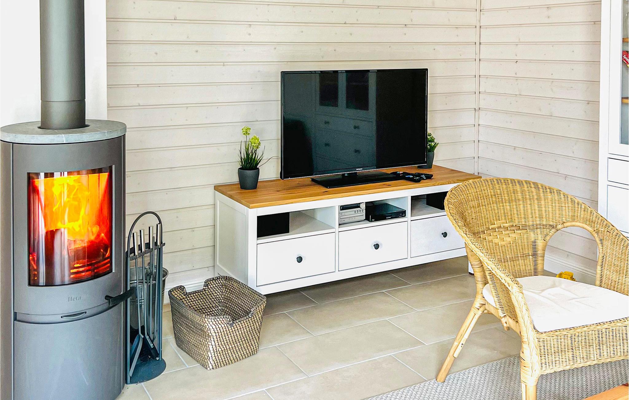 Det er dejligt at slappe af på terrassen, måske med morgenmad. På grunden er der desuden endnu en terrasse, som ligger i aftensolen, så her kan I sætte jer med grillretterne om sommeren. I den kølige årstid sørger sauna og brændeovnen i stuen for både varme og hygge.