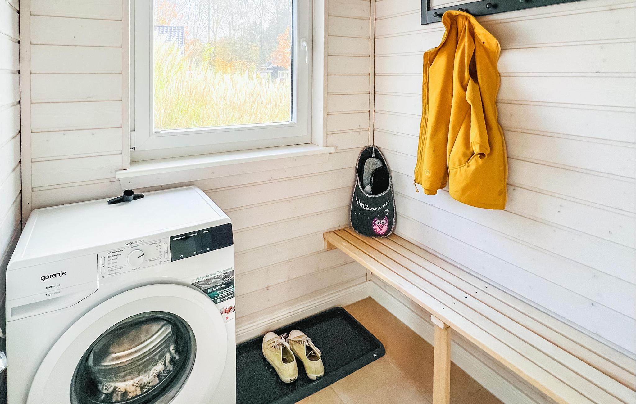Huset ligger i første række mod vandet og har direkte adgang til stranden. Det er dejligt rummeligt med god plads til en familie eller to vennepar. Her er loft til kip og store vinduer, hvilket giver en rummelig og lys atmosfære. Den maritime indretning i lyse farver bidrager også til den hyggelige stemning.