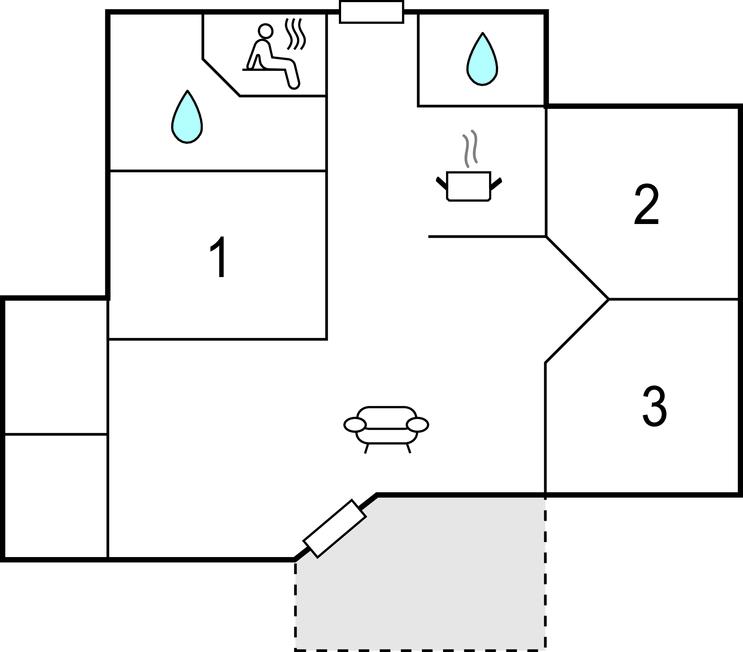 Der er dobbeltseng i et soveværelse, to enkeltsenge der kan skubbes sammen i det andet soveværelse, og i det tredje soveværelse er der to enkeltsenge.