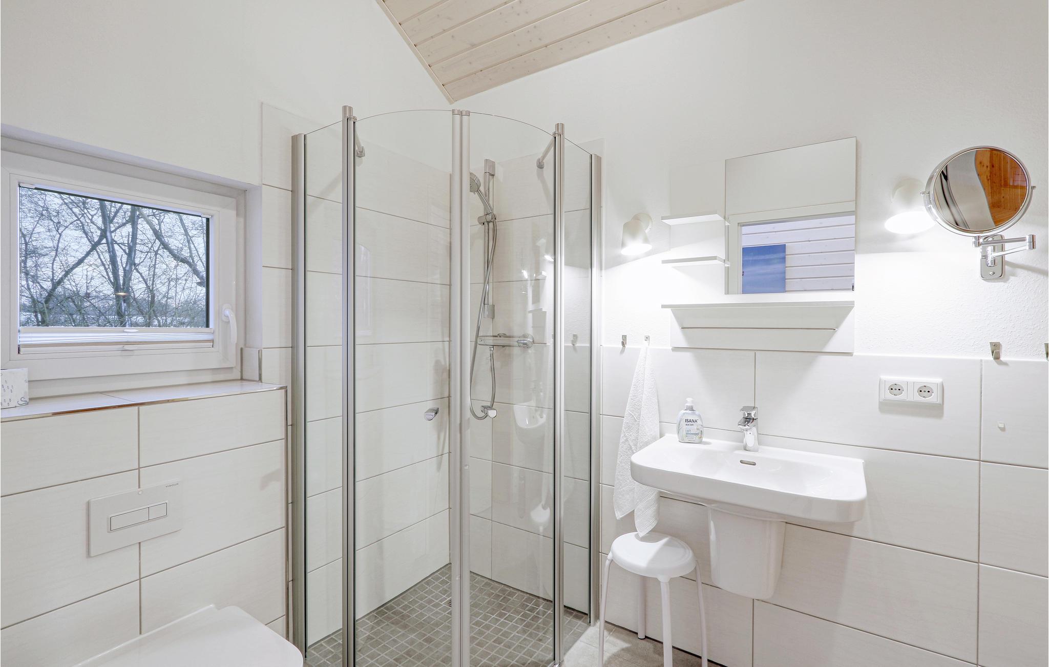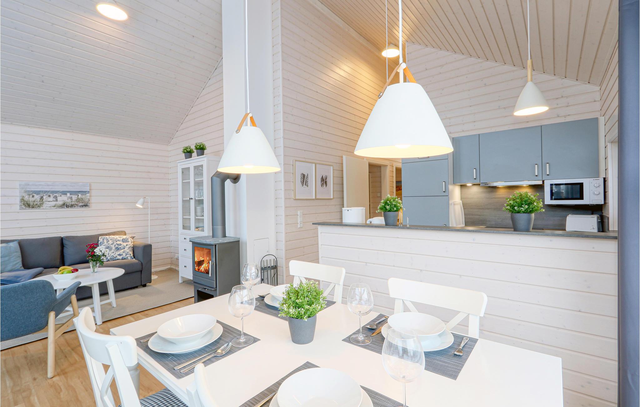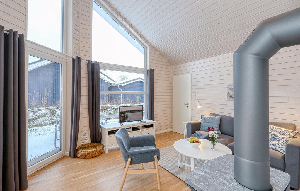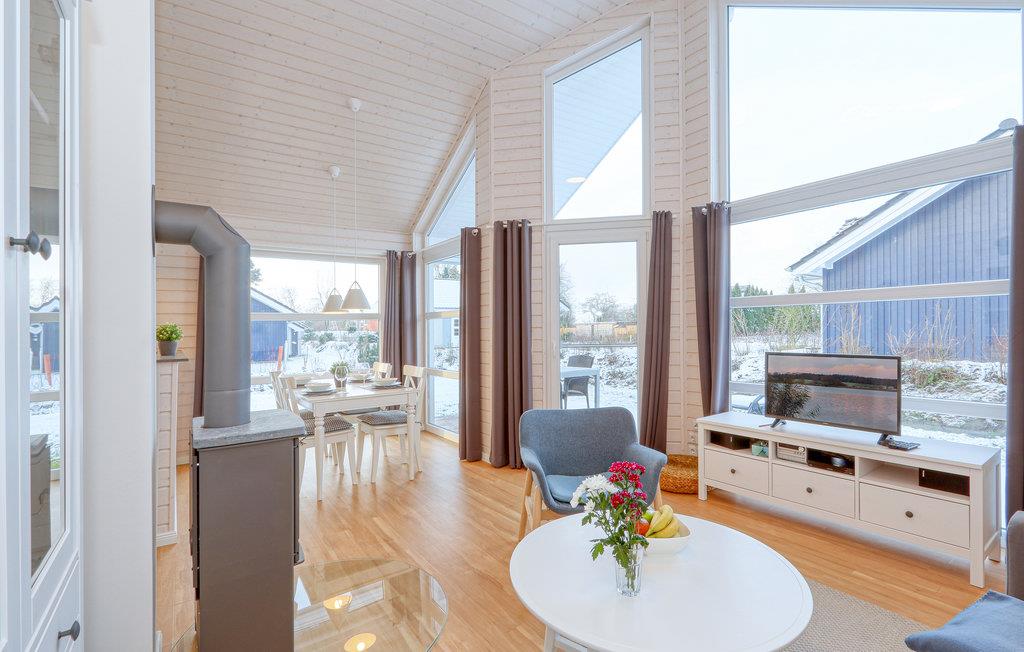 Det moderne træhus "Waldfrieden" imponerer med sin skandinaviske stil og har plads nok til fire voksne og to børn. På grund af det første høje åbne loft kan I nyde en behagelig rumfølelse og lyse rum. De maritime møbler i lyse toner øger komforten.