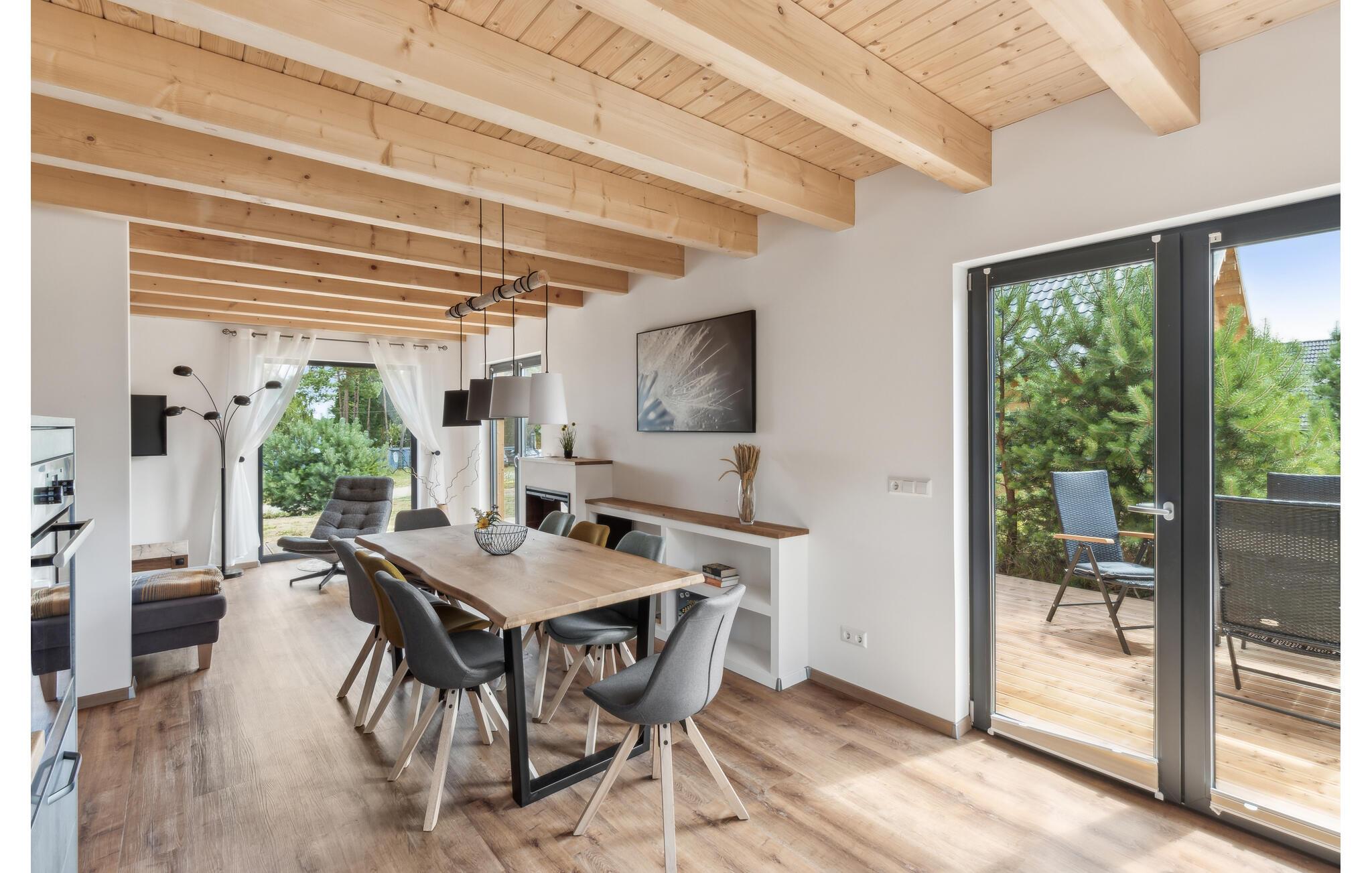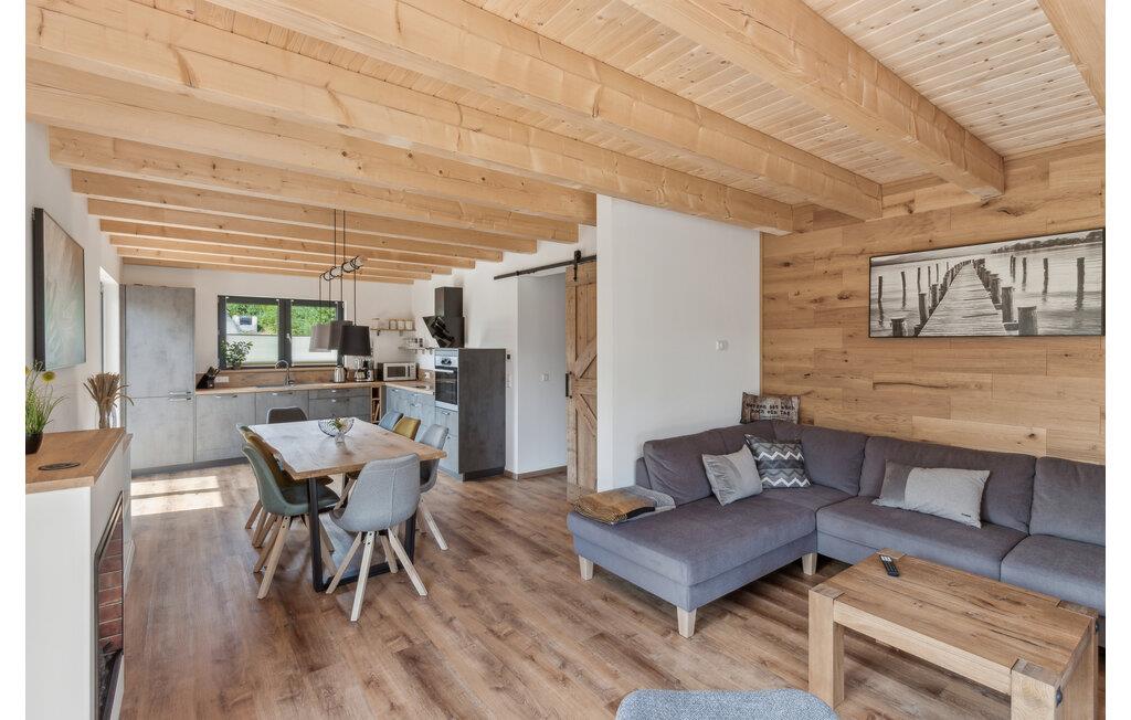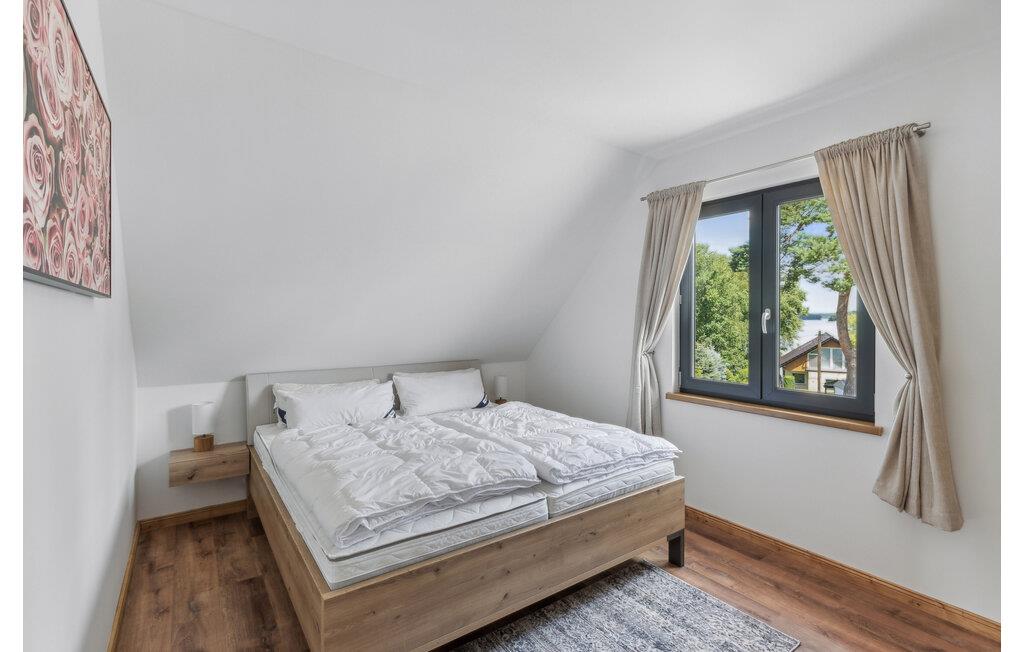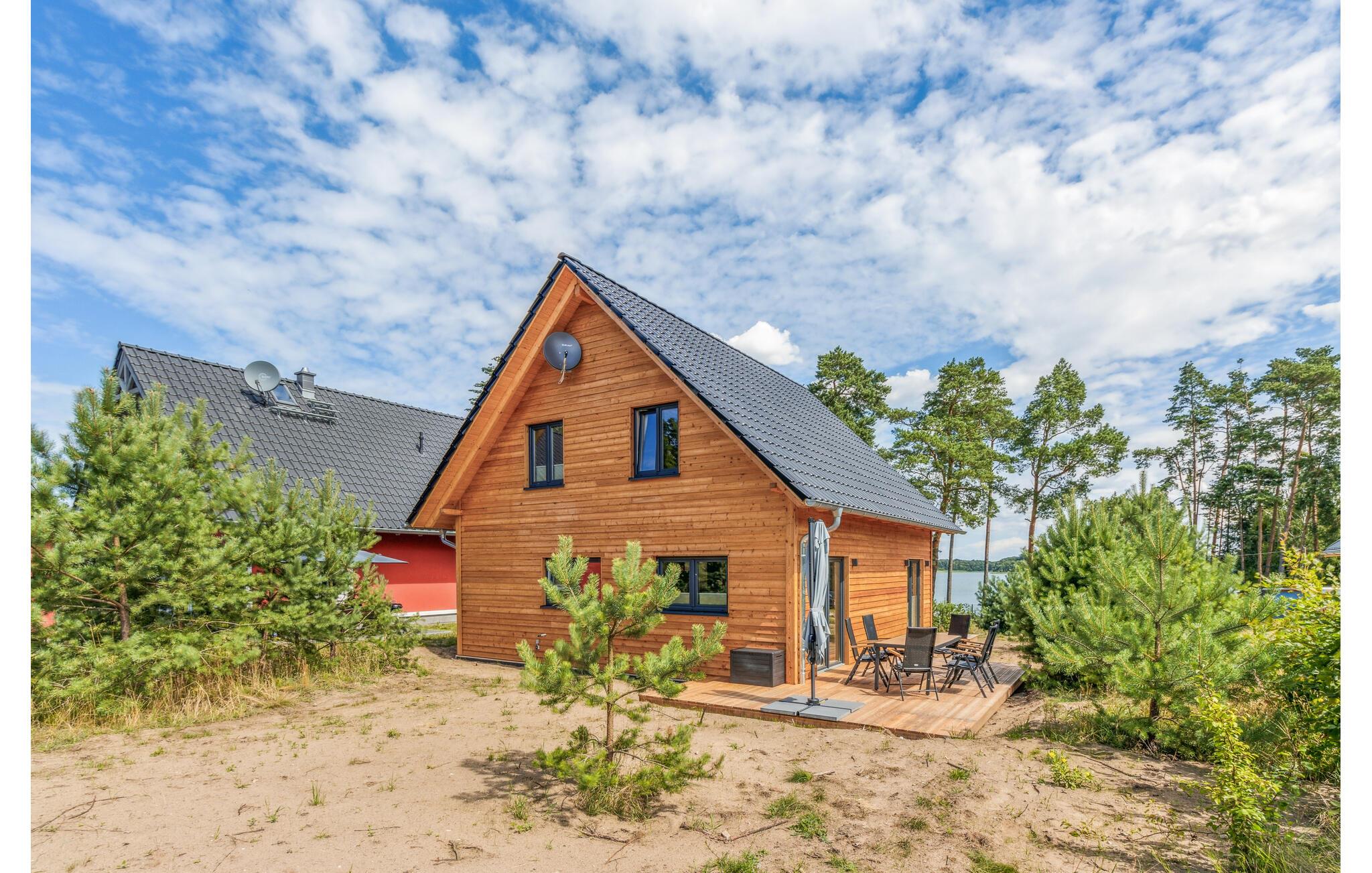 Hvis I er på udkig efter en komfortabel bolig til et ophold med den større familie, og vil I tilmed gerne bo midt i den smukke natur, er I kommet til det helt rette sted. Dette skønne toetagers hus ligger I hjertet af de smukke, skov- og sørige landskaber i området Mecklenburgische Seenplatte. Indvendigt emmer det af kvalitet over hele linjen med rustikke trælofter, velholdte trægulve og et moderne køkken, hvor I kan kræse om livretterne efter en skøn feriedag i naturen. Nyd måltiderne ved det flotte spisebord og ryk over i sofaen med snacks, en god film eller brætspil til langt ud på aftenen. I kan også forkæle kroppen med en aftentur i saunaen. På de lidt køligere dage eller om aftenen sørger den moderne infrarød-radiator for en effektiv og sund varme. Den elektriske pejs i stuen sørger også for en hyggelig stemning.