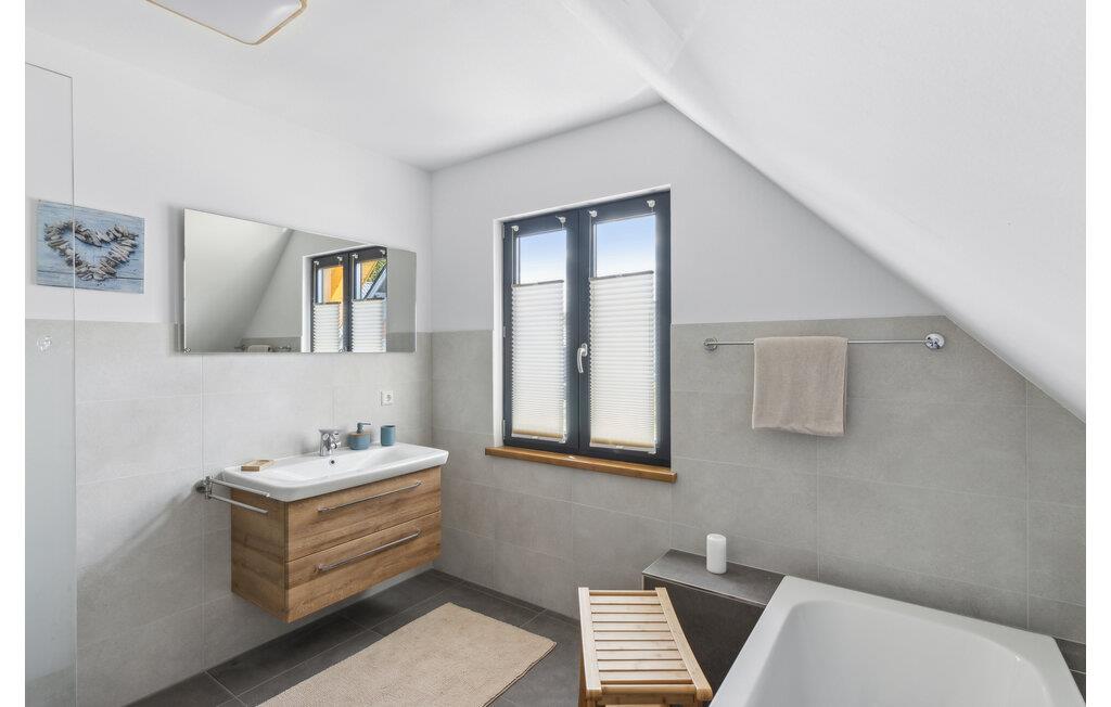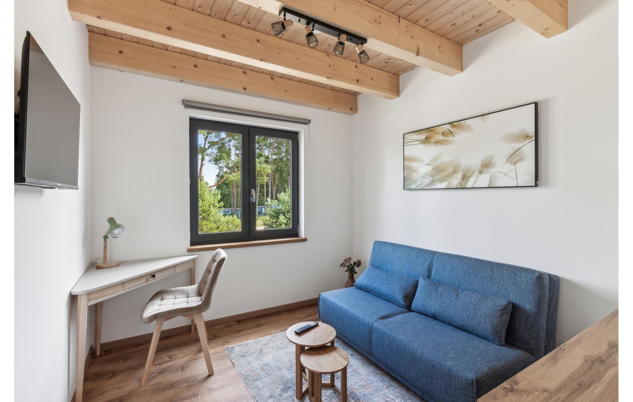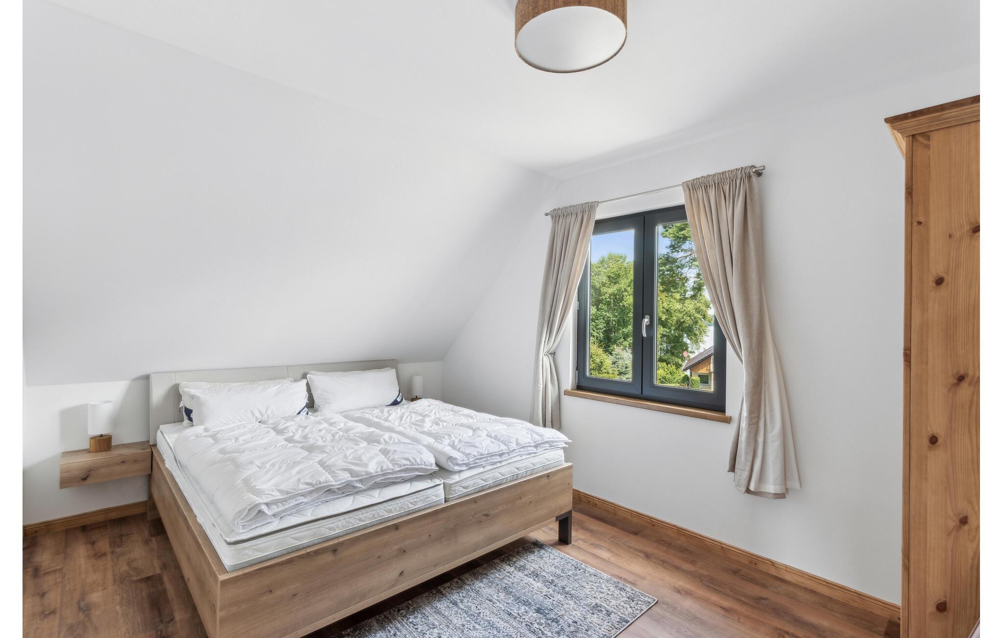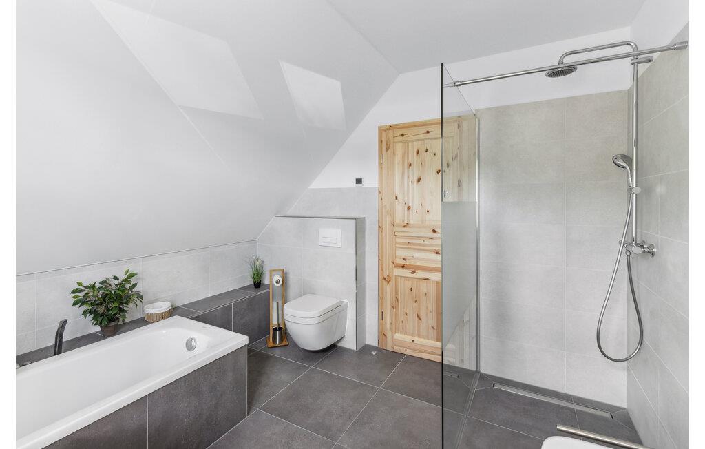 Hvis I er på udkig efter en komfortabel bolig til et ophold med den større familie, og vil I tilmed gerne bo midt i den smukke natur, er I kommet til det helt rette sted. Dette skønne toetagers hus ligger I hjertet af de smukke, skov- og sørige landskaber i området Mecklenburgische Seenplatte. Indvendigt emmer det af kvalitet over hele linjen med rustikke trælofter, velholdte trægulve og et moderne køkken, hvor I kan kræse om livretterne efter en skøn feriedag i naturen. Nyd måltiderne ved det flotte spisebord og ryk over i sofaen med snacks, en god film eller brætspil til langt ud på aftenen. I kan også forkæle kroppen med en aftentur i saunaen. På de lidt køligere dage eller om aftenen sørger den moderne infrarød-radiator for en effektiv og sund varme. Den elektriske pejs i stuen sørger også for en hyggelig stemning.