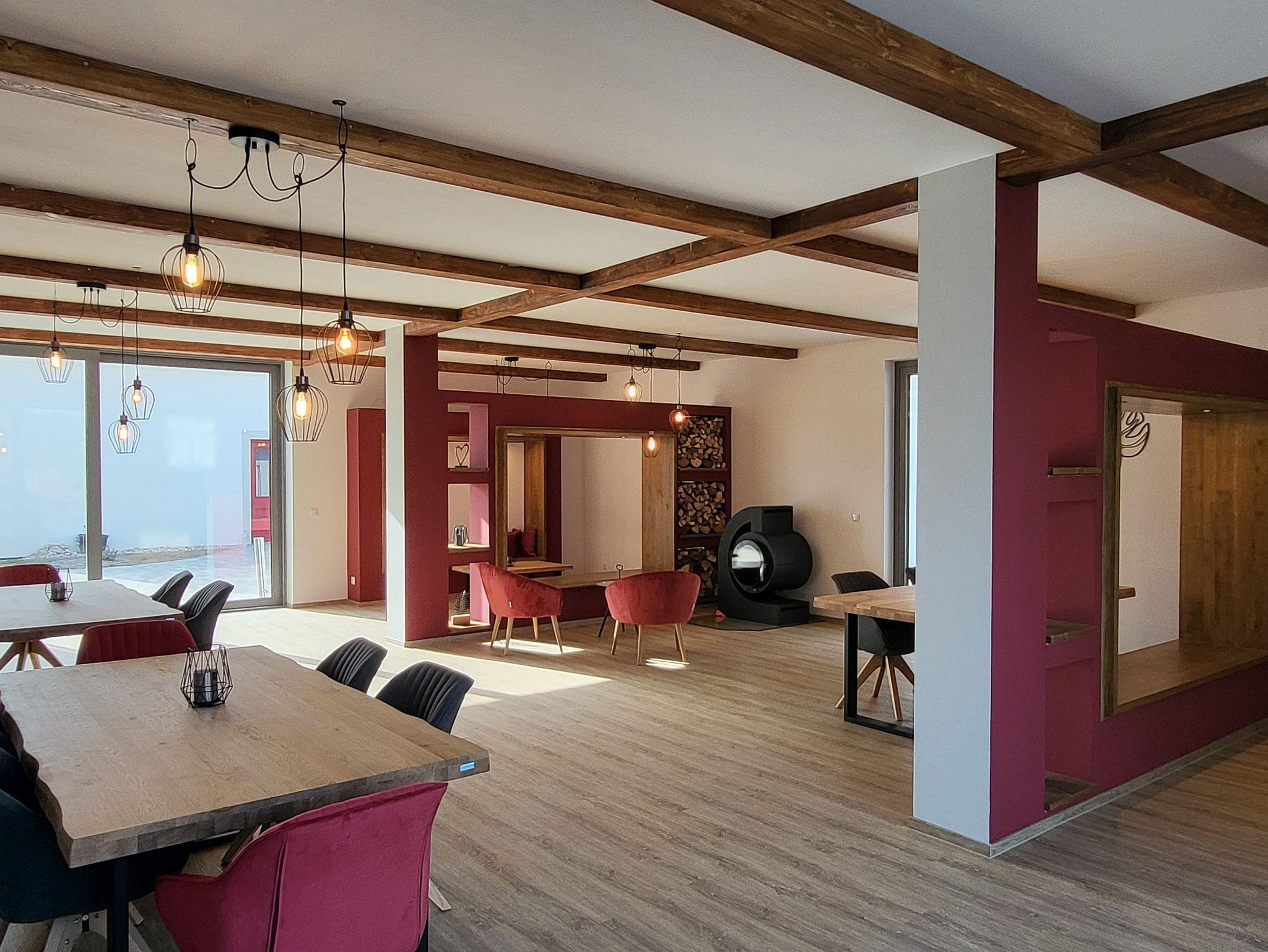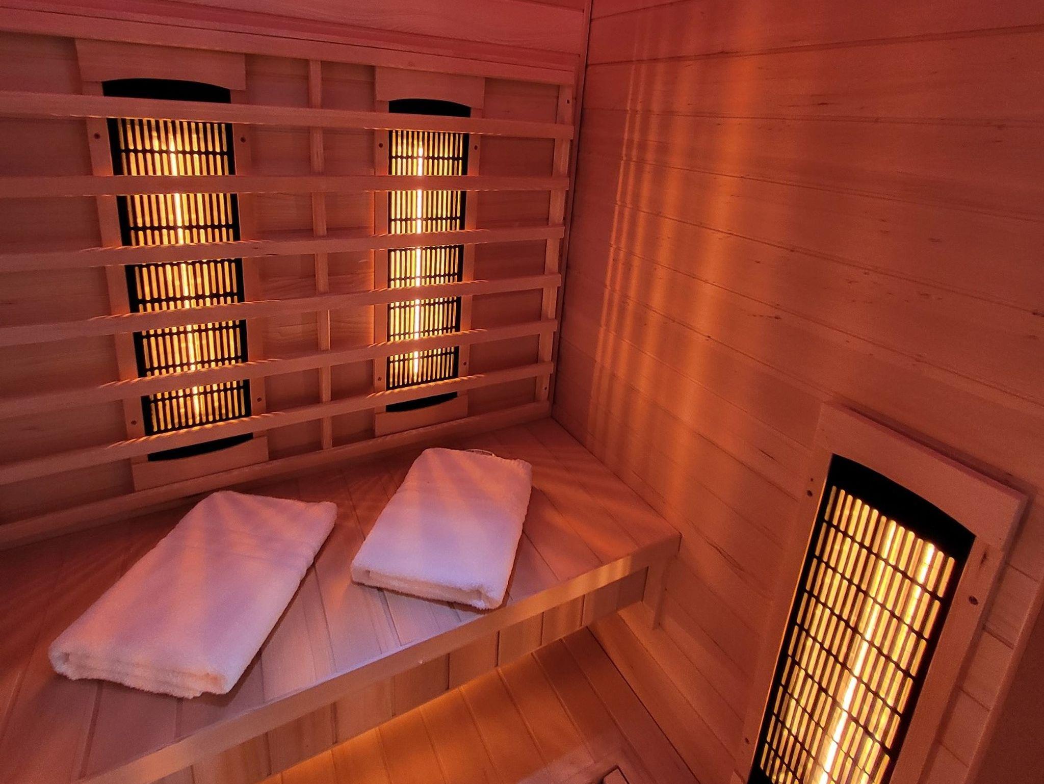 Für das besondere Wohlfühlerlebnis befindet sich im Scheunengebäude ein kleiner Wellnessbereich mit Sauna, Infrarotkabine, Relaxliegen und großer Whirlwanne für 2 Personen. Vom Ruhebereich aus haben Sie Zugang zu einer kleinen Privatterrasse mit Sonnenliegen auf der Sie entspannen können.
