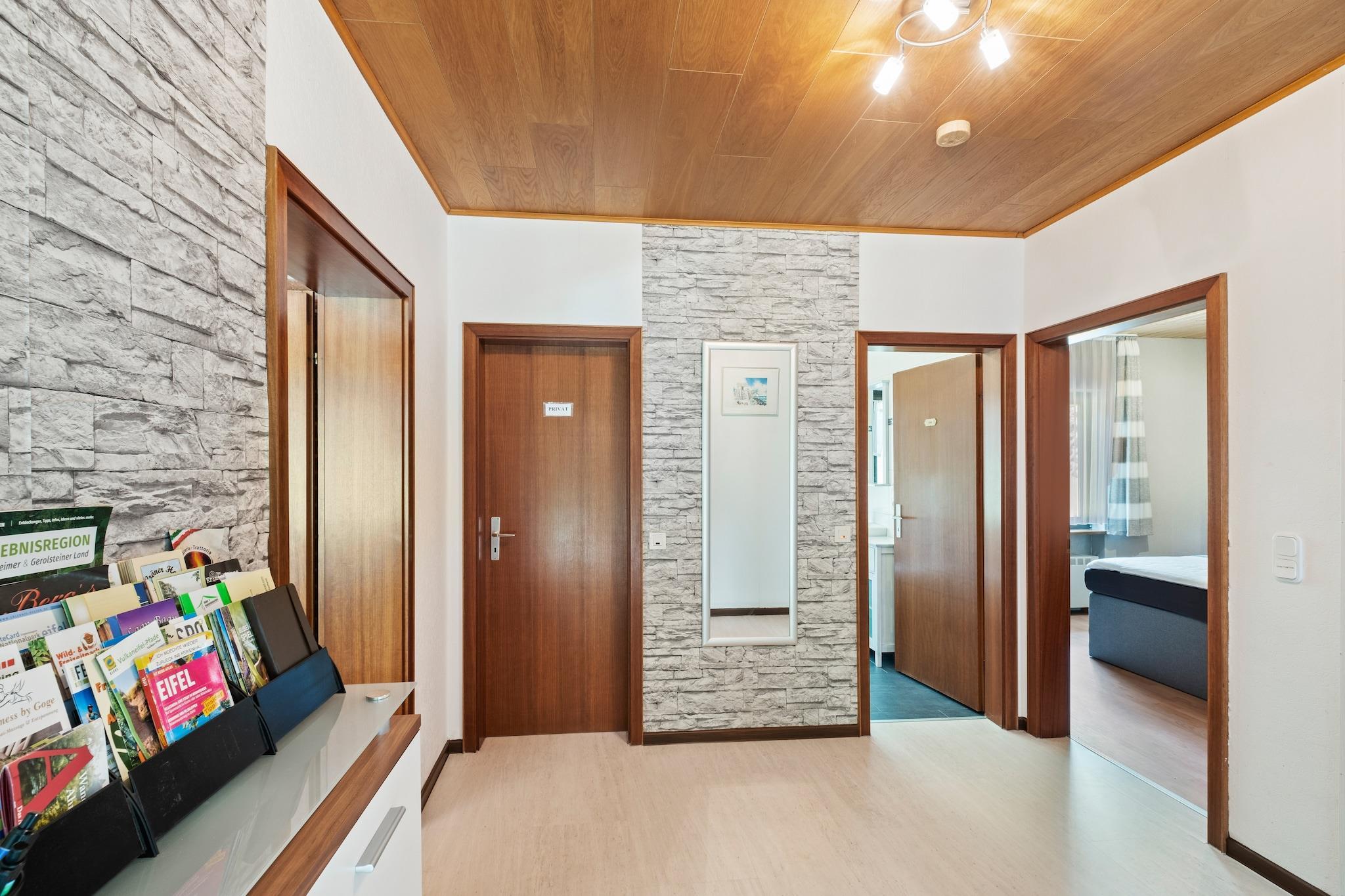 Denne rolige bungalow i skovbrynet i Feusdorf er ideel for familier og venner, der søger natur og afslapning i den vulkanske Eifel-region. Bungalowen, der blev bygget i 1974, byder på karakter og komfort med en hyggelig opholds-/spisestue med brændeovn, tre soveværelser og et badeværelse. En rummelig have og en overdækket terrasse inviterer dig til at nyde grillfester eller afslappende eftermiddage udendørs. Huset ligger i den øvre Kyll-dal og er et ideelt udgangspunkt for vandreture, mountainbiking og vintersport. Maleriske vulkanske søer, slotte som Kasselburg og nærliggende byer som Trier og Köln tilbyder kultur og eventyr. Ejeren dækker også den lokale turistskat, så gæster med Gero Card får rabatter. Uanset om du udforsker Eifel-landskabet eller nyder rolige øjeblikke ved pejsen, kombinerer dette skovparadis tradition, komfort og muligheder for opdagelse for et uforglemmeligt ophold.