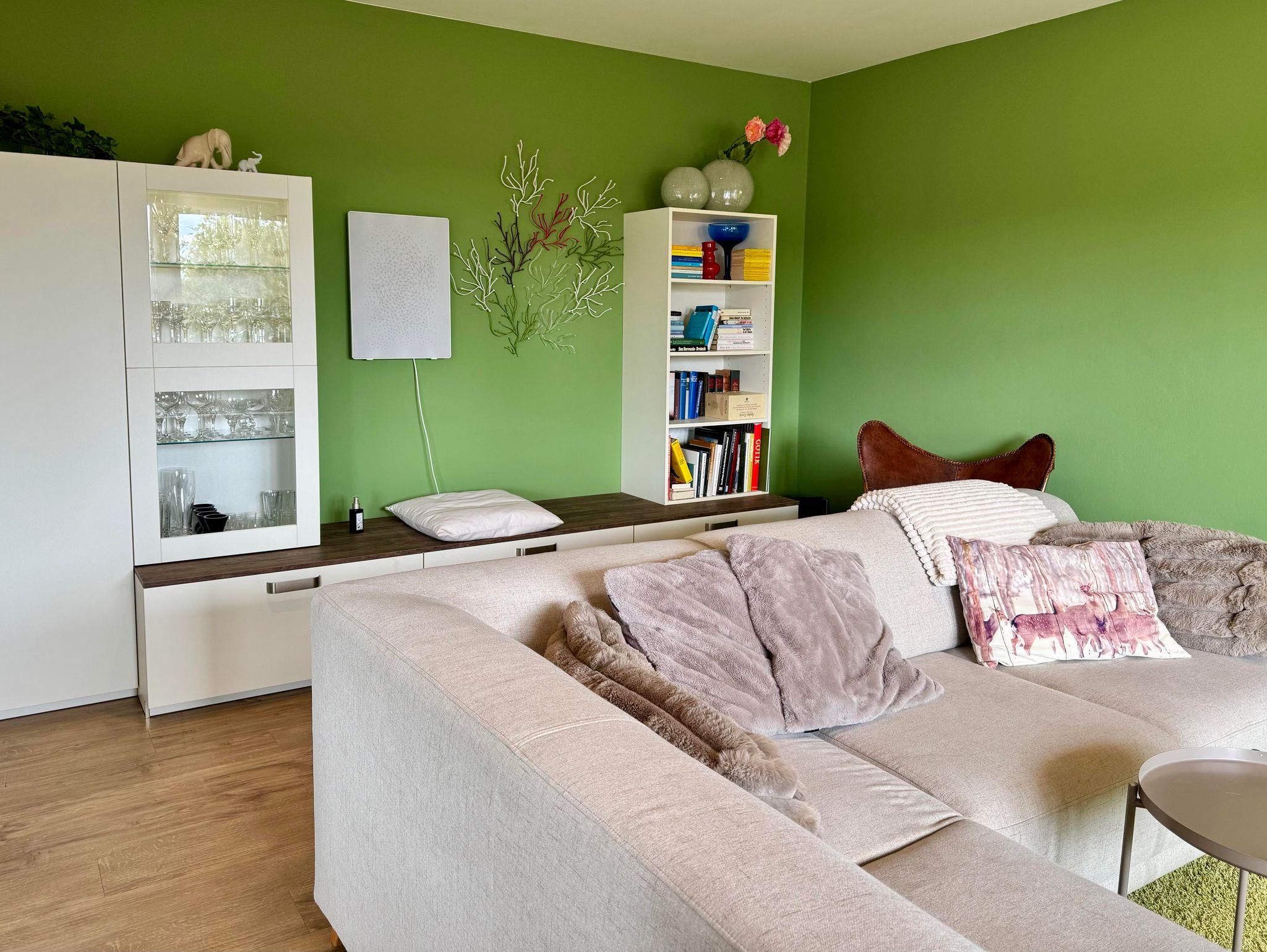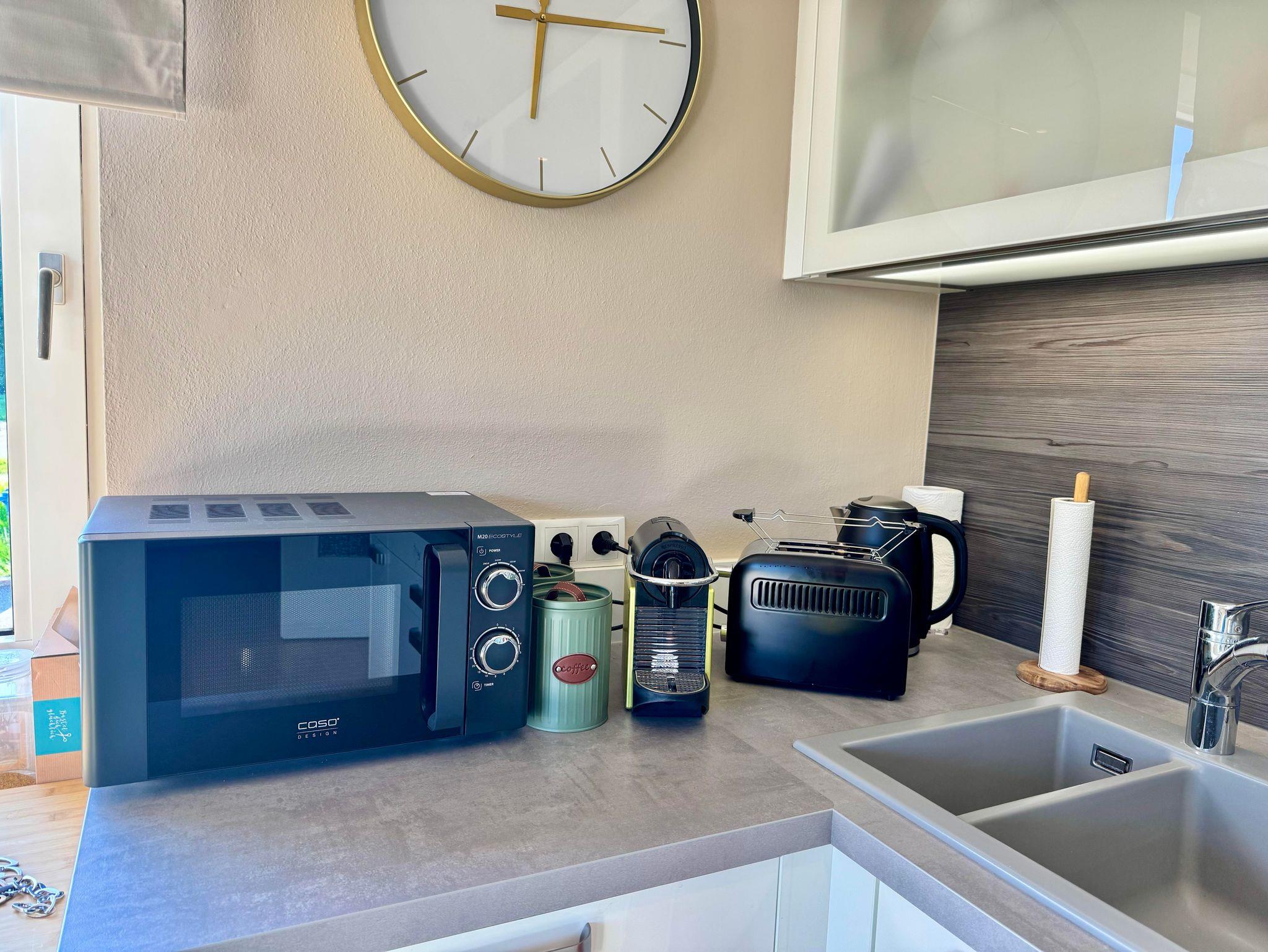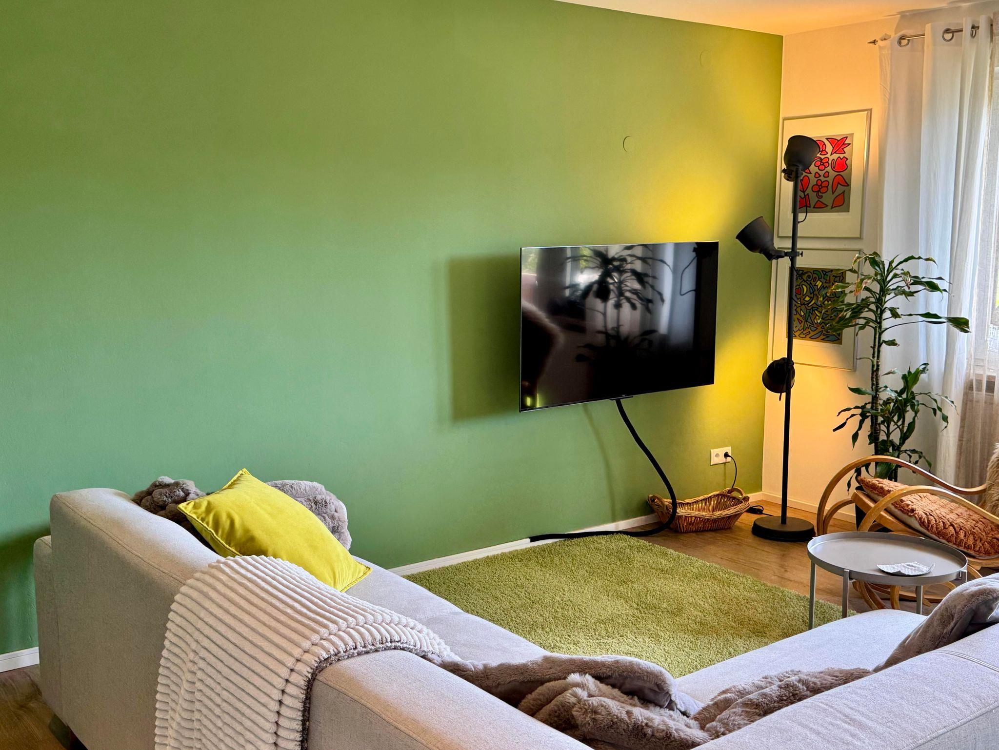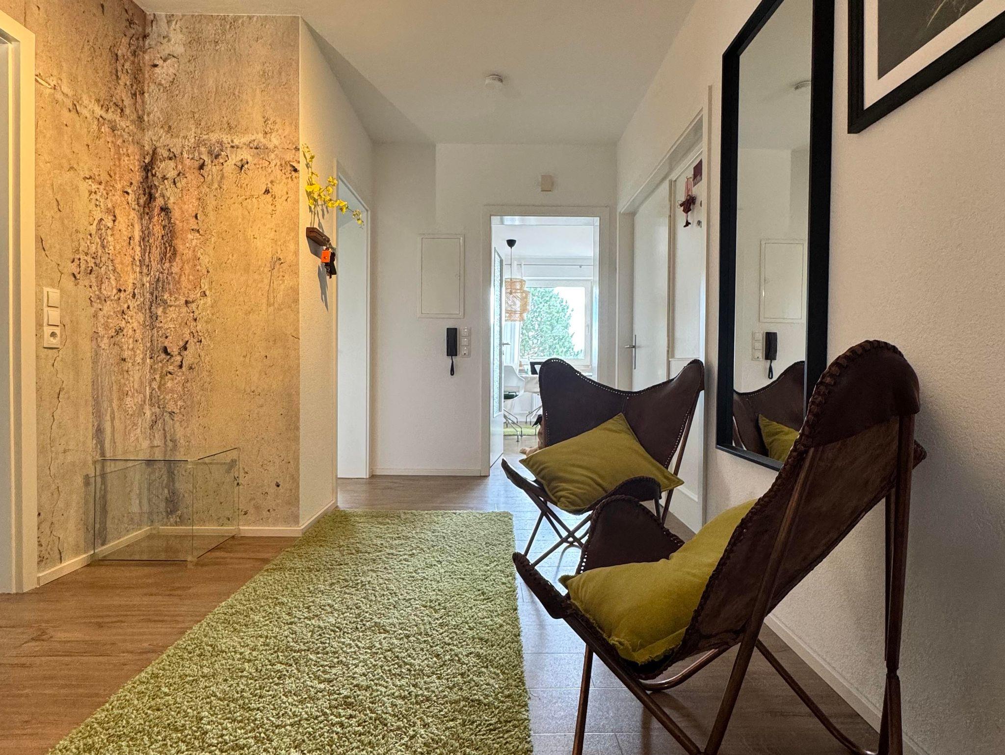 Unsere Wohnung ist komplett neu renoviert; eingerichtet mit einer modernen und großzügigen Küche mit allen notwendigen Küchengeräten, einem großen Lebens-Raum (Wohnen, Essen, Kochen), einem neuen, hellen und sehr großzügigem Bad mit Badewanne, extra Dusche, WC und Fussbodenheizung, Gäste-WC ebenfalls mit Fussbodenheizung, 2 Schlafzimmer mit je 1x King-Size-Bett (180x200 cm) sowie 1 ausziehbares Sofa im Wohnzimmer.