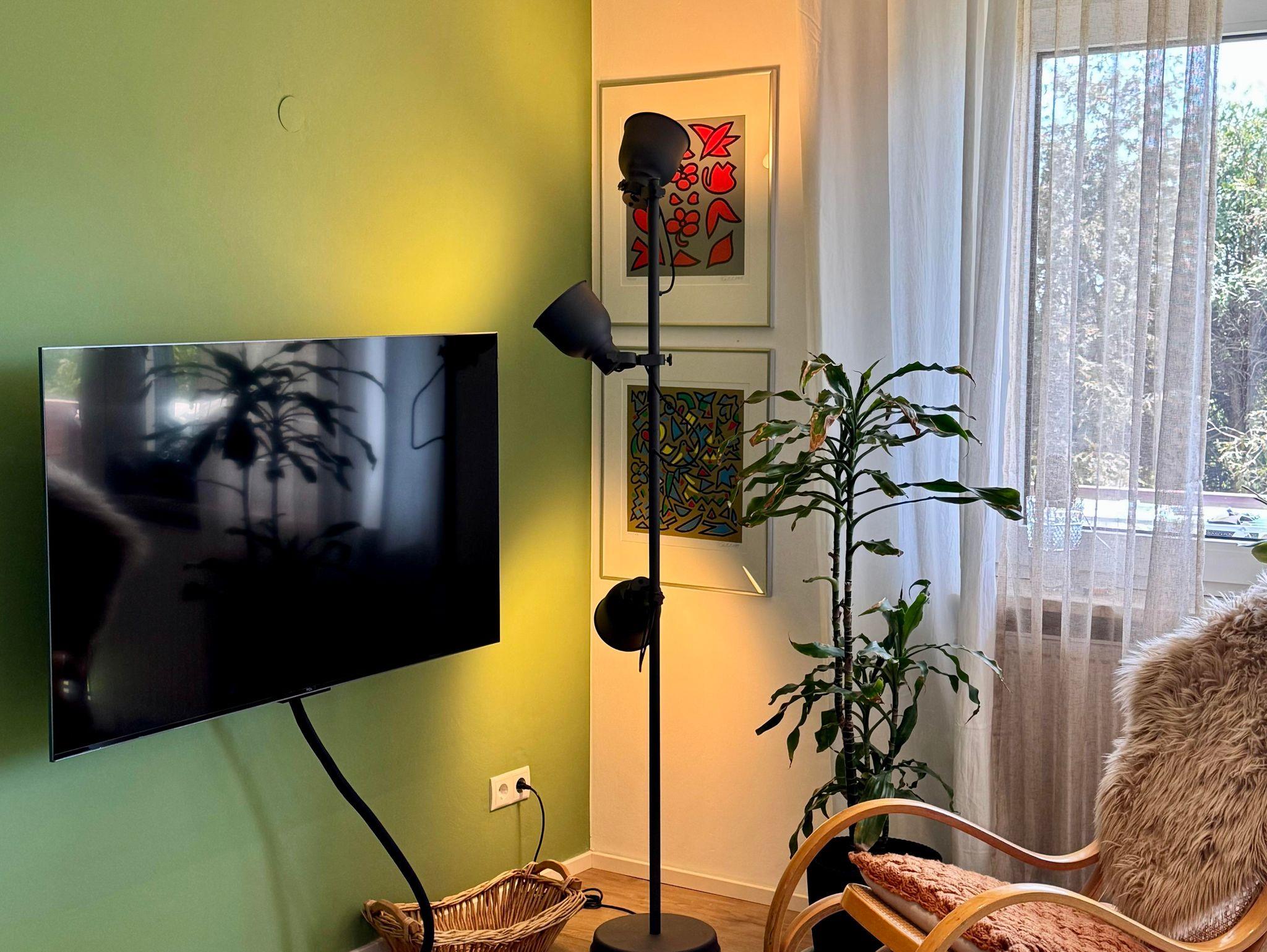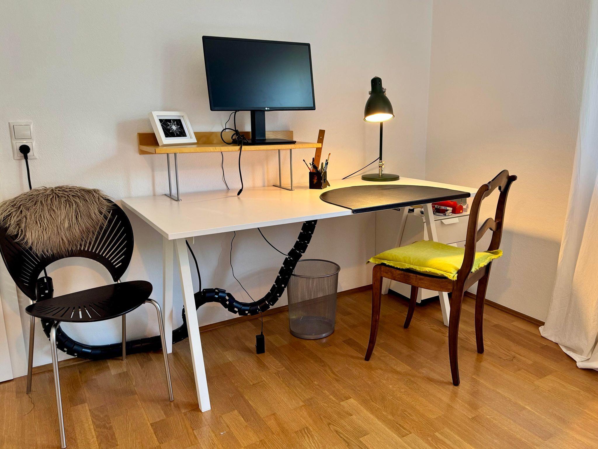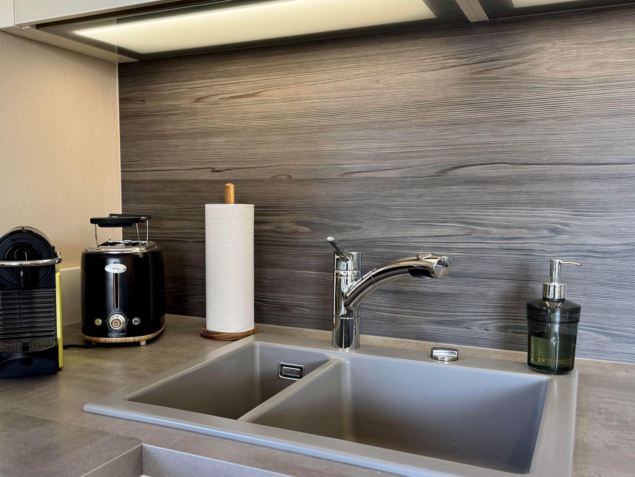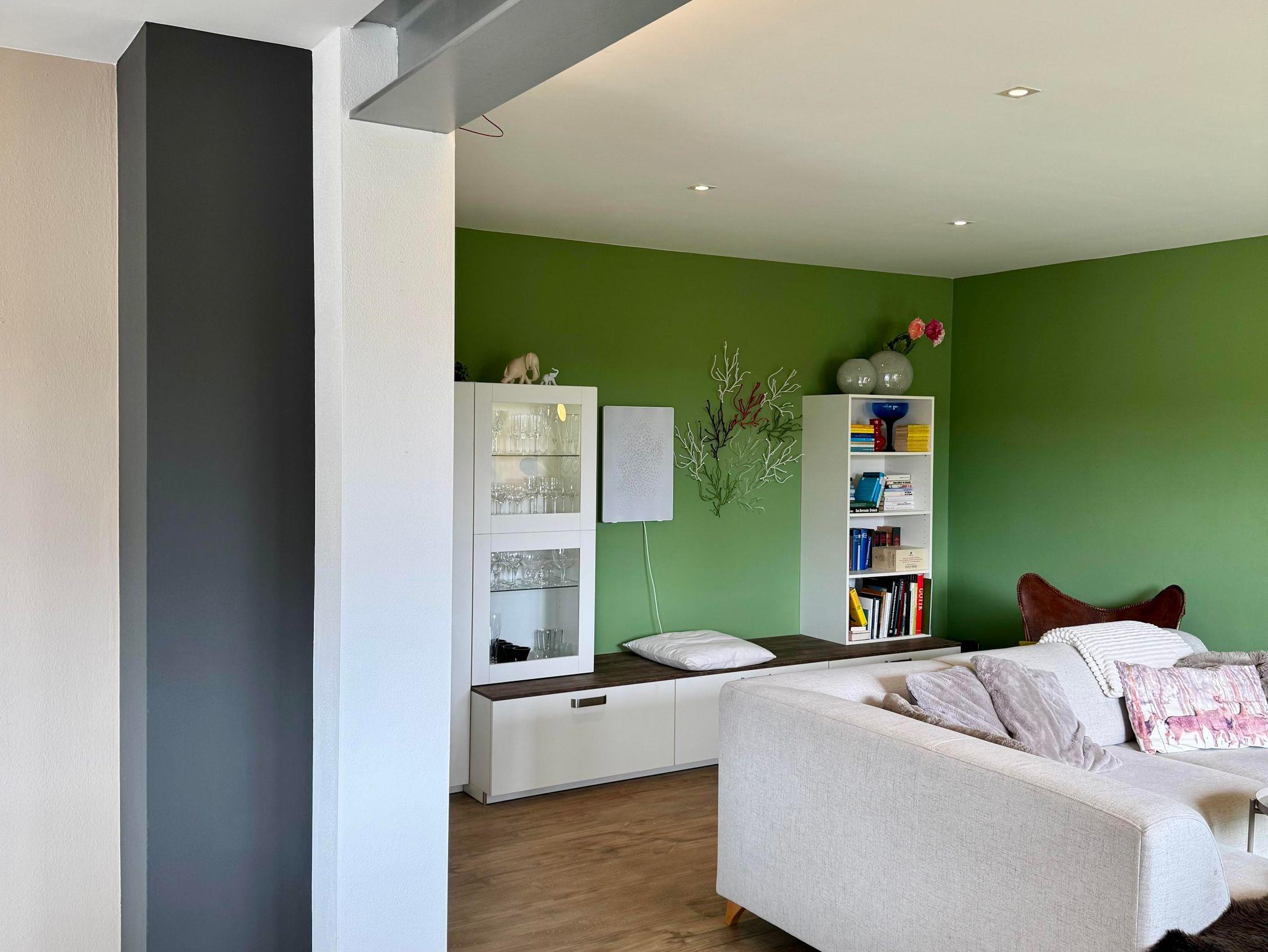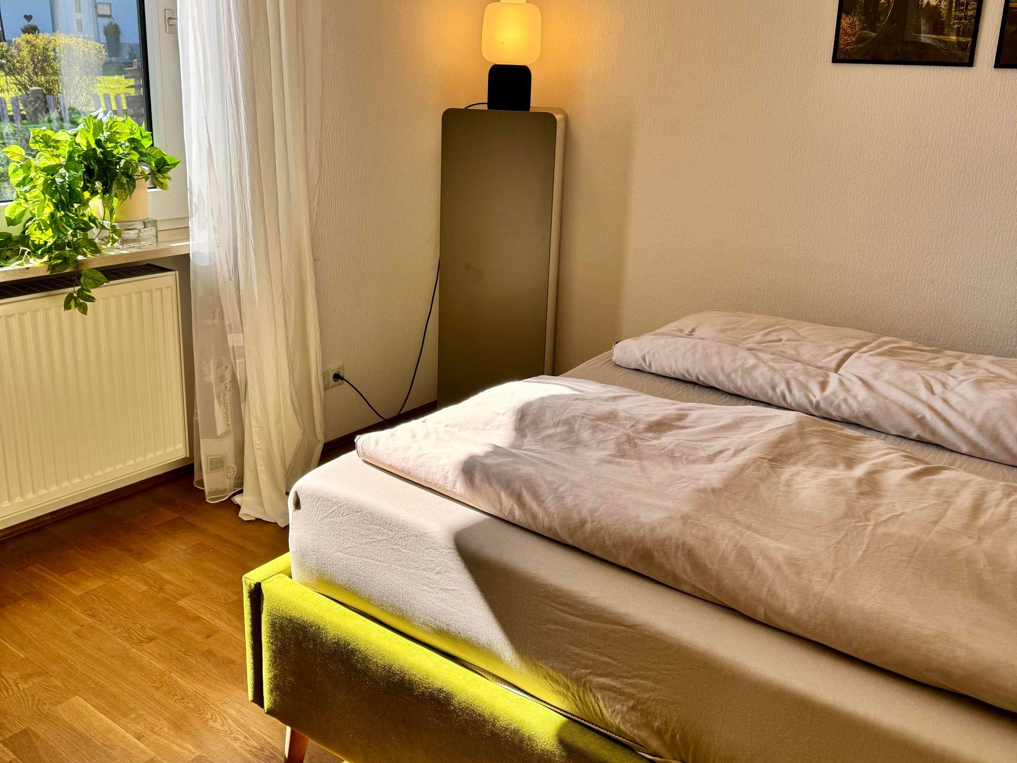 Unsere Wohnung ist komplett neu renoviert; eingerichtet mit einer modernen und großzügigen Küche mit allen notwendigen Küchengeräten, einem großen Lebens-Raum (Wohnen, Essen, Kochen), einem neuen, hellen und sehr großzügigem Bad mit Badewanne, extra Dusche, WC und Fussbodenheizung, Gäste-WC ebenfalls mit Fussbodenheizung, 2 Schlafzimmer mit je 1x King-Size-Bett (180x200 cm) sowie 1 ausziehbares Sofa im Wohnzimmer.