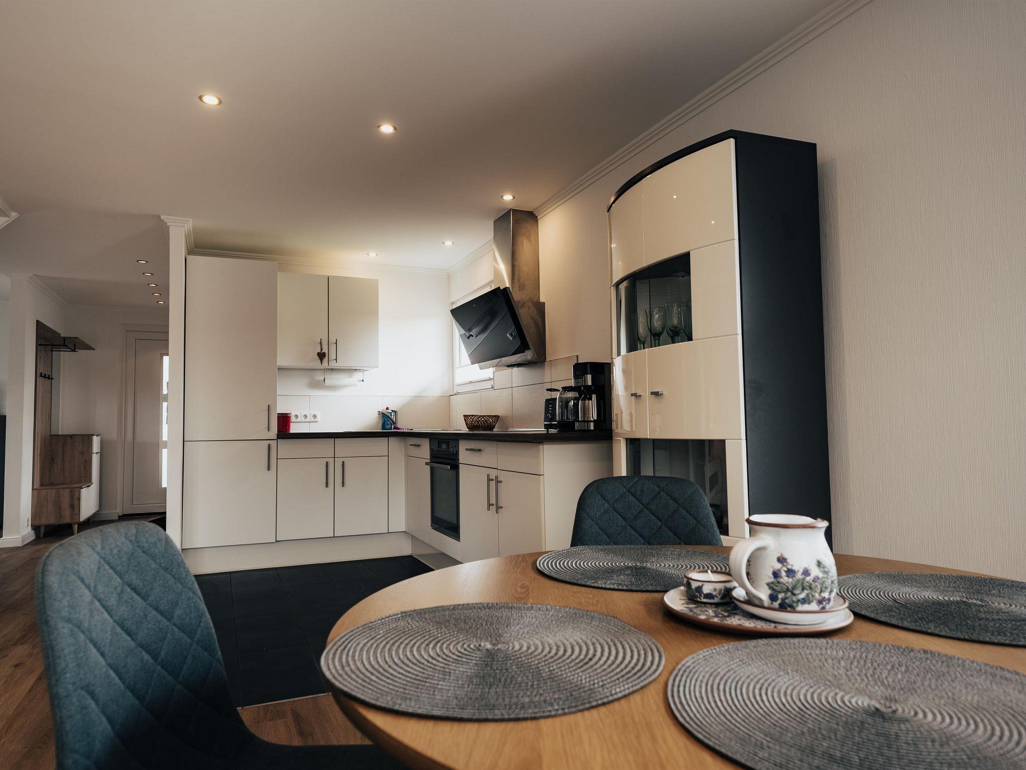 Das hell und modern eingerichtete Ferienhaus bietet ausreichend Platz für 4 Personen. Es verfügt im Erdgeschoss über eine komplett ausgestattete Wohnküche mit Essgelegenheit und ein Bad mit Dusche und WC. Im ersten Stock befinden sich ein Schlafzimmer mit Doppelbett und zusätzlichem Balkon, ein Schlafzimmer mit zwei Einzelbetten sowie ein separates WC.