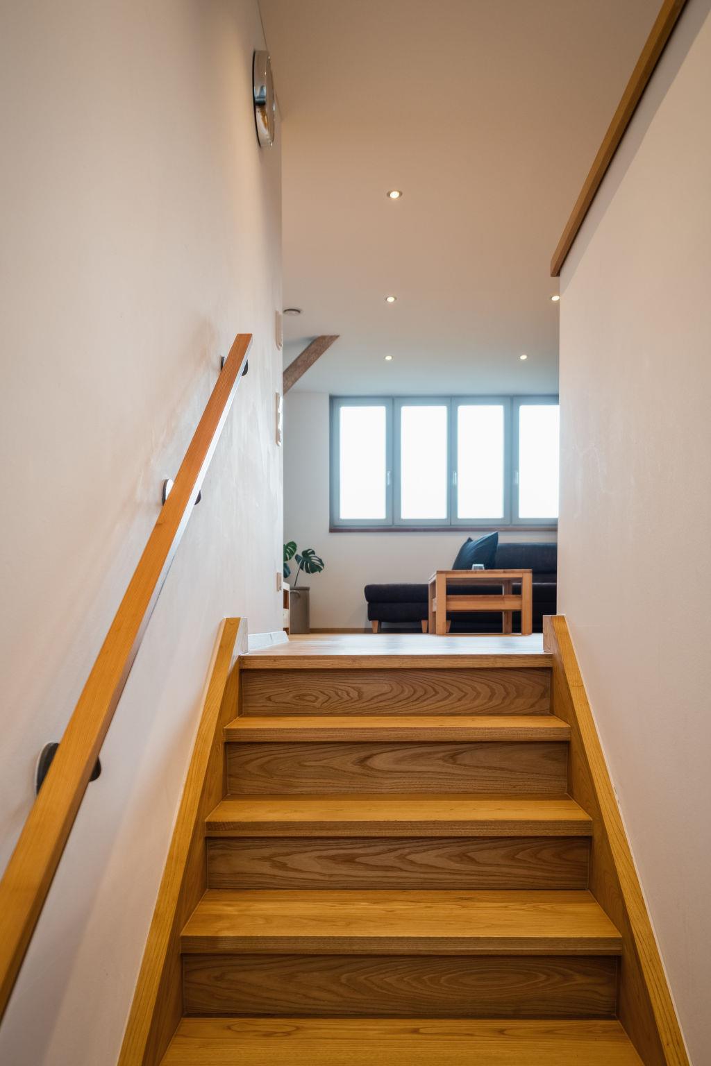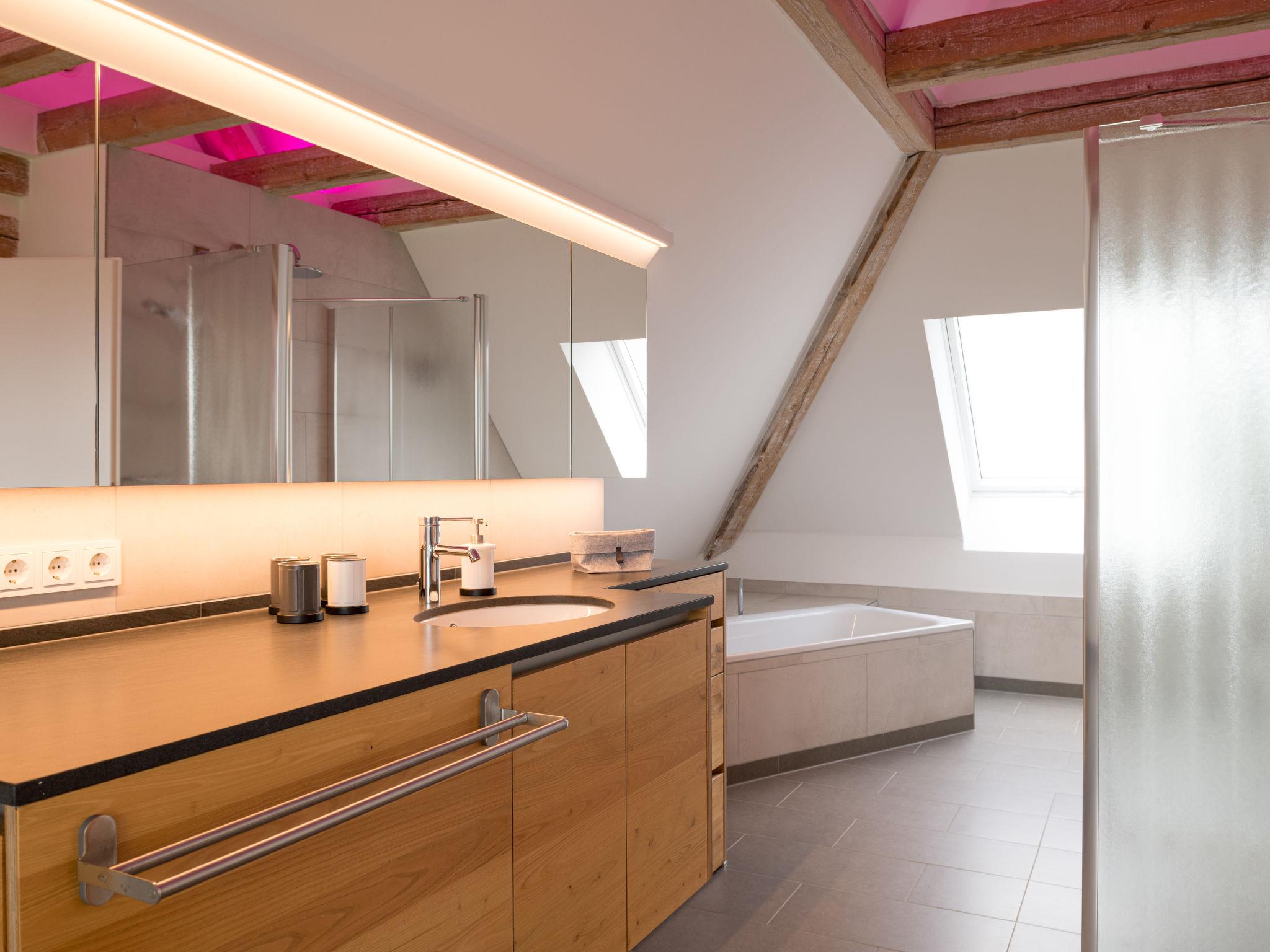 3-room Loft 130 m2 on 2nd floor. Bright, partly with sloping ceilings, fully renovated in 2018, comfortable and beautiful furnishings: open large living/dining room with dining table and cable TV (flat screen). Exit to the balcony. 1 room with 1 double bed (180 cm, length 220 cm). 1 room with 1 french bed (160 cm, length 200 cm). Open kitchen (oven, dishwasher, 4 induction hot plates, toaster, kettle, electric coffee machine). Sep. WC, bath/shower/WC. Underfloor heating. Solar power. Balcony. Balcony furniture. Facilities: Internet (WiFi, free). Parking (roofed, 1 car). Please note: non-smokers only. Smoke alarm. Bookings accepted for holiday purposes only. DE6696.100.3