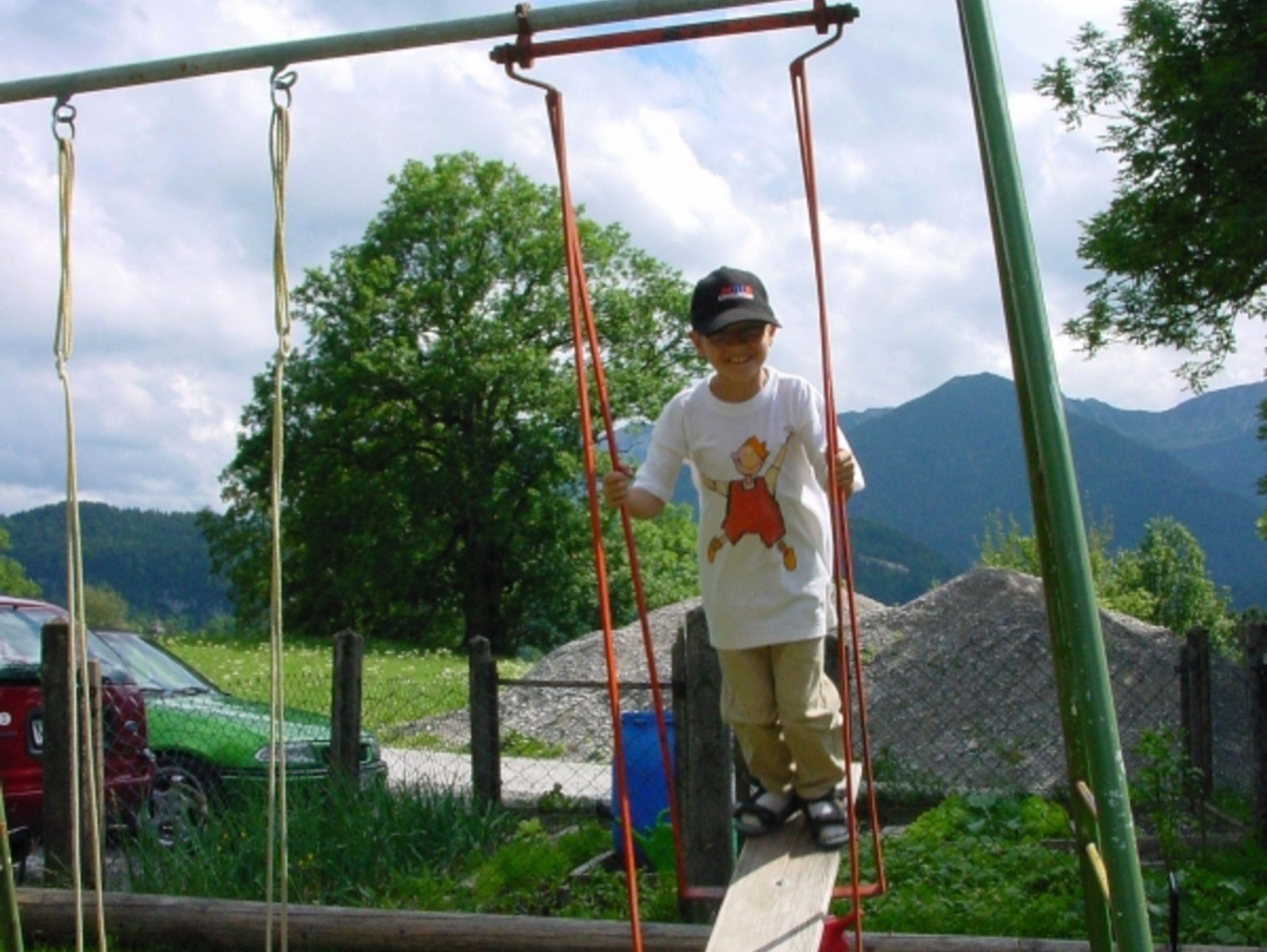 Unser Haus ist alpenländisch mit Holz eingerichtet. Eine große Terrasse sowie Wiesen sind zum Sonnetanken und Spielen da. Für schlechtes Wetter haben wir ein gemütliches Almstüberl.