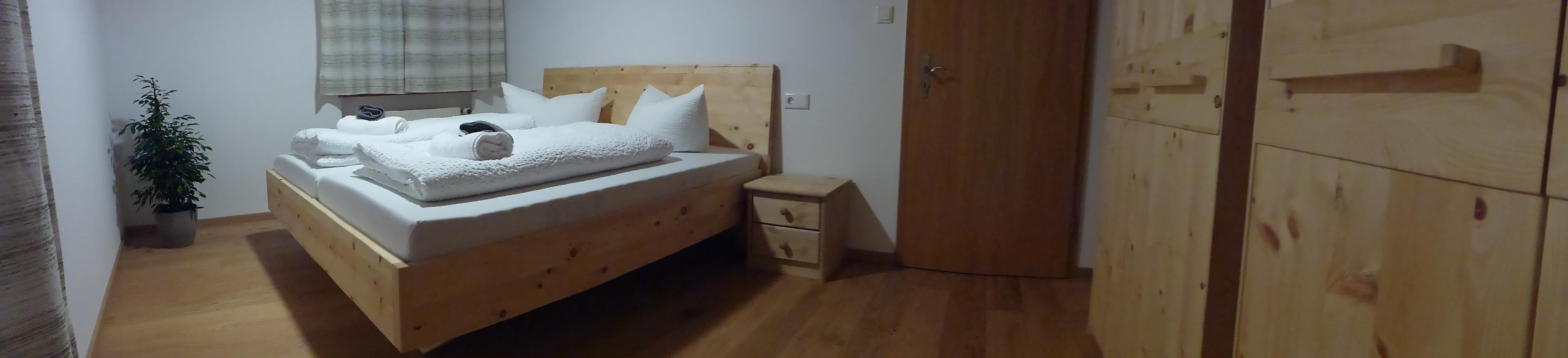 Gesundes und nachhaltiges Wohnen, hochwertige Ferienwohnung im Holzhaus, Fertigstellung Dezember 2019, Schlafzimmermöbel in Zirbenkiefer, voll ausgestattete Küche, eigener Garten
