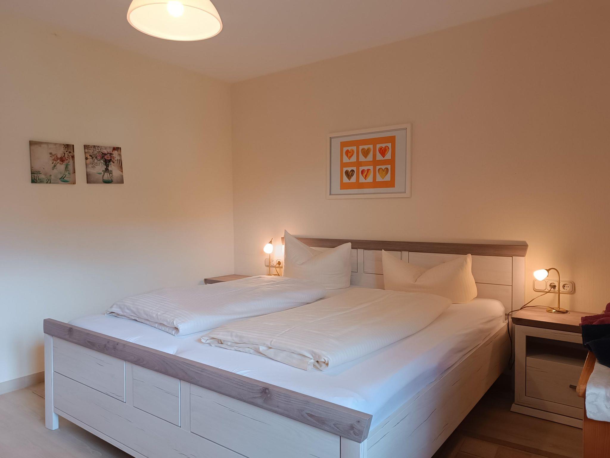 Gepflegte 2-Raum-Ferienwohnung im Erdgeschoss, 65 qm für 2-4 Personen, voll ausgestattete Küche, Bad mit Duschbadewanne, Süd-Terrasse/Garten, kostenloser PKW-Stellplatz am Haus, Waschmaschine im Keller, WLAN