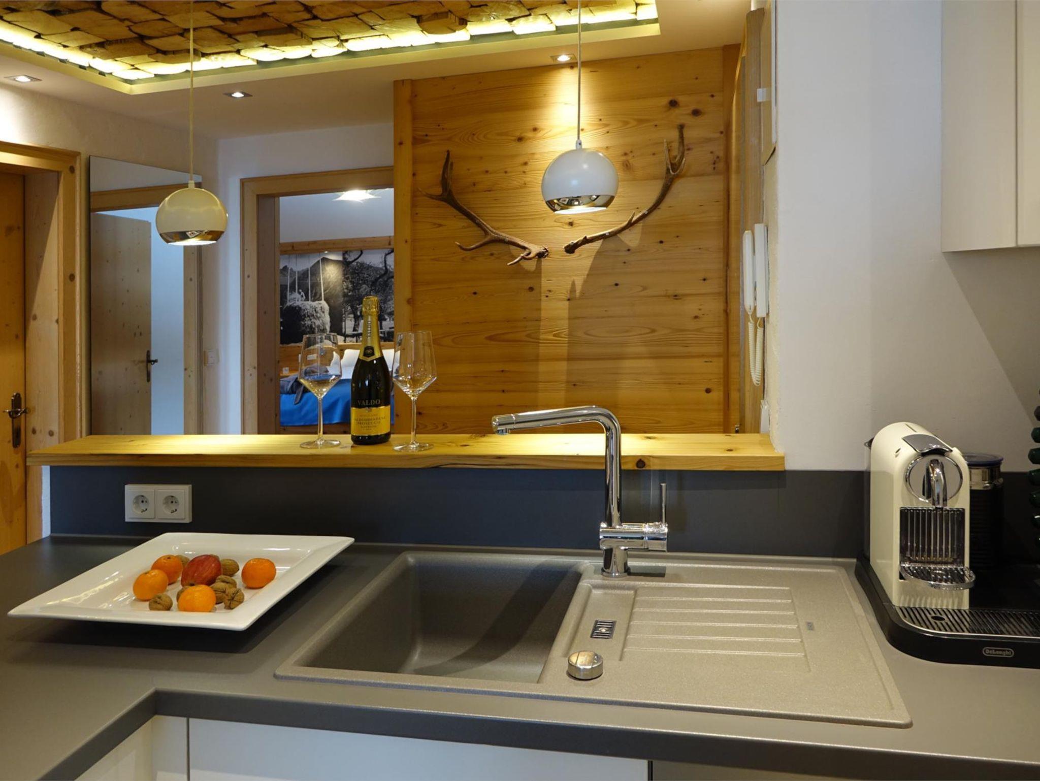 Zeitlos schön verbindet unser Appartement Rubihornblick Tradition, Luxus und Komfort: 58 qm, separates Schlafzimmer, Bad mit Mini Spa (Sauna und Rainshower), sehr großzügiger Wohnraum mit Essplatz und offener Küche mit Theke. Der Ausbau wurde mit Altholz gemacht und mit alten schwarz-weiß Fotografien kombiniert. Das Appartement verfügt zudem über einen Süd- und einen Westbalkon mit Blick in die Berge.