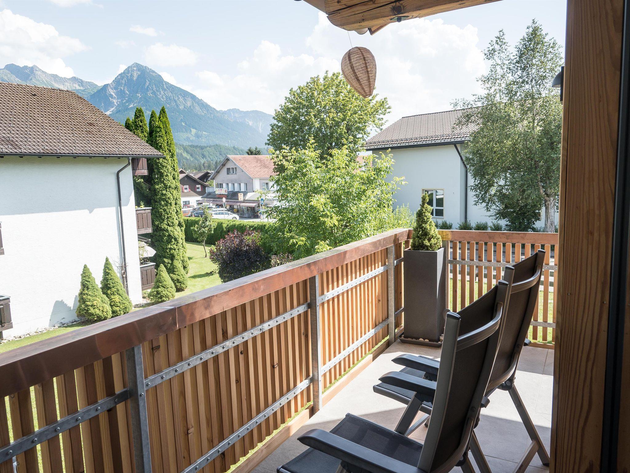 Das Appartement 07 im 2.OG, 41 qm, mit Südbalkon und freiem Blick in die Oberallgäuer Bergwelt, ist im modernen Landhausstil eingerichtet, der Wohnbereich mit Sitzecke, Flachbild-TV, gemütlicher Essecke und komplett ausgestatteter Küche. Der Schlafbereich hat ein hochwertiges Schrankbett mit großer Liegefläche ohne Fußende. Bad mit DU/WC, WLAN.