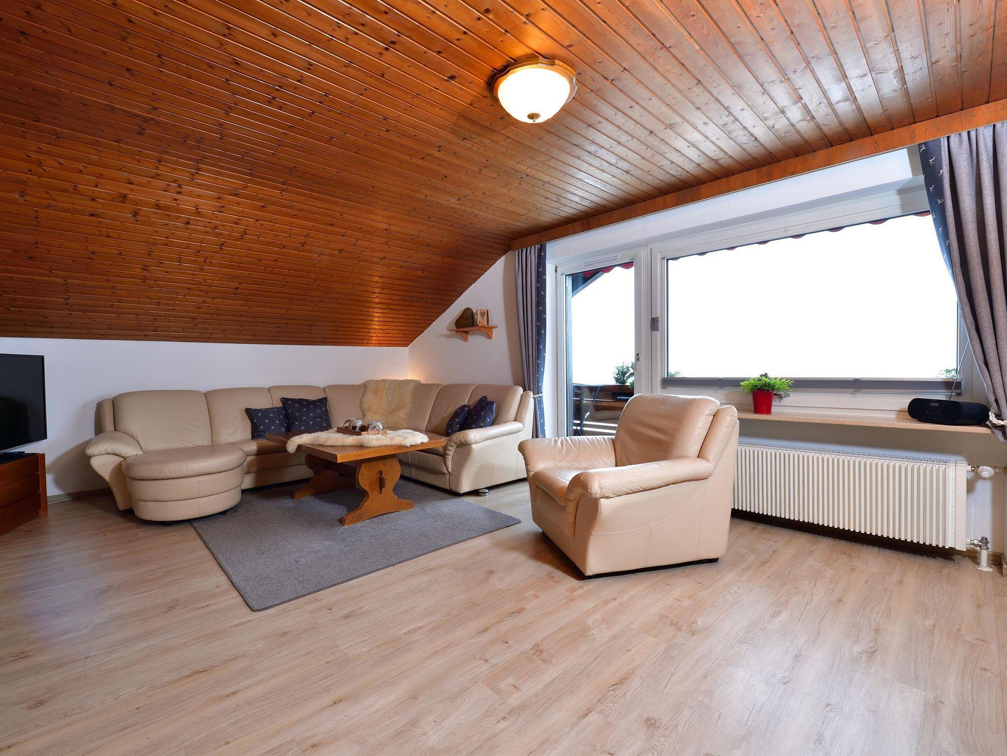 Ab 3 Pers: Im großen Wohn- und Esszimmer befindet sich eine große Echtledercouchgarnitur und eine große Bauereckbank und 2 zusätzliche vollwertige Einzelbetten als Schrankbett ausgeführt, sowie ein Doppelschlafsofa.