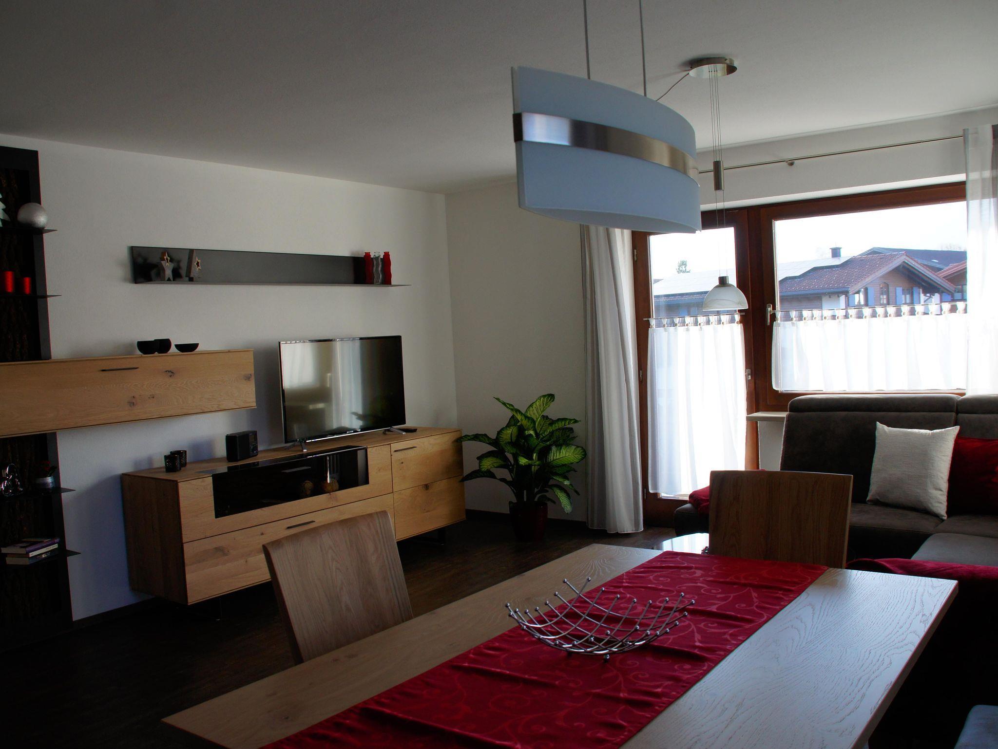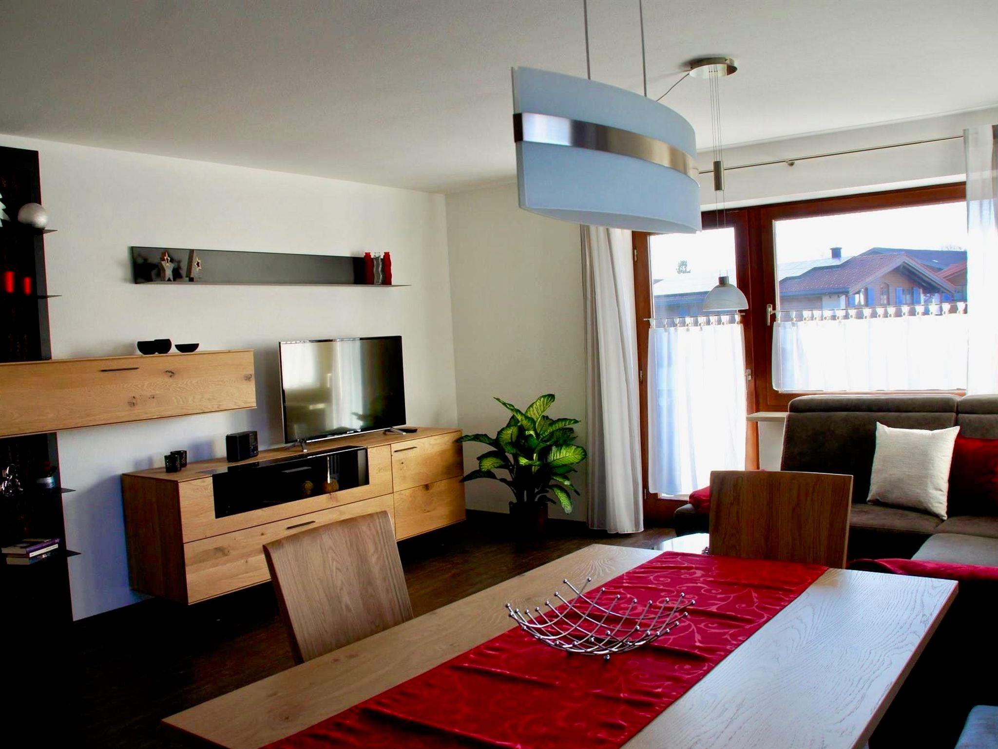 Der nach Westen ausgerichtete Balkon bietet im Winter einen herrlichen Ausblick auf die verschneite Hörnergruppe und im Sommer können Sie gemütlich bei einem Glas Wein den Sonnenuntergang genießen.