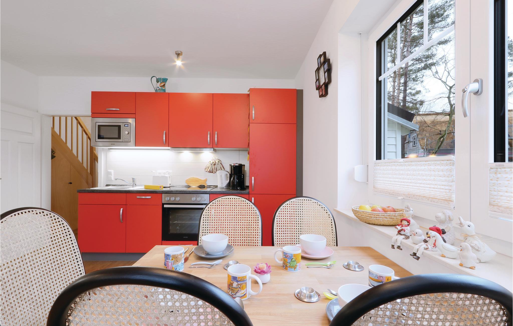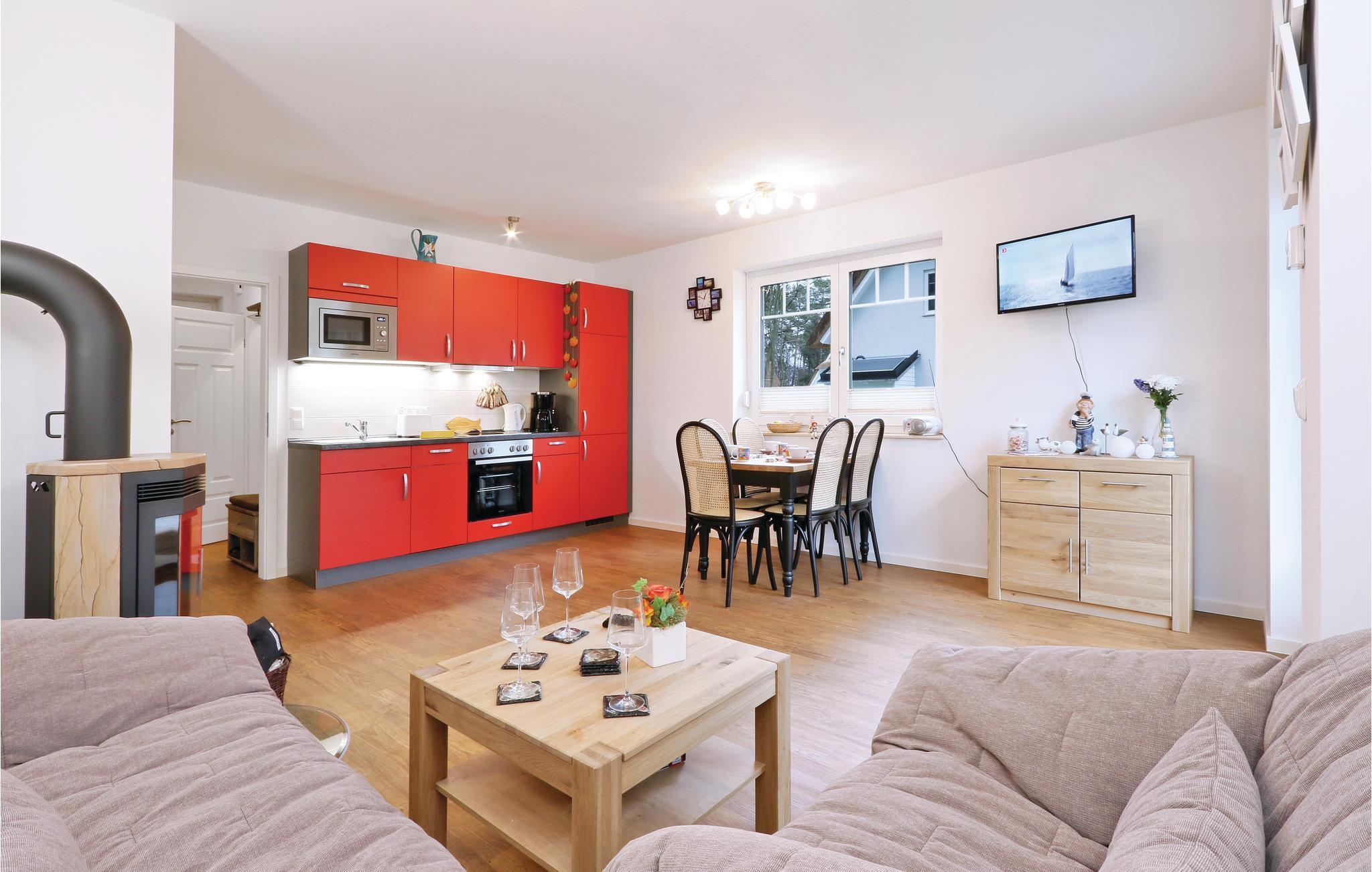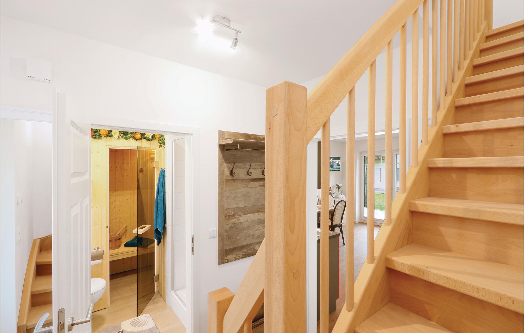 I denne halvdel af et dobbelthus der kaldes 'Moin Moin', der er af af høj kvalitet bor I på to etager. Fra køkkenalrummet kommer I til terrassen, hvor der kan nydes de mange solskinstimer. Havemøbler står til rådighed. På de koldere dage kan I finde varmen og nydelse i saunaen.