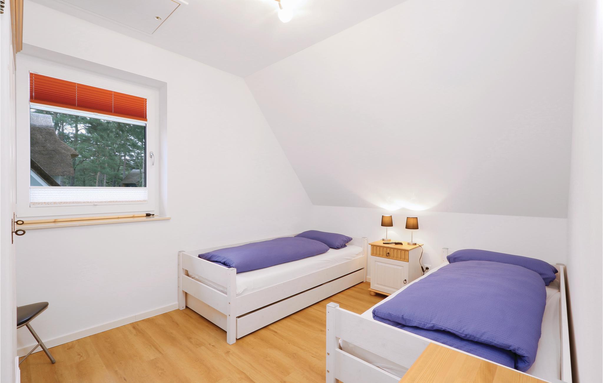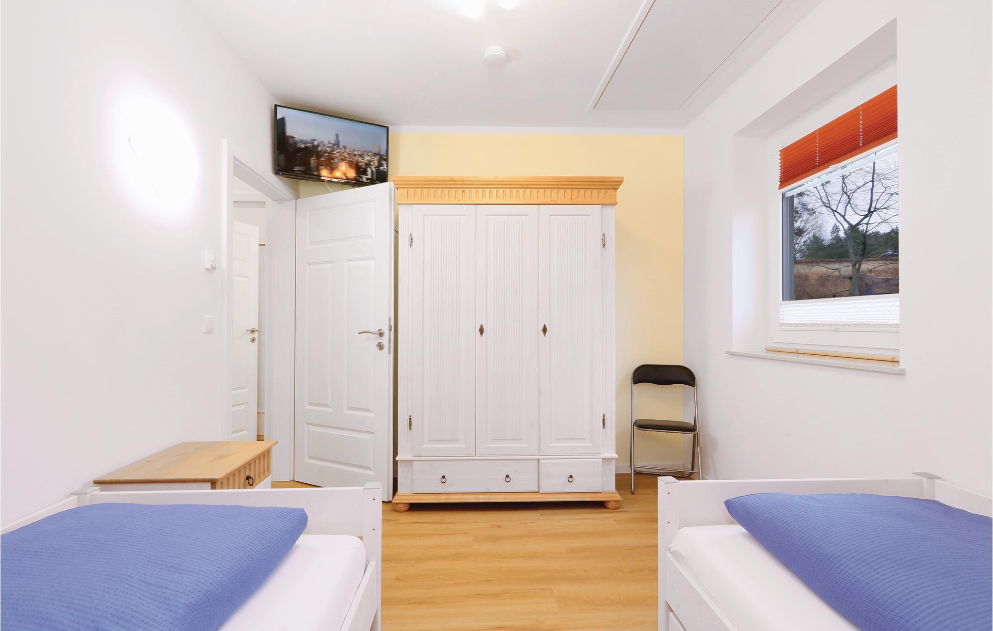 Det første soveværelse har en dobbeltseng, i det andet soveværelse står to enkeltsenge, den ene med udtræk hvor der kan sove et barn. I denne halvdel af et dobbelthus er der tre tv-er.