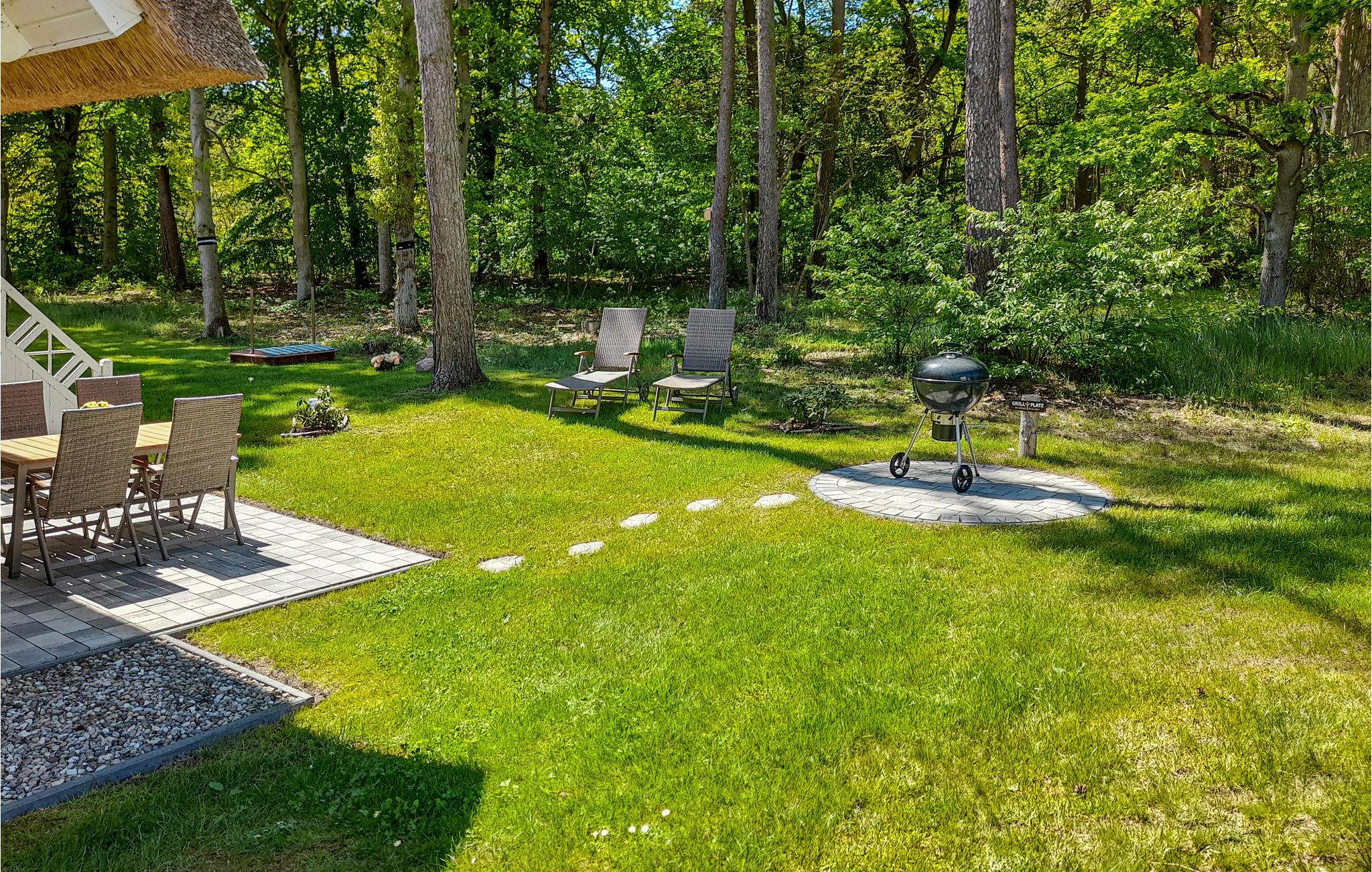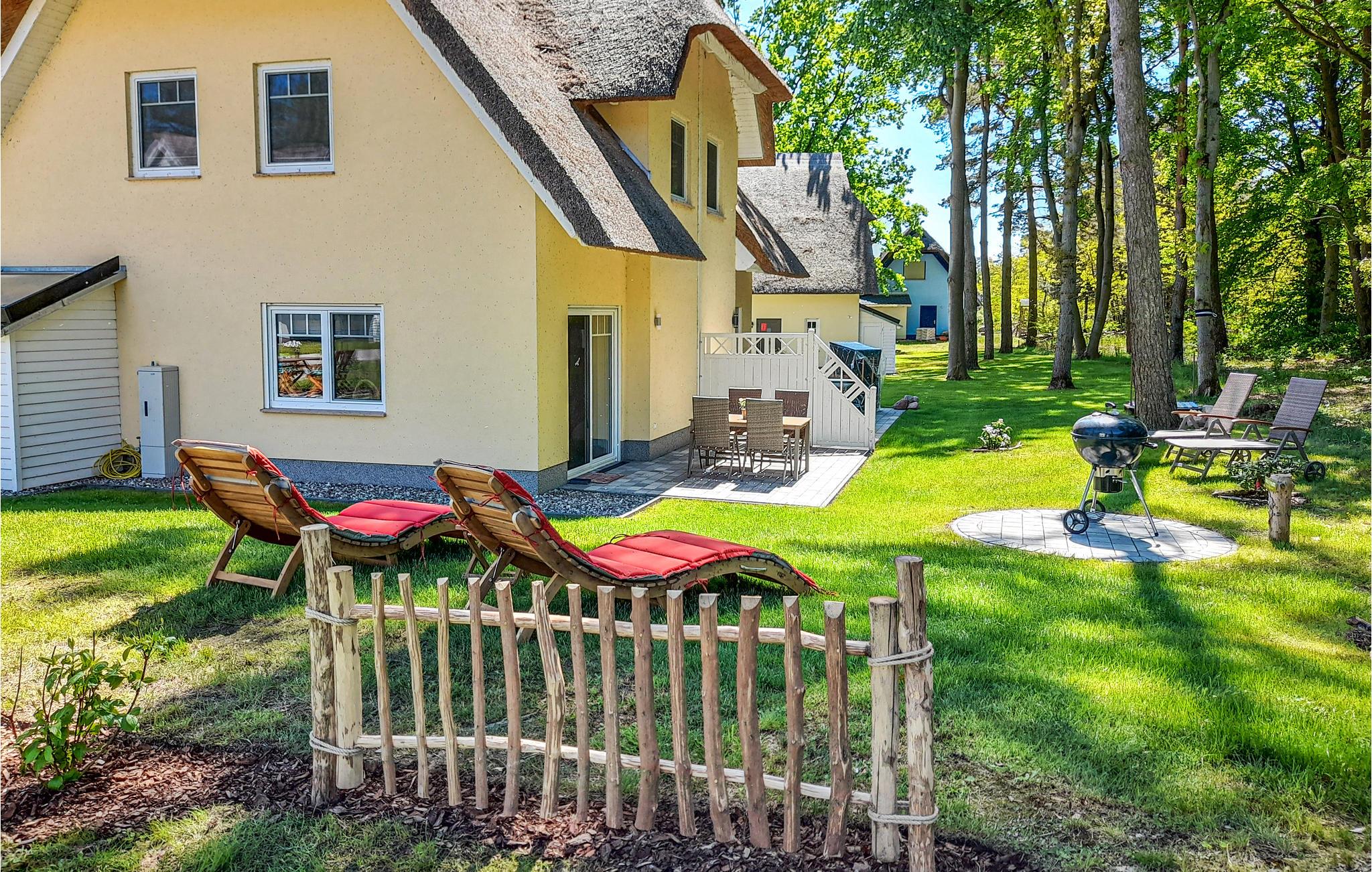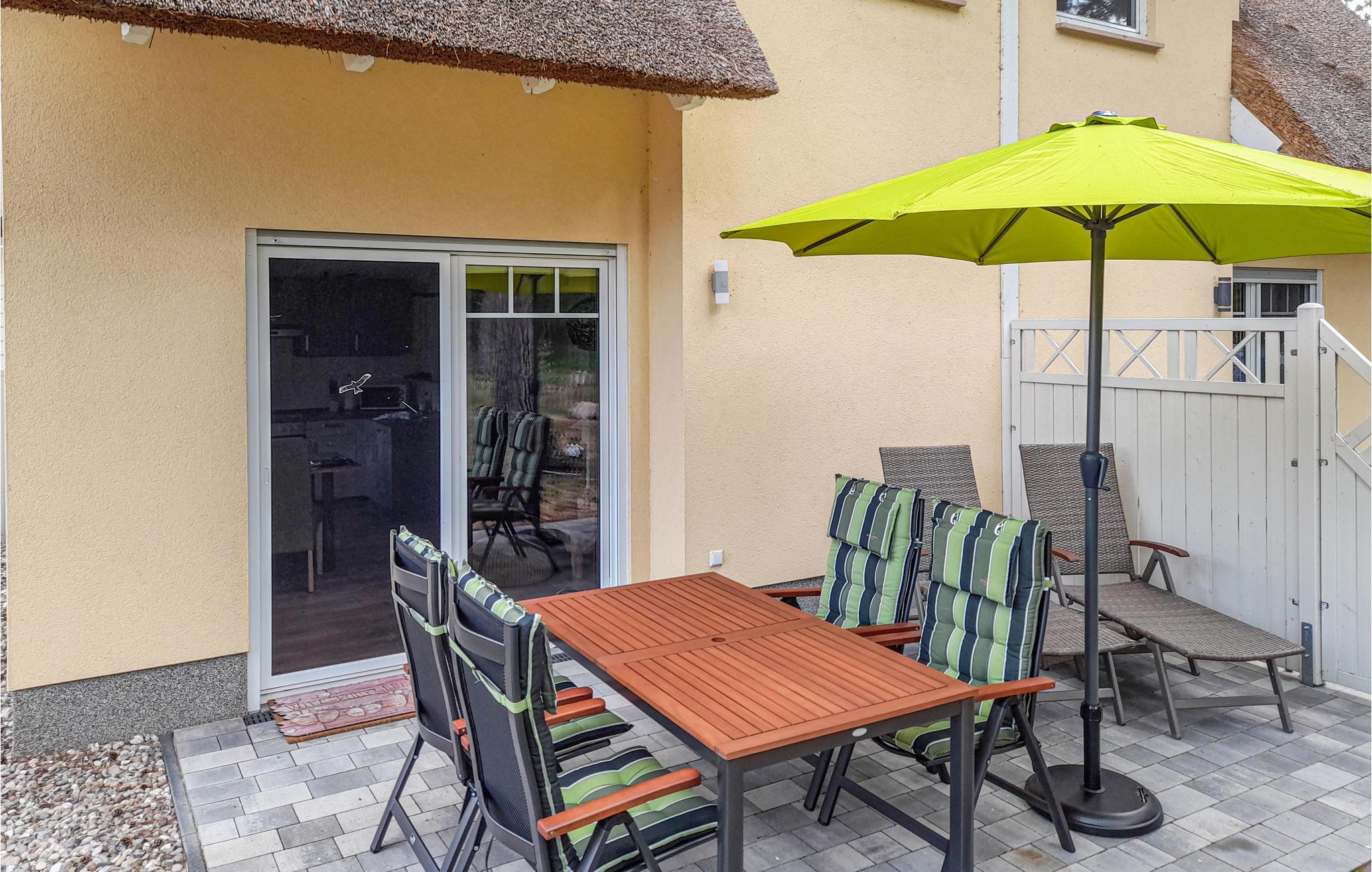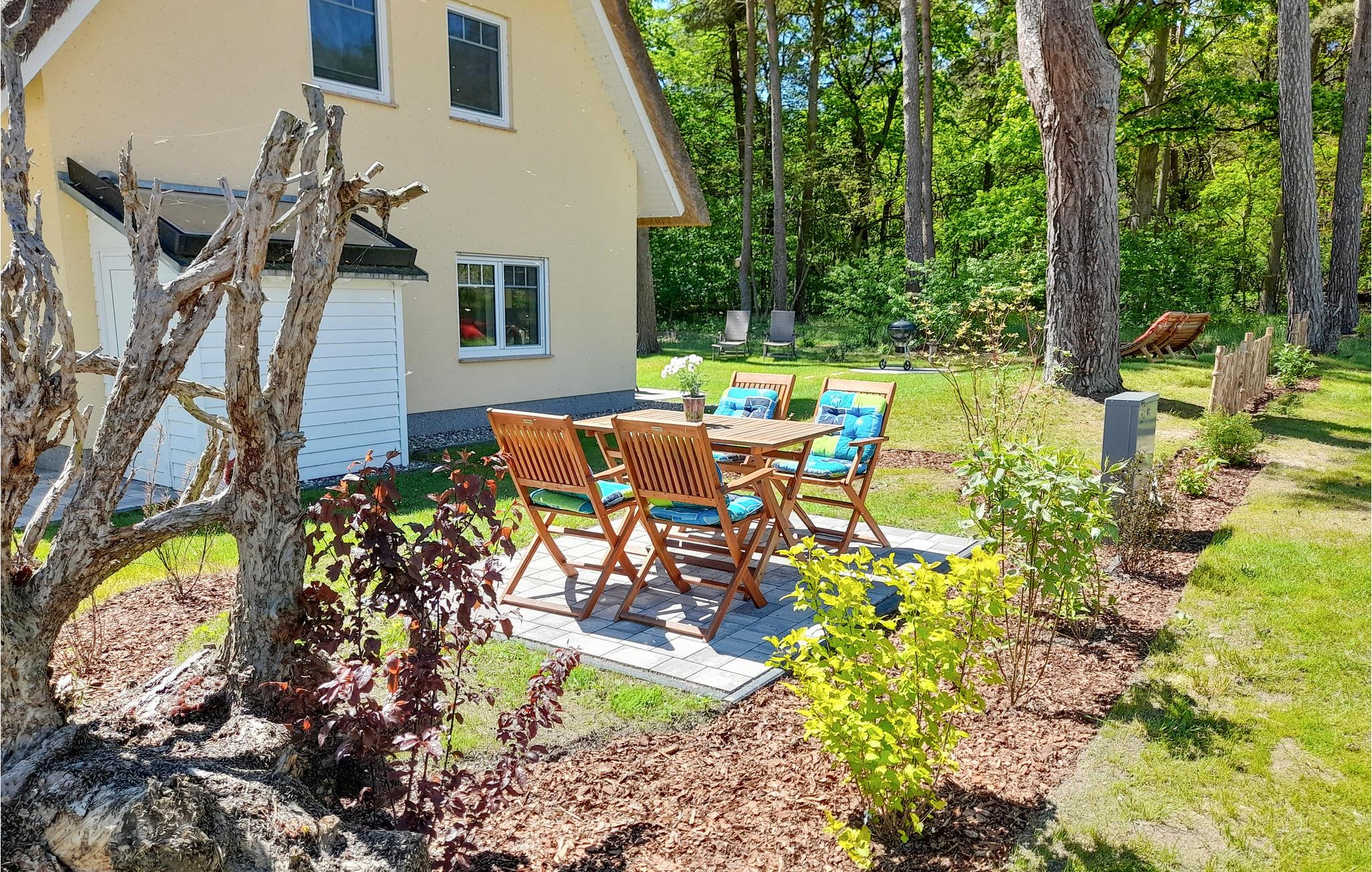 Denne omhyggeligt indrettede halvdel af et dobbelt feriehus hedder "Kiek in' Wald" og strækker sig over to etager. Fra den kombinerede stue- og spisestue er der udgang til terrasse, med flere siddehjørner, bord og stole, hvor I kan nyde Usedoms mange solskinstimer.