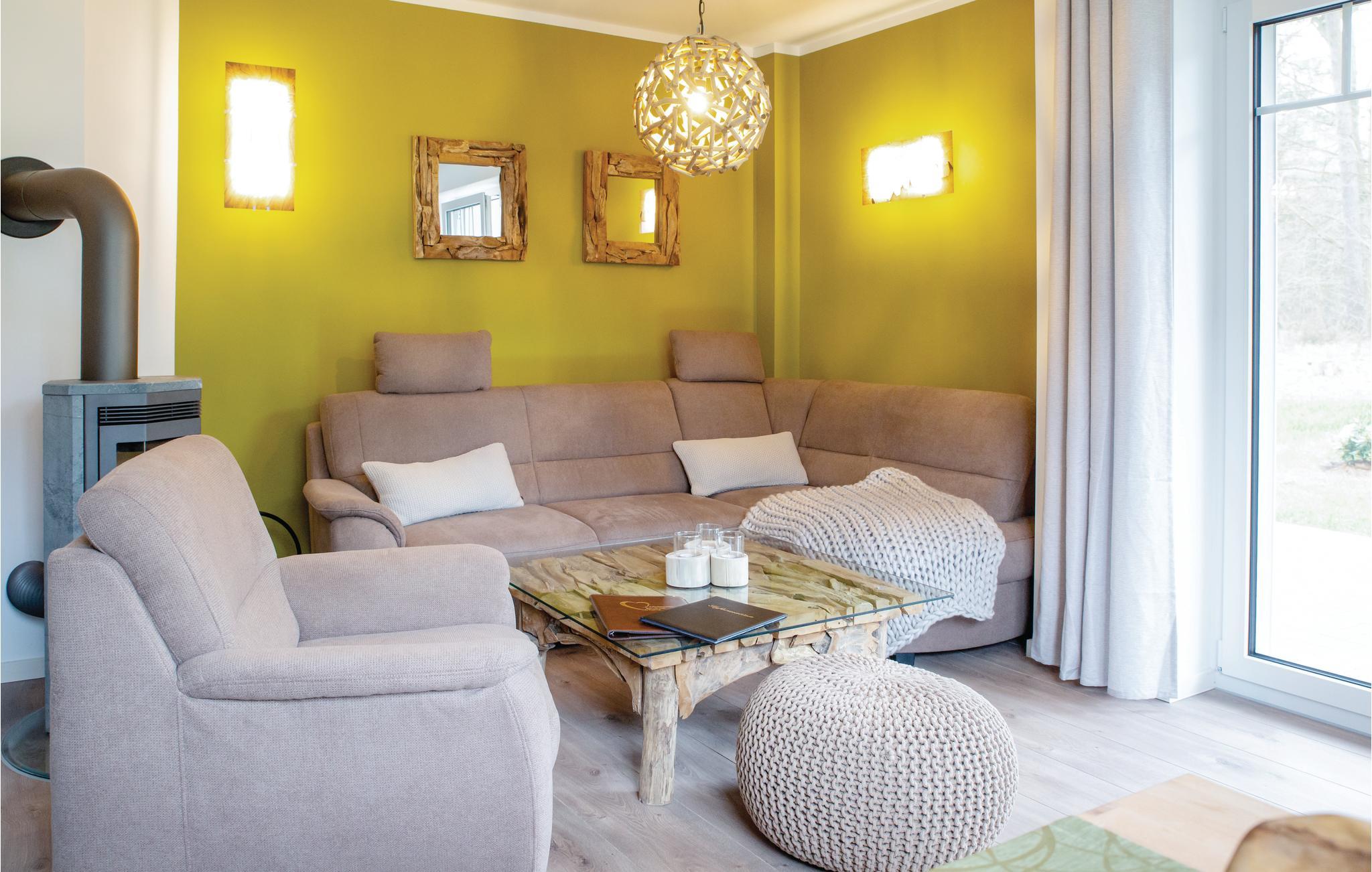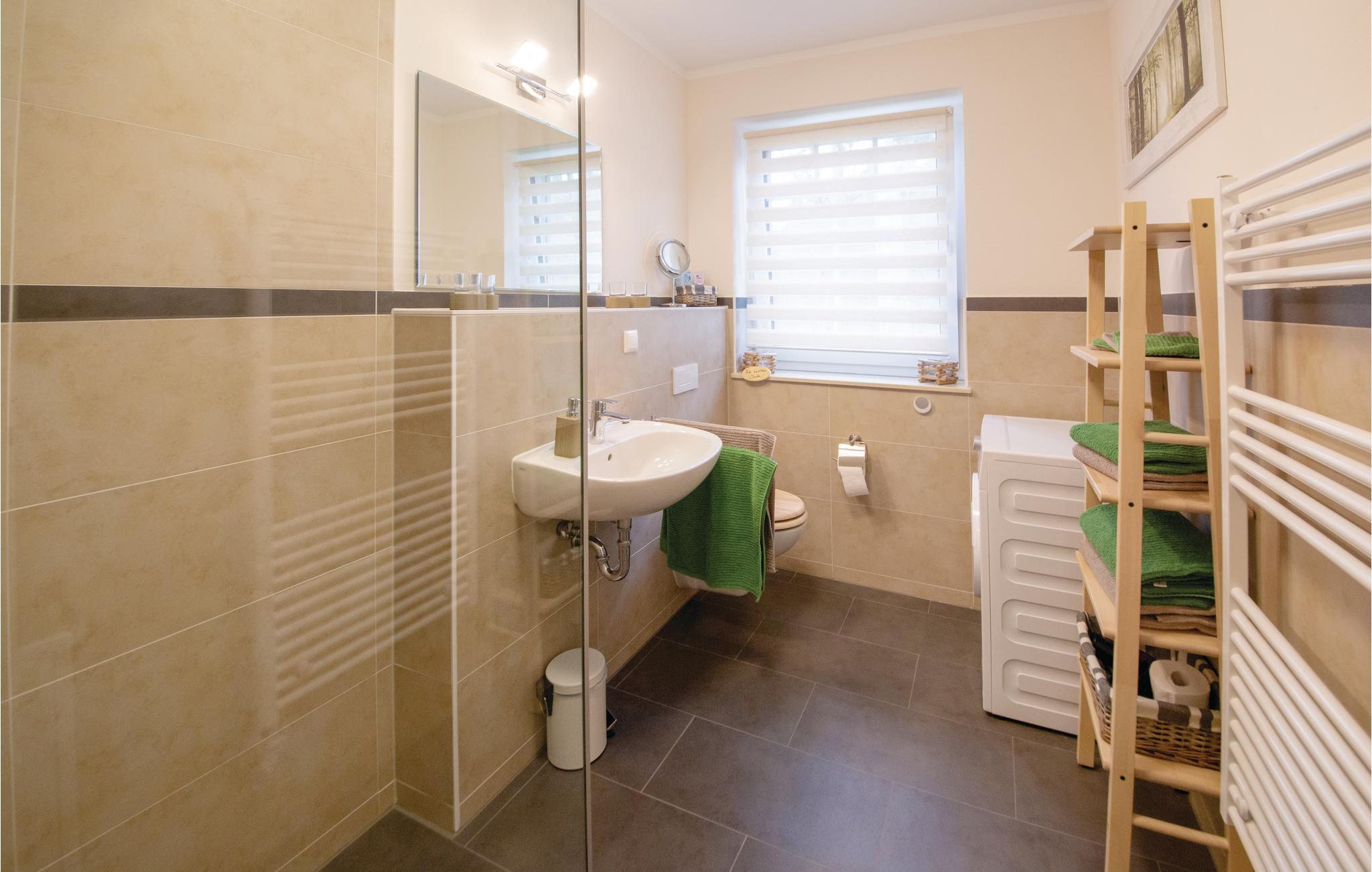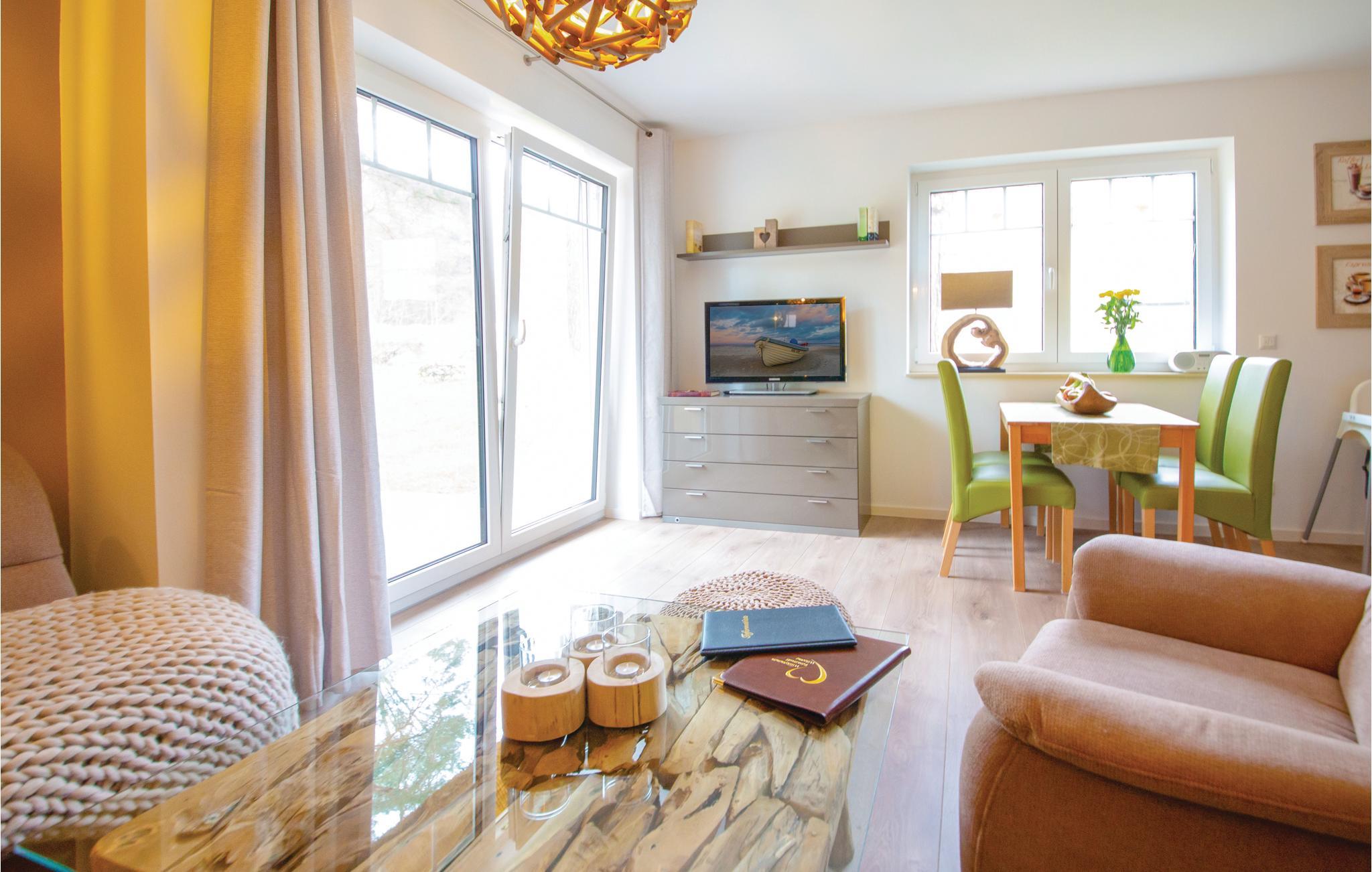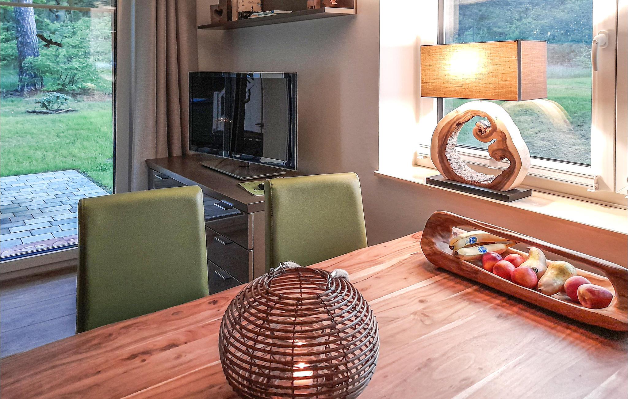 Denne omhyggeligt indrettede halvdel af et dobbelt feriehus hedder "Kiek in' Wald" og strækker sig over to etager. Fra den kombinerede stue- og spisestue er der udgang til terrasse, med flere siddehjørner, bord og stole, hvor I kan nyde Usedoms mange solskinstimer.
