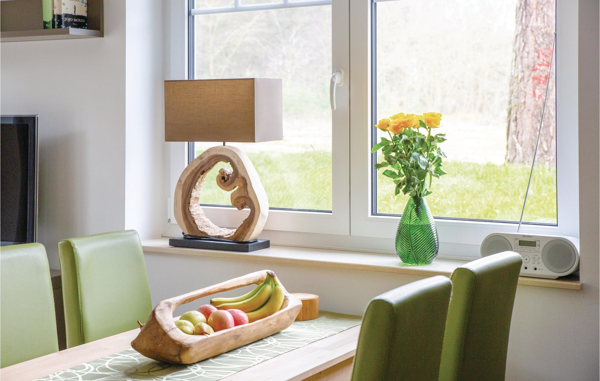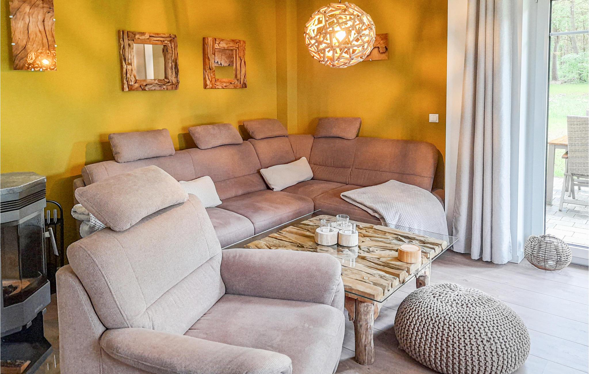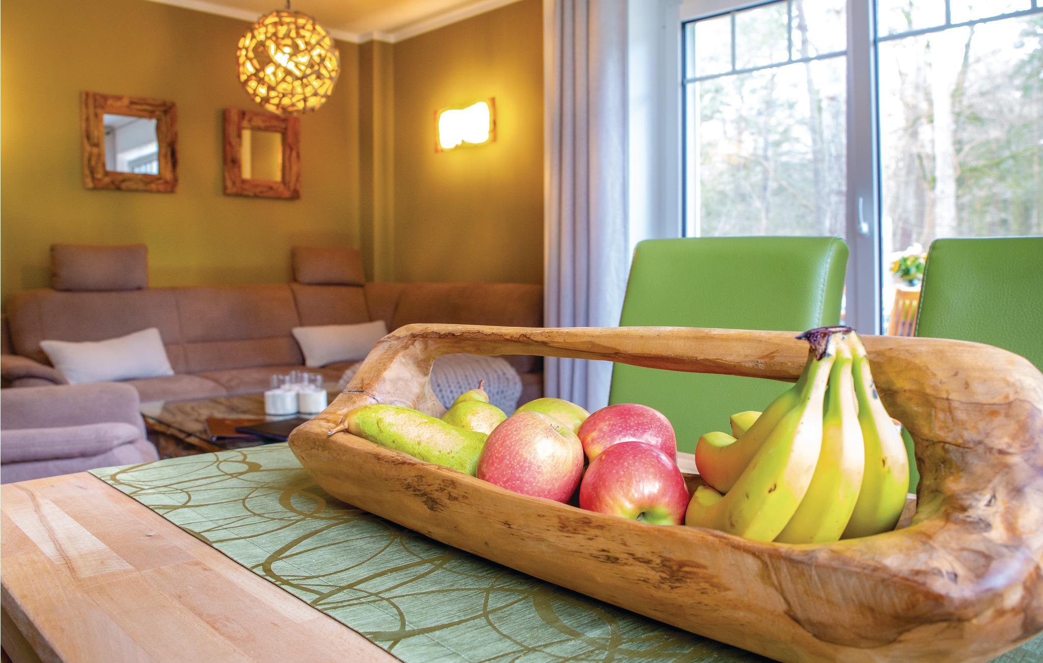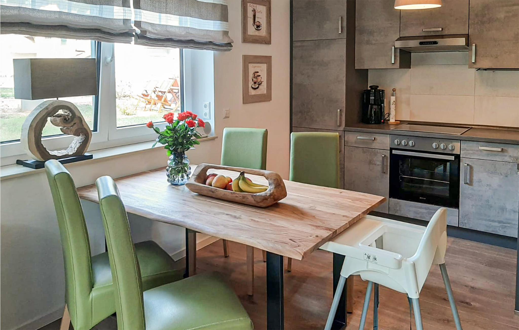 Denne omhyggeligt indrettede halvdel af et dobbelt feriehus hedder "Kiek in' Wald" og strækker sig over to etager. Fra den kombinerede stue- og spisestue er der udgang til terrasse, med flere siddehjørner, bord og stole, hvor I kan nyde Usedoms mange solskinstimer.