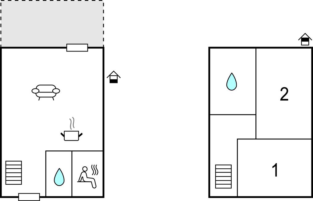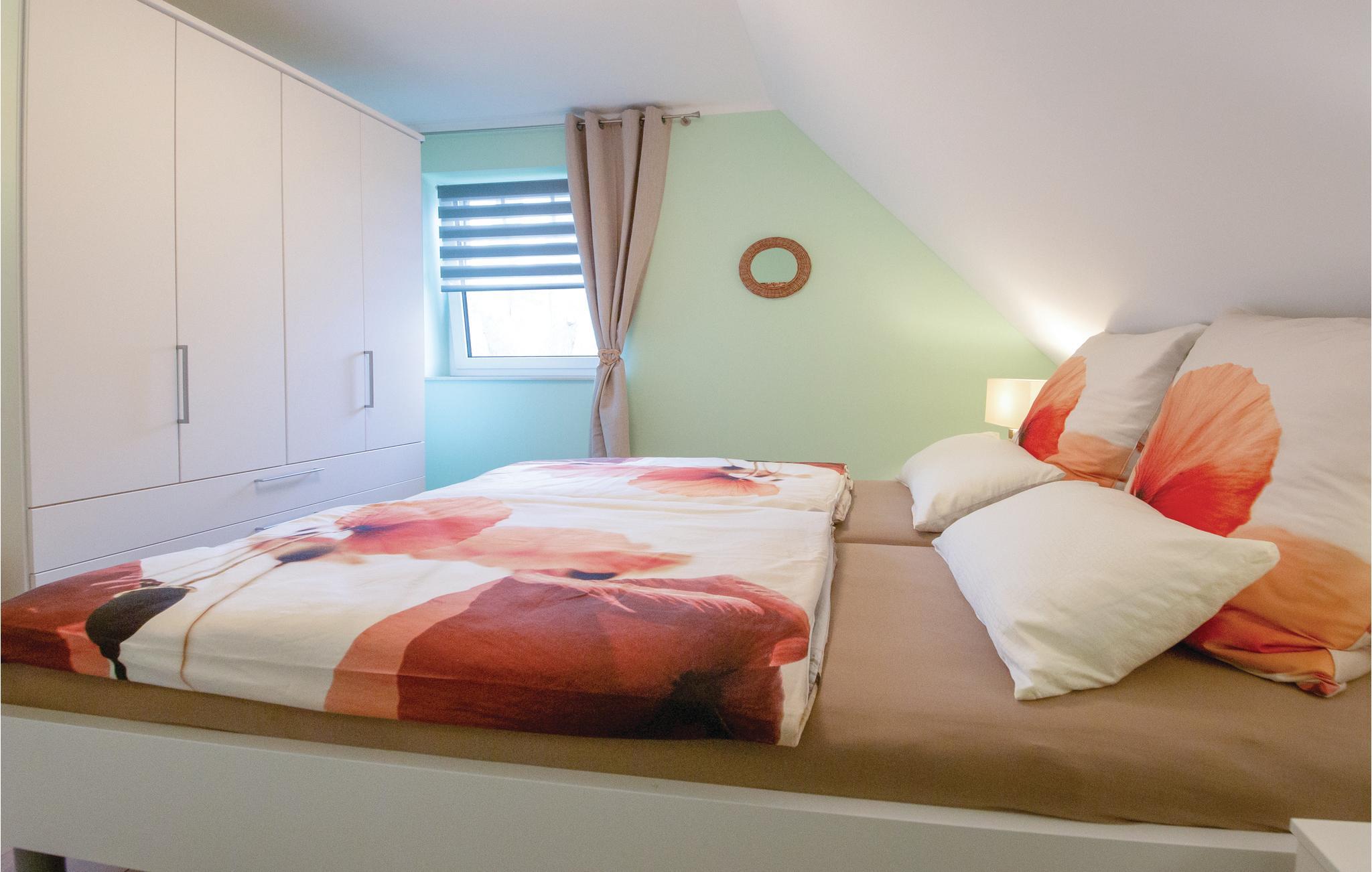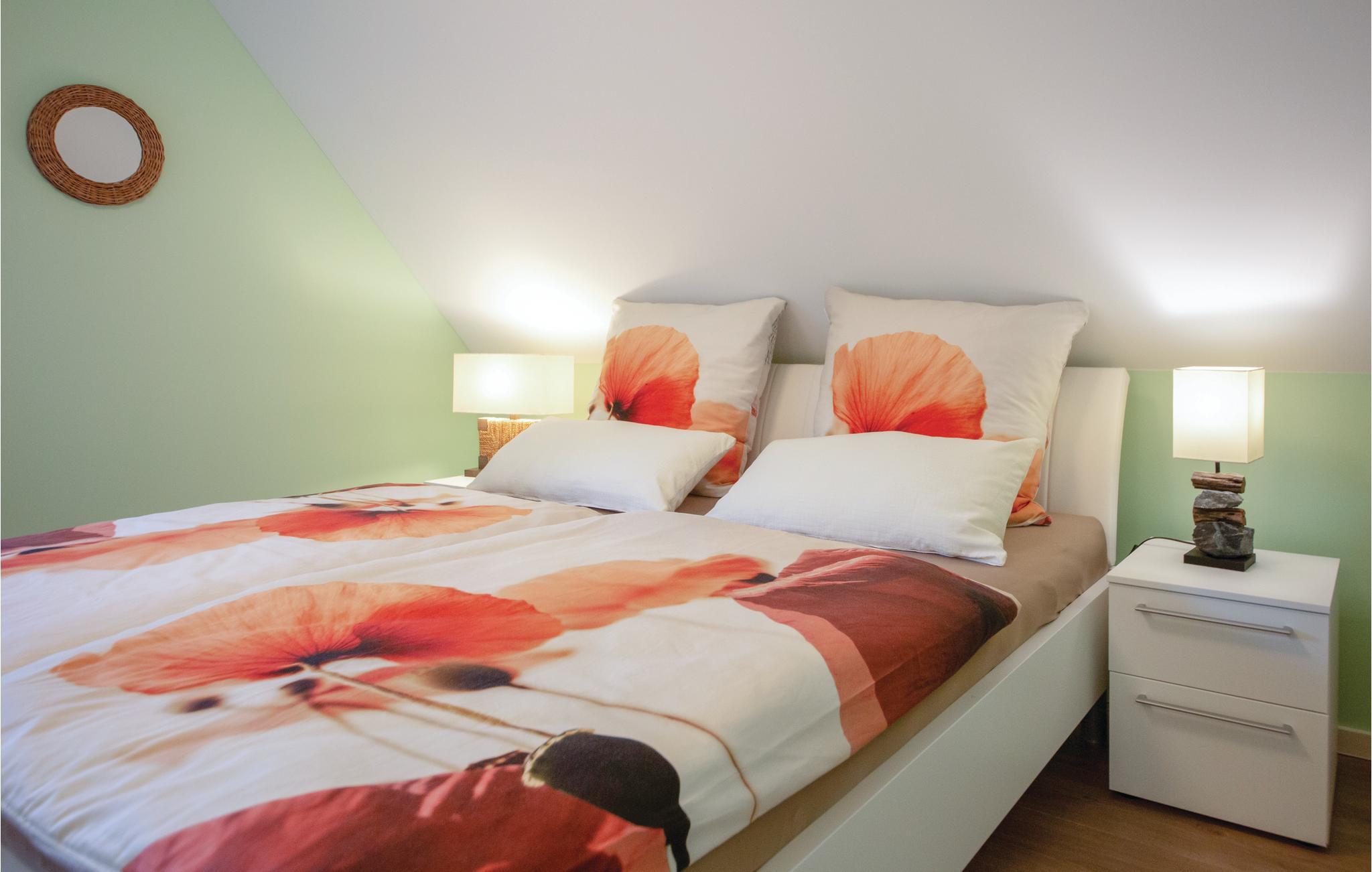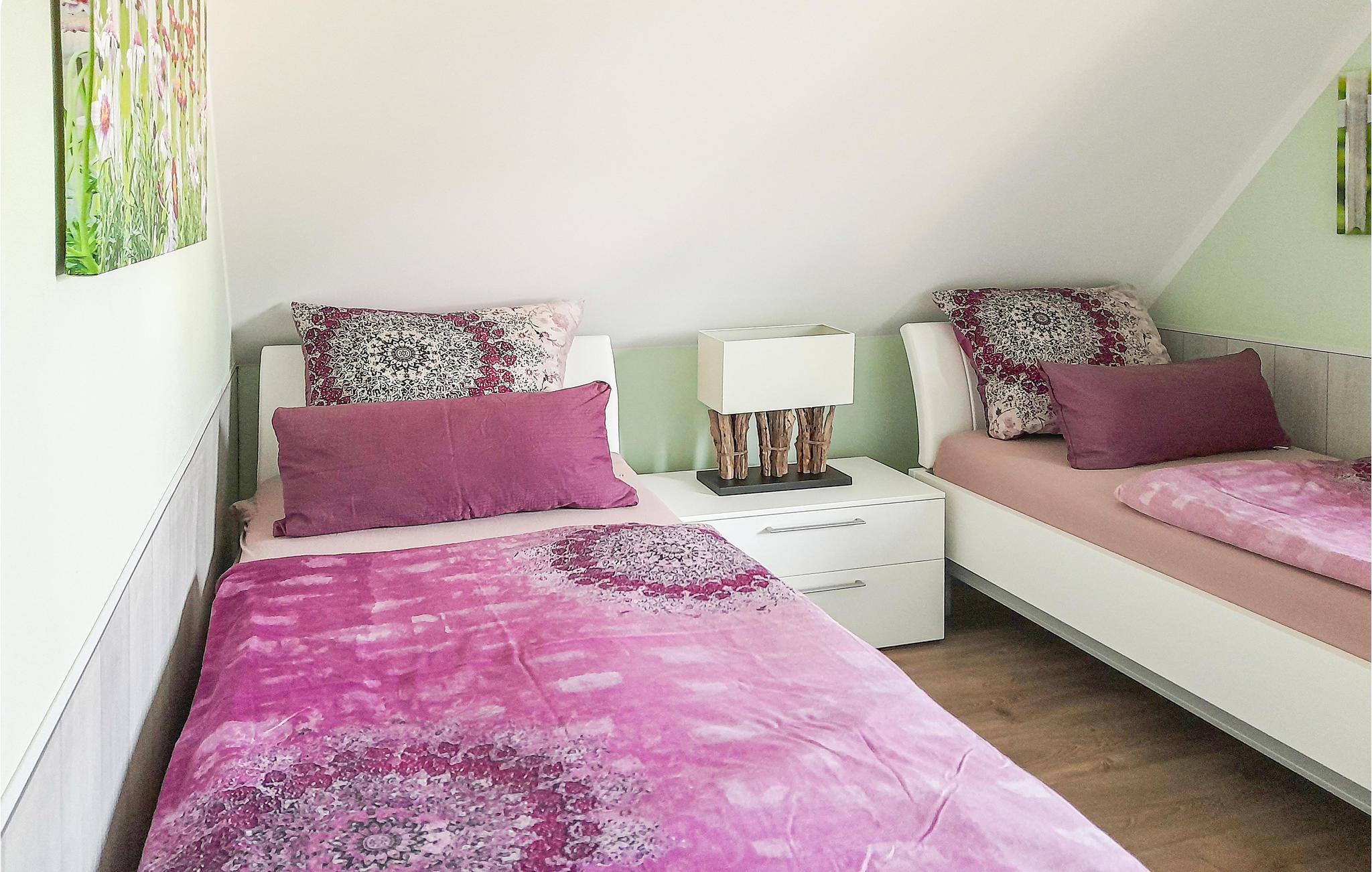 I det ene soveværelse er der en hyggelig dobbeltseng, i det andet to enkeltsenge. Der er også en børneseng med en ekstra madras.