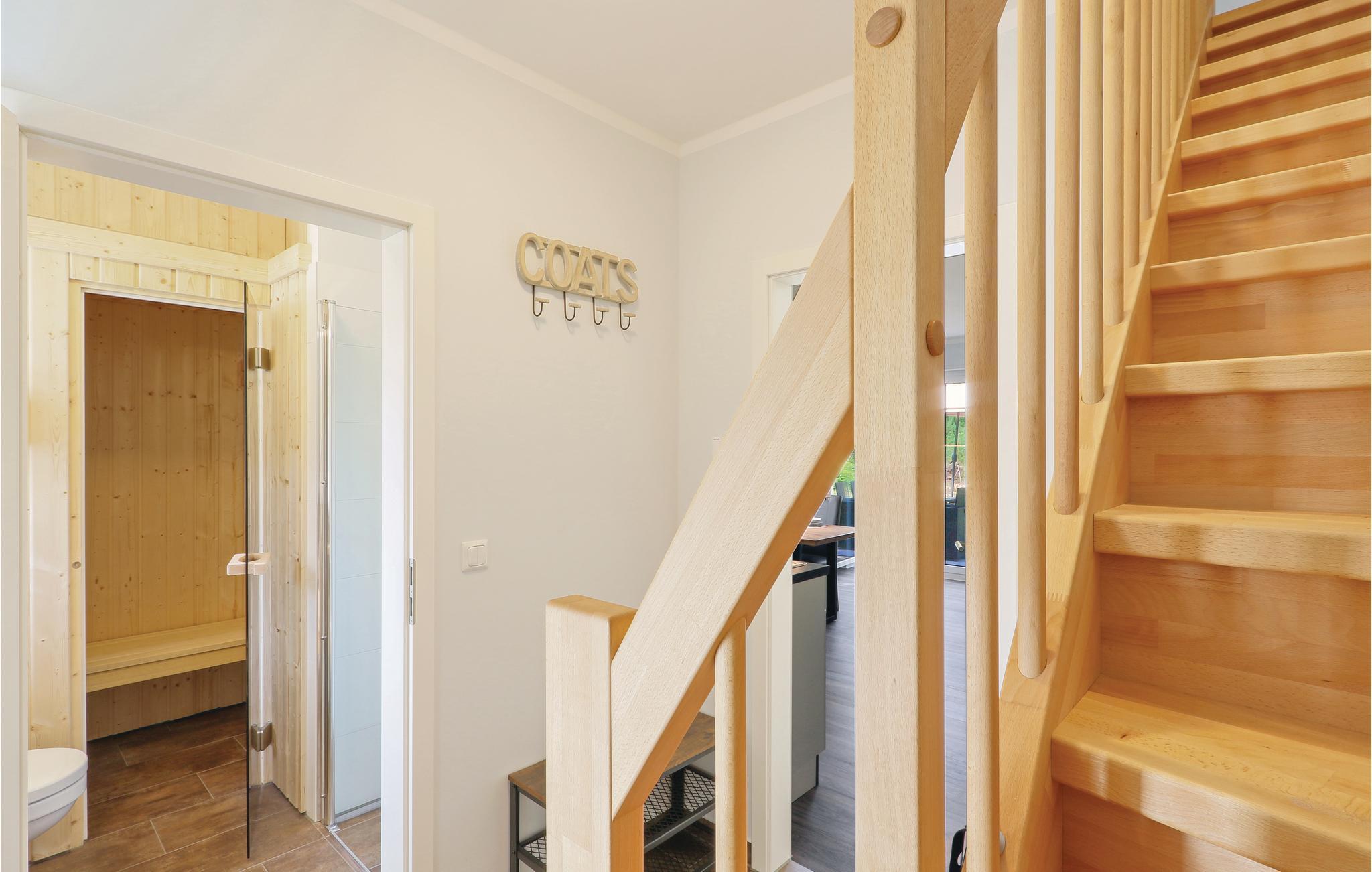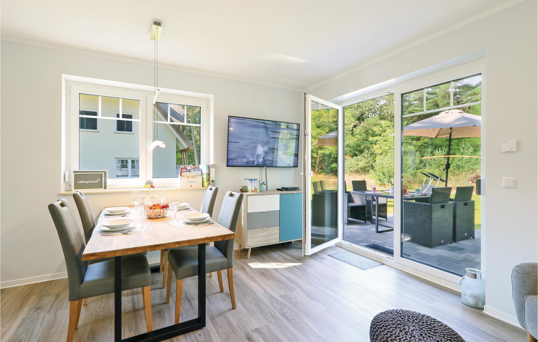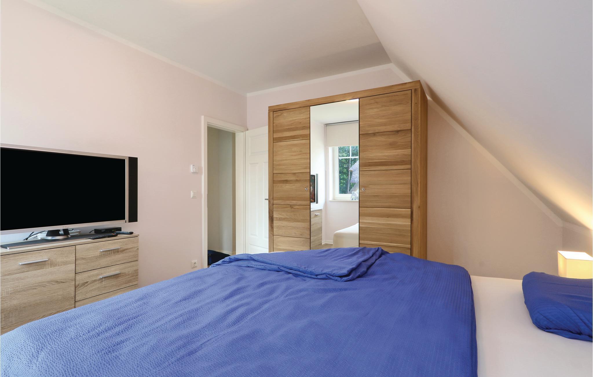 Feriehuset har to soveværelser og god plads til fire personer. Der er hele tre fjernsyn samt en Blu-Rayafspiller (der også kan afspille almindelige DVD'er), som er rar at have til underholdning på en hyggelig hjemmedag. Huset har gratis og ubegrænset internet samt gratis opkald til tyske fastnettelefoner. I husets tilhørende cykelgarage er der en stikontakt, som I nemt kan oplade elcykler og lignende med.