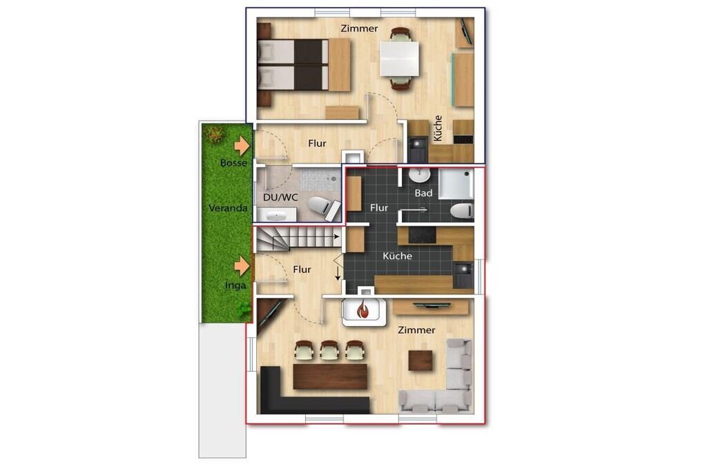 Stueetage: (entre(, ), entre(, ), Køkken(, , , kakkelovn, kogeplade, elkedel, brødrister, kaffemaskine, ovn, opvaskemaskine , køleskab, fryser), stue / spisestue(, , , bibliotek, Fjernsyn, spisebord, pejs, kakkelovn, DVD-afspiller, Blu-ray afspiller, radio), badeværelse(, , toilet, bruser, håndvask, føntørrer), badeværelse(, , toilet, bruser, bruser, håndvask, føntørrer)) På 1. etage: (badeværelse(, , toilet, badekar, håndvask, føntørrer)) Loft: (soveværelse(, , enkeltseng, enkeltseng, enkeltseng, enkeltseng, Fjernsyn, radio), soveværelse(, , dobbeltseng, dobbeltseng, Fjernsyn, radio)) , , , veranda, garage, Internetadgang, Internetadgang, Førstehjælp, tørretumbler, vaskemaskine, varme, have(, Grill center, Græsplæne, grill, havemøbler, solstole, sandkasse, Haveskur), parkering, strygebræt, strygejern, tørreskab
