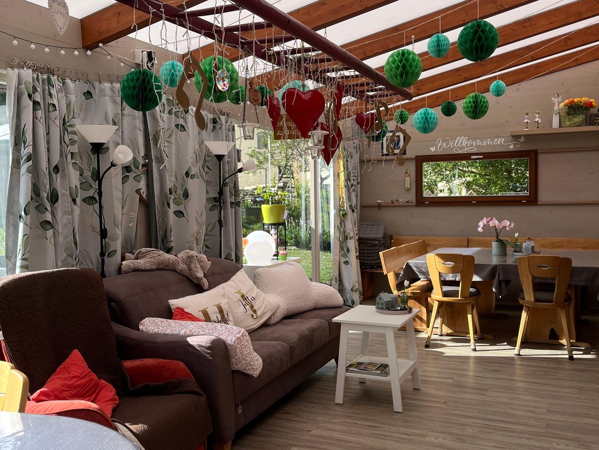 Mitten im Herzen Deutschlands liegt Fladungen, die nördlichste Stadt Bayerns. Hier finden Sie in ruhiger Ortsrandlage unser Haus. In dieser zauberhaften Umgebung warten eine Ferienwohnung und mehrere Zimmer auf Sie, alle sind behaglich groß und mit viel Liebe eingerichtet.? Lassen Sie den Alltag hinter sich und tauchen ein in die vielfältigen Möglichkeiten in der bayerischen Rhön. Von unserer Pension erreichen Sie in wenigen Gehminuten den Stadtkern von Fladungen. Mit Komfort und Ambiente sorgen wir dafür, dass Ihr Aufenthalt bei uns ab der ersten Minute erholsam und zu einer bleibenden schönen Erinnerung wird. In der Nachbarschaft finden Sie ein Freibad und eine Tennisanlage. Unser Haus hat das ganze Jahr für Sie geöffnet! Sie werden eine einmalige, ursprüngliche, herbe Kulturlandschaft kennen lernen, die Sie nirgendwo in Deutschland finden! Hier gibt es tolle Ausflugsziele rund um das Gästehaus Jutta, z. B. das Freilandmuseum mit Rhön-Zügle, in kürze das Rhönmuseum, die Wasserkuppe, den Kreuzberg, Hochmoore, bunte Blumenwiesen, tiefgrüne Matten, im Winter mit Eis und Schnee bedeckt zum Rodeln und Skilaufen und viel gesunde Luft, einfach zum Durchatmen.? Unser gemütlicher Frühstücks- und Aufenthaltsraum. Ihr Tag beginnt mit einem abwechslungsreichen Frühstücksangebot mit Hofeigenen Produkten (hausgemachten Wurstspezialitäten, selbstgebackenem Brot und Kuchen, sowie selbst hergestellte Fruchtaufstrichen und vieles mehr). Frühstücks- und Aufenthaltsraum mit Speisemöglichkeit. Die Sauna bleibt bis auf weiteres geschlossen