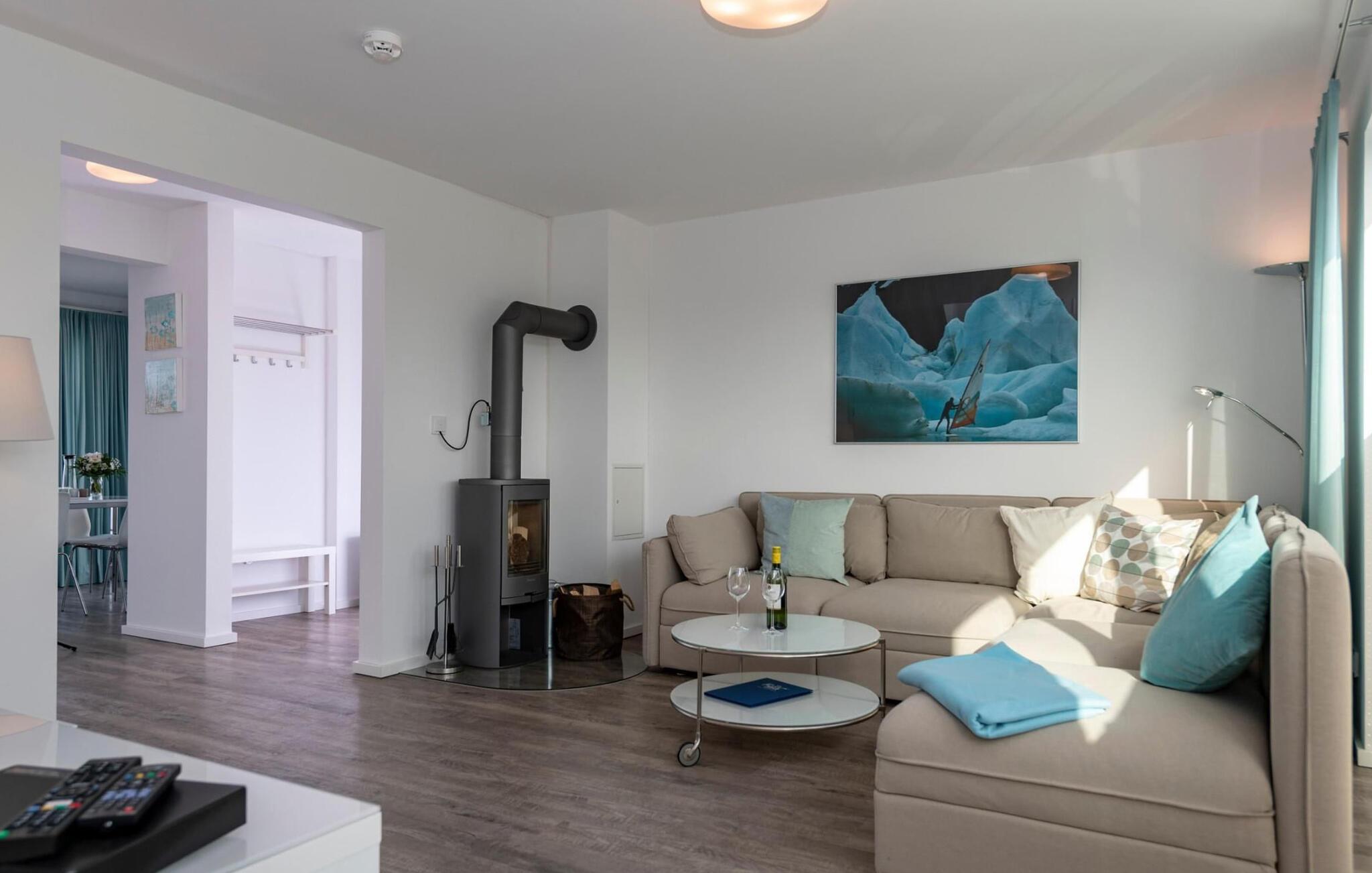 Det bliver hyggeligt i stuen, for en hyggelig siddegruppe indbyder til en hyggelig aften ved pejsen selv på dårlige nordiske vejrdage. Smart-tv med dvd-afspiller samt forskellige brætspil og bøger sørger også for indendørs underholdning.