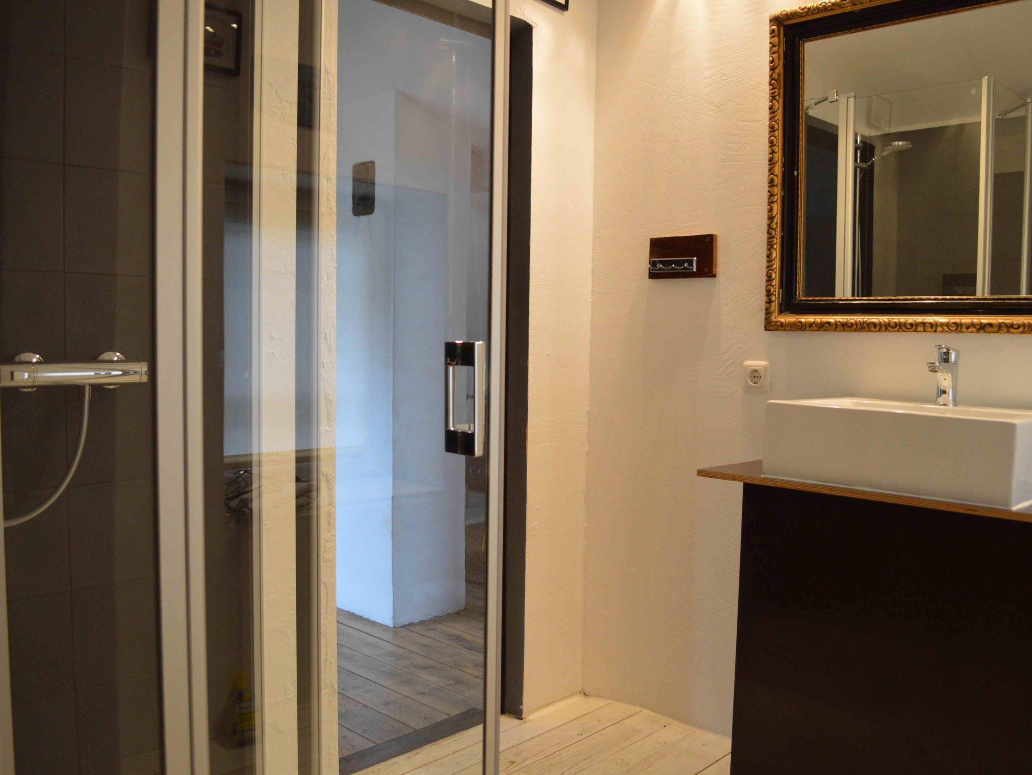 Unsere Wohnung im Dachgeschoss bietet Platz für 4+ Personen. Zur Wohnung gehört eine großzügige Dachterrasse. Ein großzügiger Wohn- und Essbereich mit angrenzender offener Küche bildet das Herz der Wohnung. Auf der Richtung Süden gelegenen Dachterrasse können Sie den Blick über die Dächer genießen. Die Wohnung hat ein Schlafzimmer mit Doppelbett, sowie ein Schlafzimmer mit zwei Einzelbetten. Ein Alkovenbett bietet bei Bedarf zwei weitere Schlafplätze. Das modern ausgestattete Badezimmer verfügt über Dusche und Badewanne. Ein Kaminofen sorgt für Gemütlichkeit.