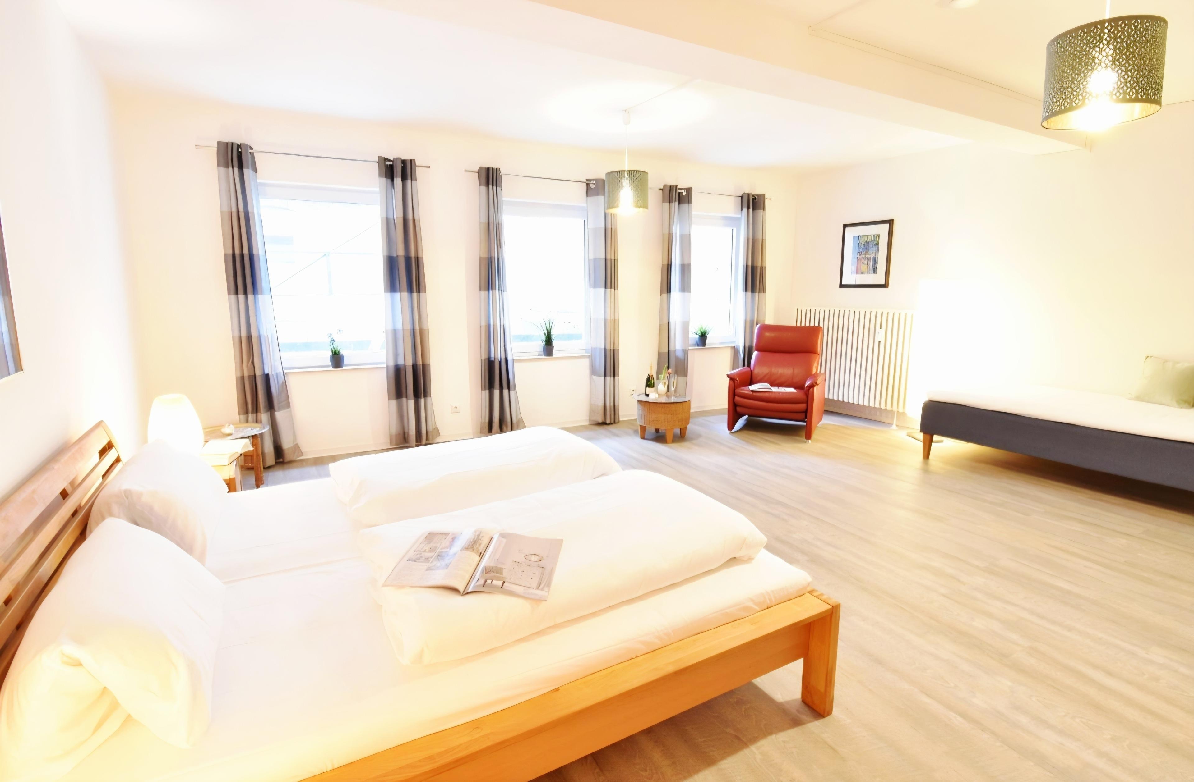 Das moderne Duschbad, WLAN, TV und eine eigene Waschmaschine runden die Ausstattung ab. Bitte beachte: Neben dem separaten Schlafzimmer sind die weiteren Schlafgelegenheiten offen gestaltet, sodass der Loft-Charakter bestehen bleibt. Auch Haustiere sind herzlich willkommen.