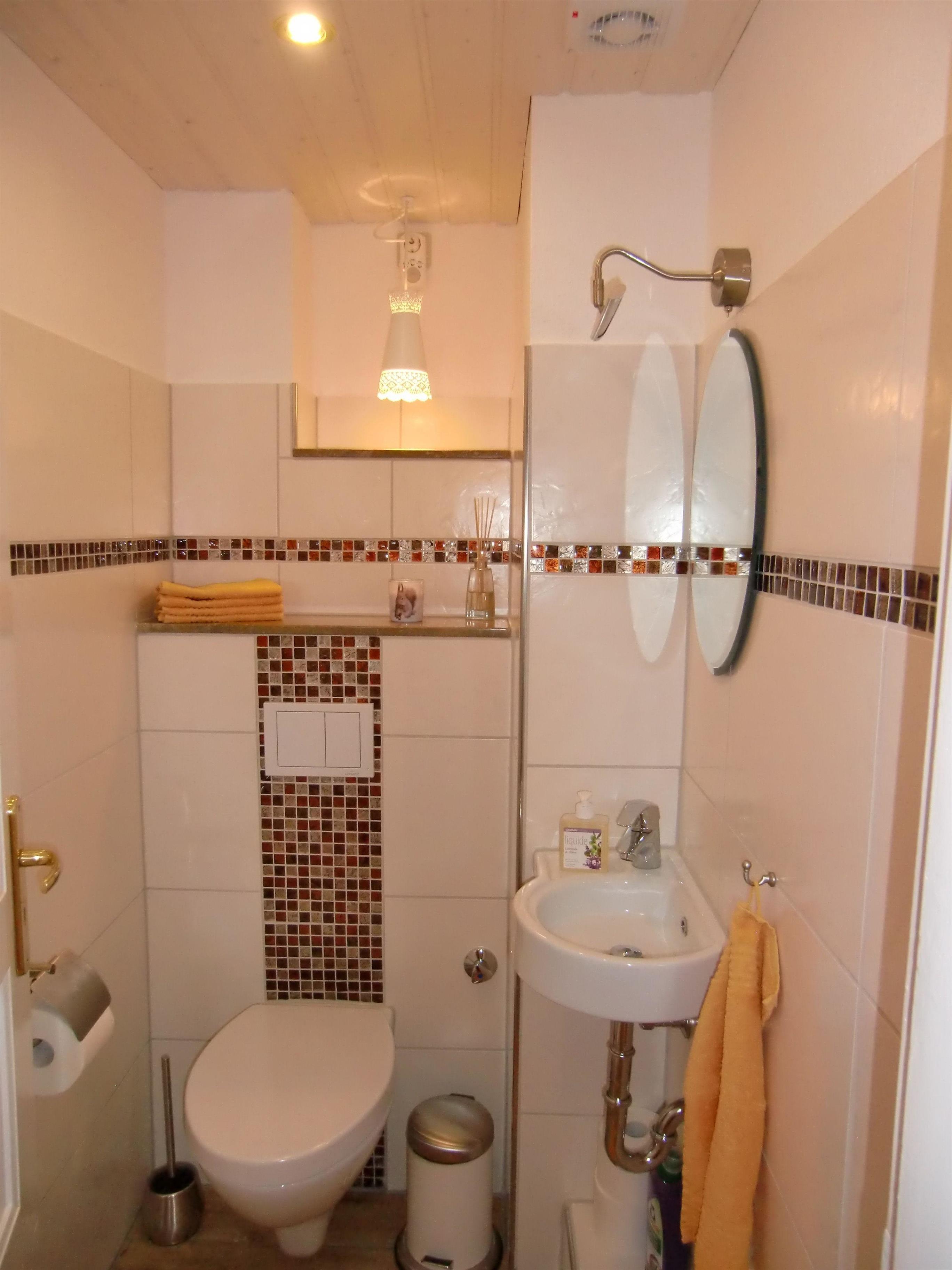 Das Duschbad besteht auch aus einer Massagebrause, einem Waschbecken, Fön, WC, Handtuchheizkörper und einer Fußbodenheizung. Im Gäste - WC befindet sich ein kleines Handwaschbecken. Der Eingangsbereich zeichnet sich durch einen langen Flur aus, von dem man das Kinderzimmer, das Wohnzimmer, das Gäste - WC, das Duschbad und die Küche erreichen kann.