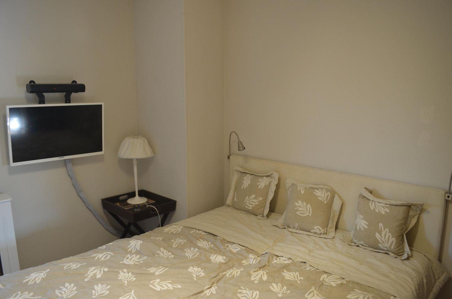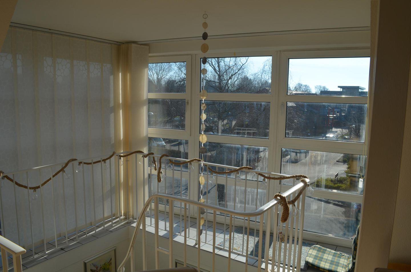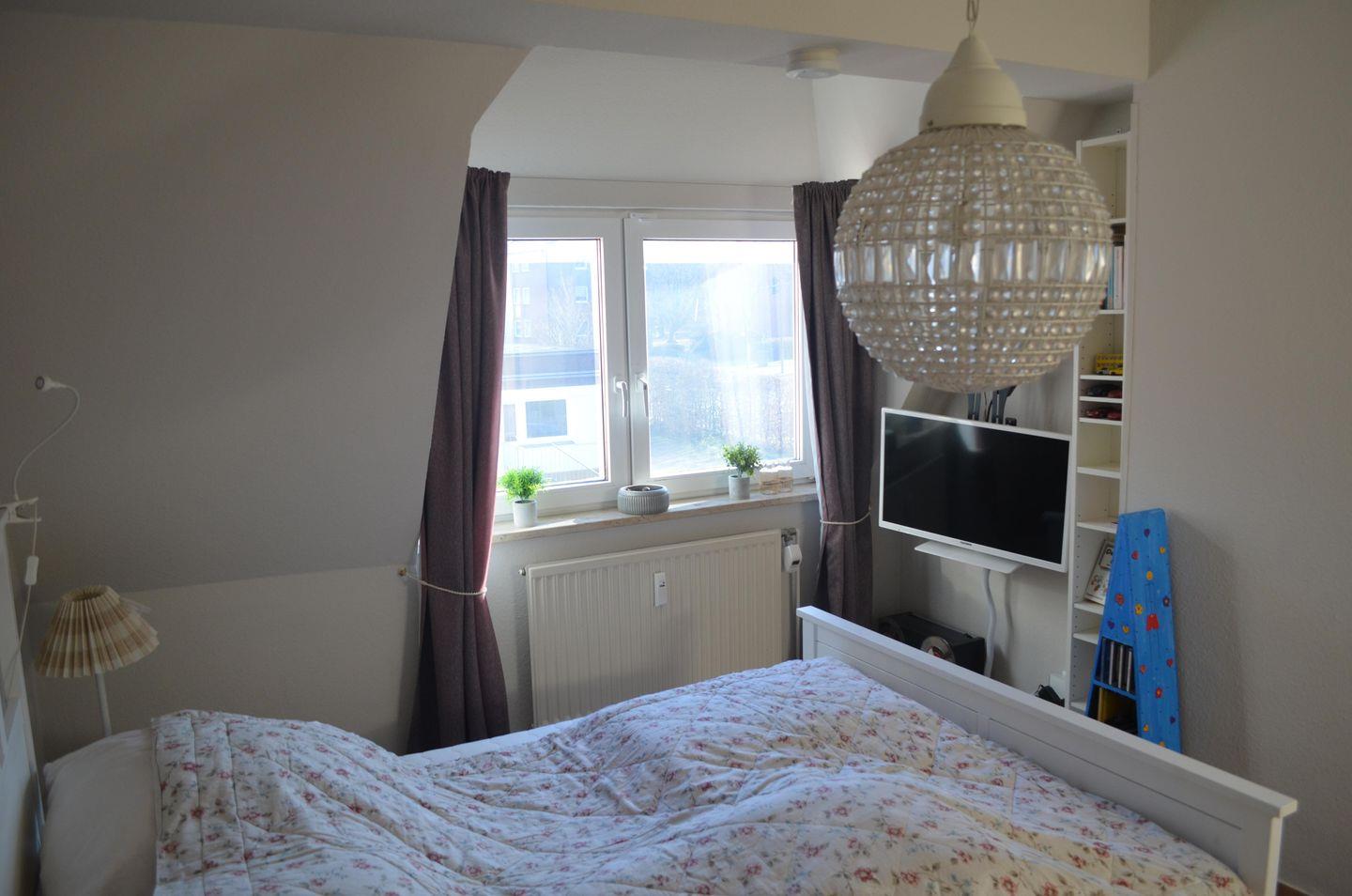 Willkommen im "Meerglück" in Flensburg! Die Ferienwohnung bietet auf 90m² Platz für 4 Personen - mit zwei Schlafzimmern, einem offenen Wohn- und Essbereich, einem Bad und einem überdachten Balkon. In dem Wohnbereich kann abends auf dem Sofa vor dem Flachbild-TV herrlich entspannt werden, während der Kamin an kälteren Tagen für eine gemütliche Atmosphäre und Wärme sorgt. In der vollausgestatteten Küche können leckere Urlaubsgerichte zubereitet und am Esstisch oder draußen auf dem Balkon genossen werden. Für unsere kleinen Urlauber stehen ein Kinderhochstuhl und ein Kinderreisebett bereit. Das eine der beiden Schlafzimmer ist mit einem gemütlichen Doppelbett (160x200cm) ausgestattet, das andere Schlafzimmer bietet ebenfalls ein komfortables Doppelbett (140x200cm). Beide Schlafzimmer sind mit Flachbild-TVs und Verdunkelungsmöglichkeiten ausgestattet. Das Badezimmer ist mit einer Badewanne, einer Dusche, einem Handtuchtrockner, einem Flachbild-TV und einem Föhn ausgestattet. Ein Waschtrockner und ein Wäscheständer stehen zusätzlich bereit, sodass auch längeren Aufenthalten nichts im Wege steht. Der überdachte Balkon im 1. Obergeschoss lädt zu gemütlichen Grillabenden in geselliger Runde am Weber Gasgrill ein. Von dort haben Sie einen wunderschönen Ausblick auf die Flensburger Förde und können morgens an der frischen Luft Ihren Morgenkaffee genießen.