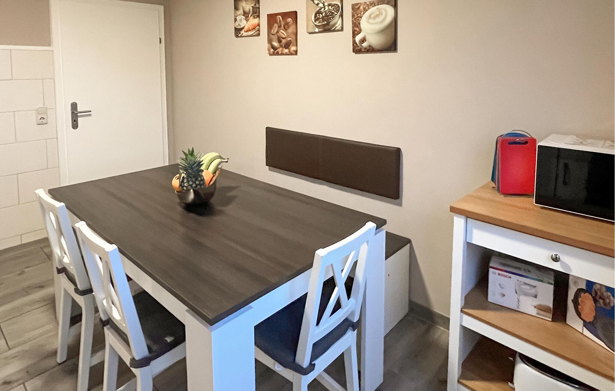 Du kan kun se trafikken fra afstand i dette sommerhus. På grund af den endelige placering i udkanten kører kun naboen eller lejlighedsvis landbrugsudstyr forbi her. Du kan enten vandre eller cykle, og du kan starte direkte fra huset. Dine cykler, motorcykler eller andet fritidsudstyr kan tørre i garagen, der hører til huset, når de ikke er i brug. Ud over den aflåselige garageparkeringsplads har huset yderligere to parkeringspladser ved ejendommer. I dårligt vejr kan du nyde om aftenen spille brætspil, læse eller bare se tv i huset.