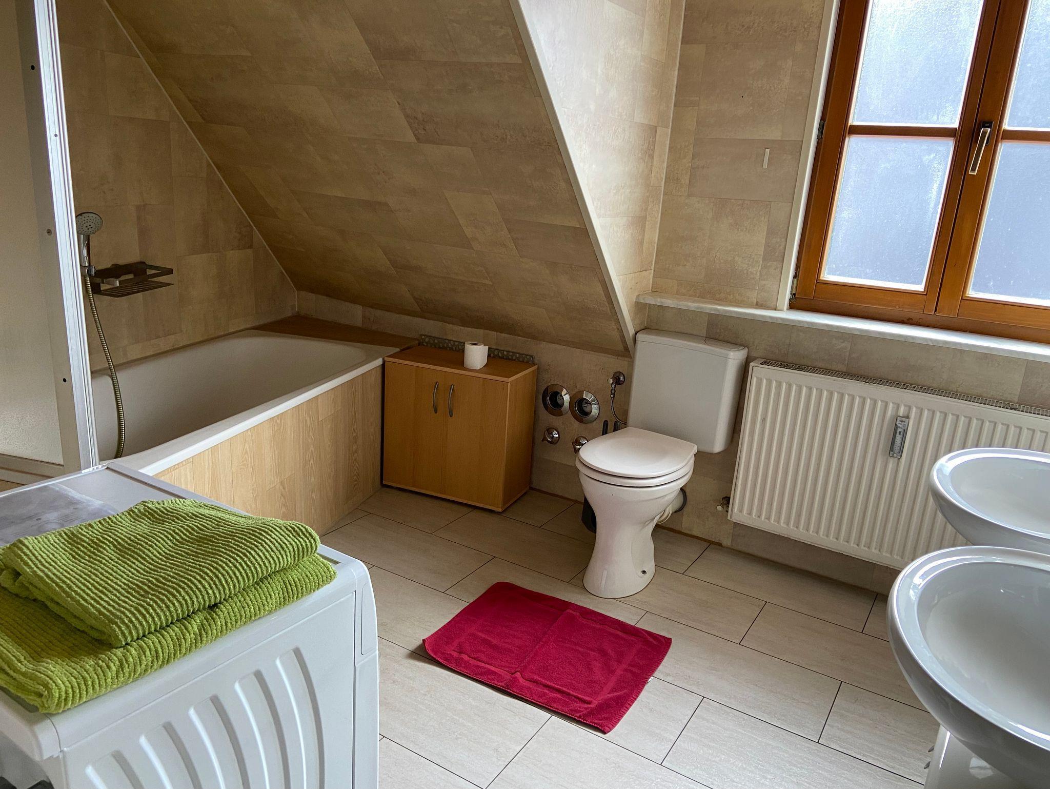 Diese charmante 80 m² große Dachgeschosswohnung bietet eine einladende Atmosphäre und viel Platz für einen komfortablen Aufenthalt. Sie verfügt über zwei gemütliche Schlafzimmer – eines mit einem Einzelbett und das andere mit zwei Einzelbetten – ideal für Familien, Freunde oder Kollegen. Das großzügige Wohnzimmer lädt zum Entspannen ein, während die voll ausgestattete Küche alles bietet, was man für die Zubereitung eigener Mahlzeiten benötigt. Das moderne Badezimmer überzeugt mit einer Dusche und einer Badewanne, sodass sowohl schnelle Erfrischungen als auch entspannende Bäder möglich sind. Ein perfektes Zuhause auf Zeit mit gemütlichem Flair!