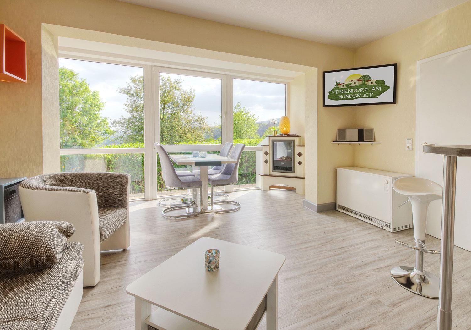 Luxus trifft Natur: Erleben Sie entspannte Tage in Ihrem Deluxe Bungalow im Thüringer Wald - modern, komfortabel und ganz privat. Der stilvoll eingerichtete Bungalow verfügt über einen Wintergarten mit elektrischer Beschattung, Fußbodenheizung, Ambientekamin und eine hochwertige Einbauküche mit Markengeräten.