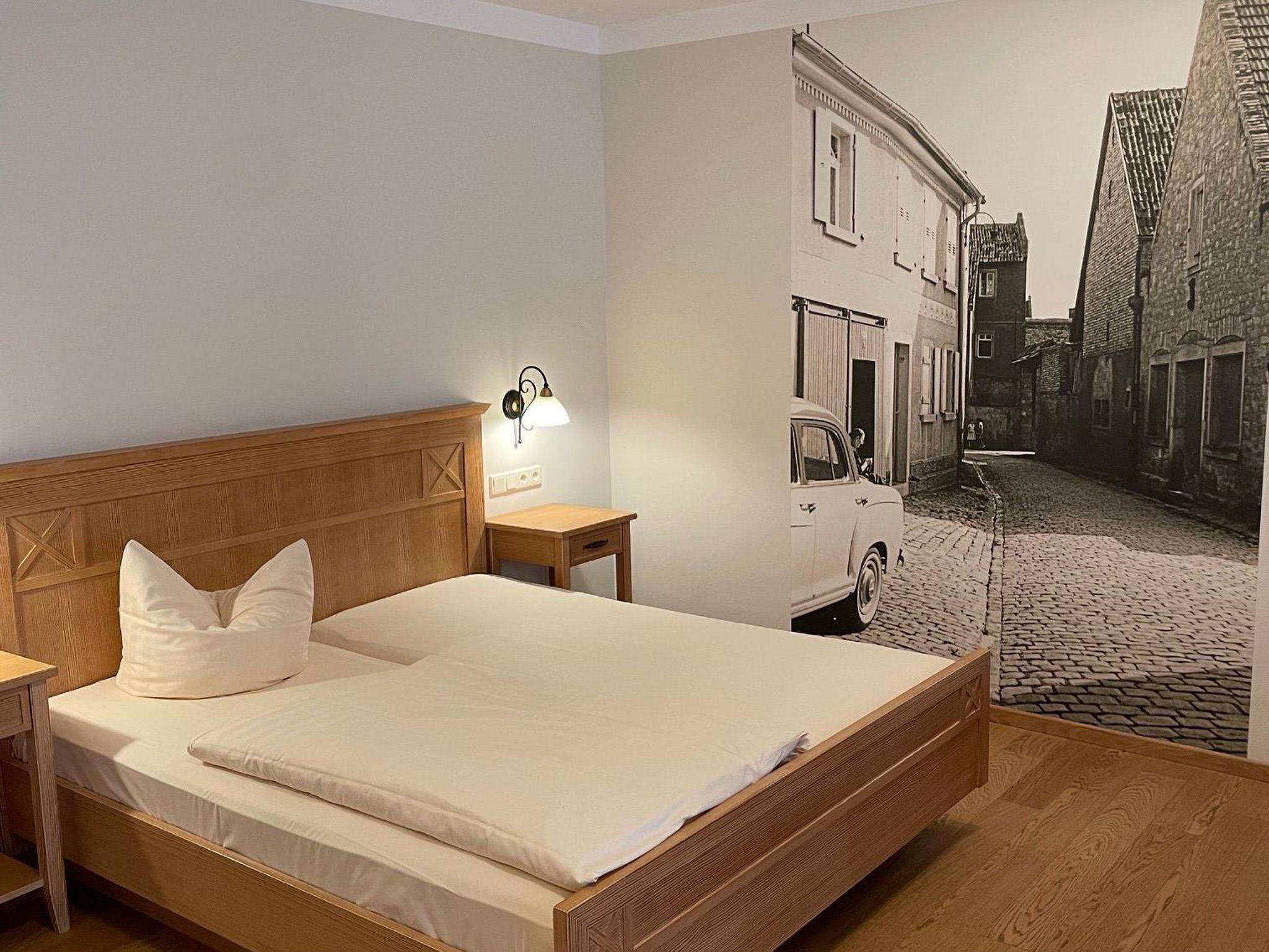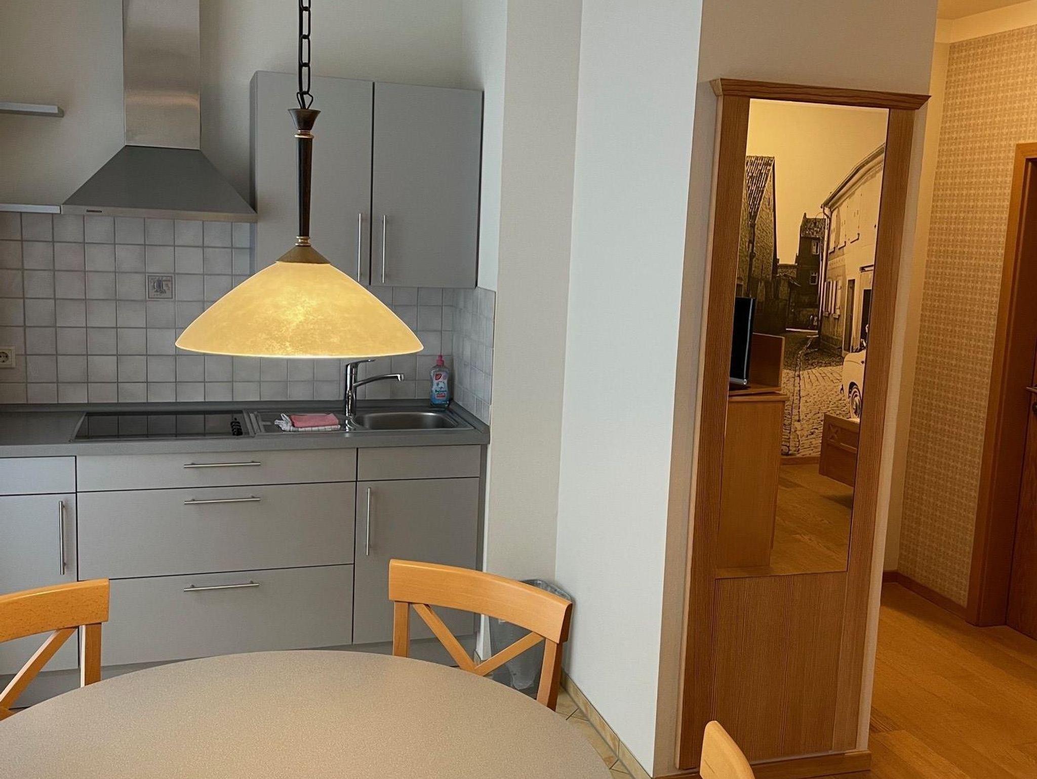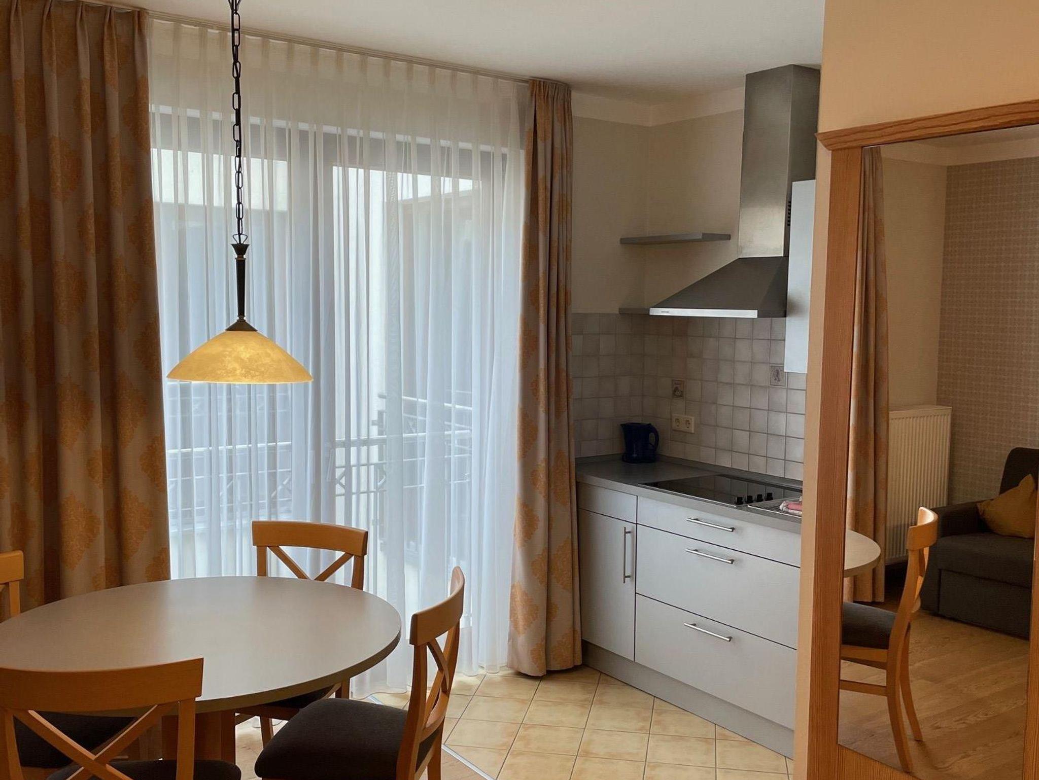 Das Hotel verfügt über zwei geräumige Appartements. Das eine Appartement liegt im ersten Stock am Ende des Flurs und das Andere befindet sich im zweiten Stock am Ende des Flures. Sie zeigen zum kleinen Innenhof, sind sehr ruhig gelegen und durch die großen Fenster schön hell. Es ist ein kleiner Balkon angeschlossen. In dem offenen Wohn-/Schlafzimmer befinden sich neben dem Ehebett eine Schlafcouch für ein bis zwei Personen, ein Esstisch für 4 Personen sowie eine kleine Küchenzeile mit Spülbecken, Herd und Wasserkocher. Der Kleiderschrank im Eingangsbereich hat einen eingebauten Safe und das innenliegende Bad im Landhausstil ist mit einer Badewanne ausgestattet.