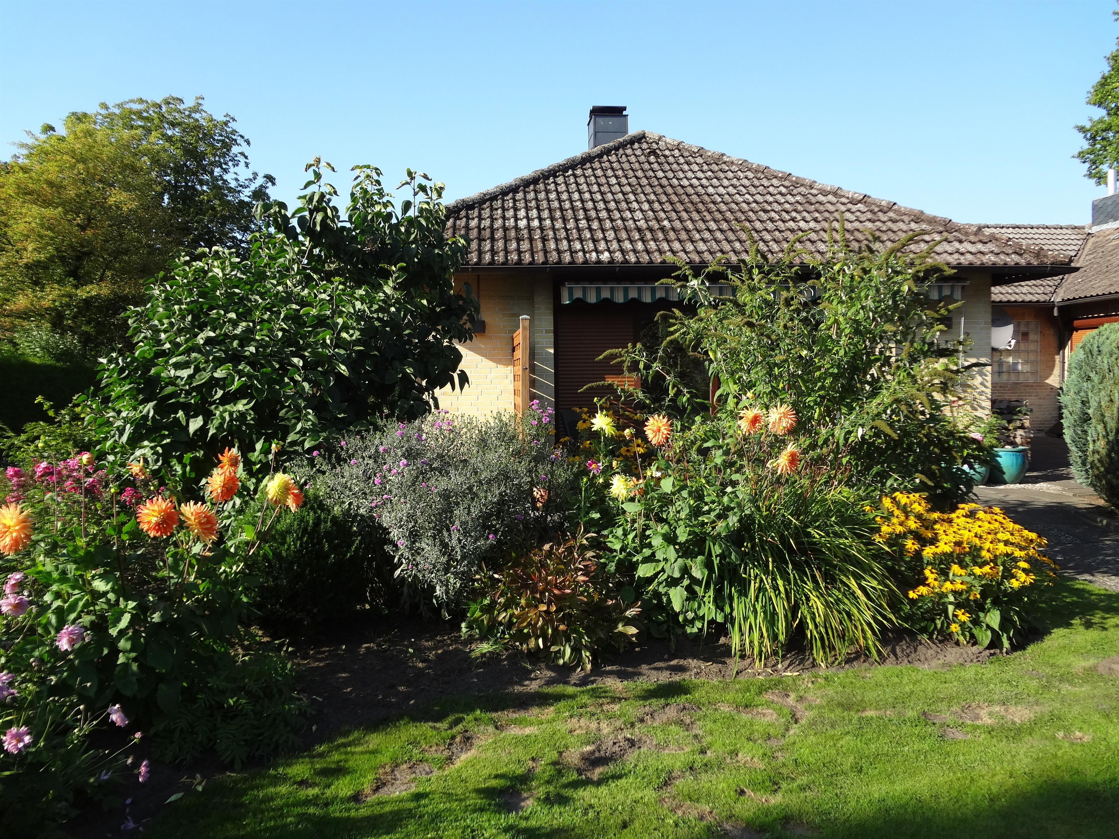 Alle Fenster sind mit Außenjalousien ausgestattet, um Ihnen angenehme Ruhe und Privatsphäre zu bieten. Eine überdachte sowie eine offene Terrasse auf der Südwestseite sowie der großzügige Garten laden zum Verweilen und Entspannen ein.