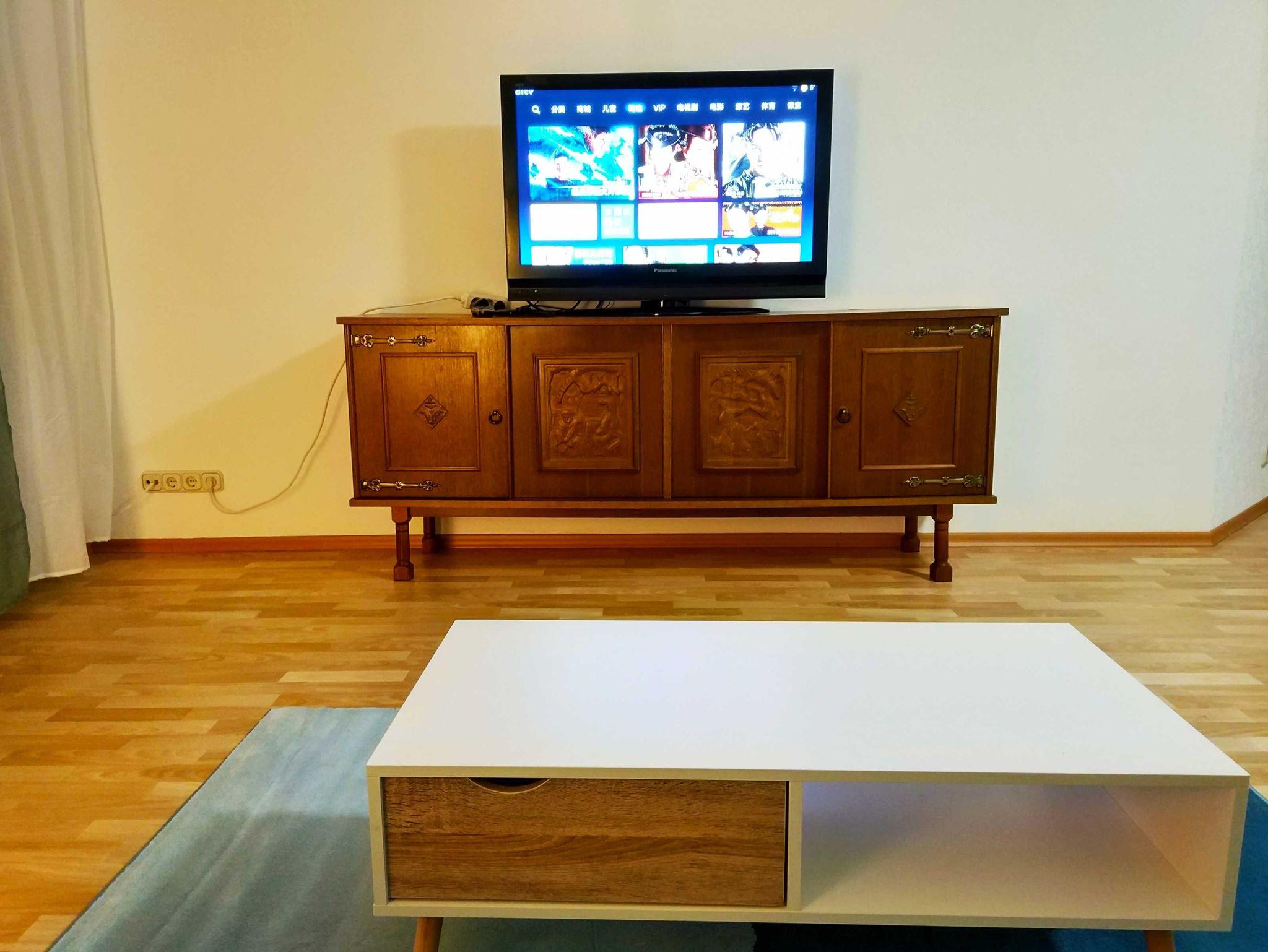 • Wohnzimmer mit Essecke (21.64m2) Esstisch und Stühle, Schlafsofa (140m*200m), Apple-TV