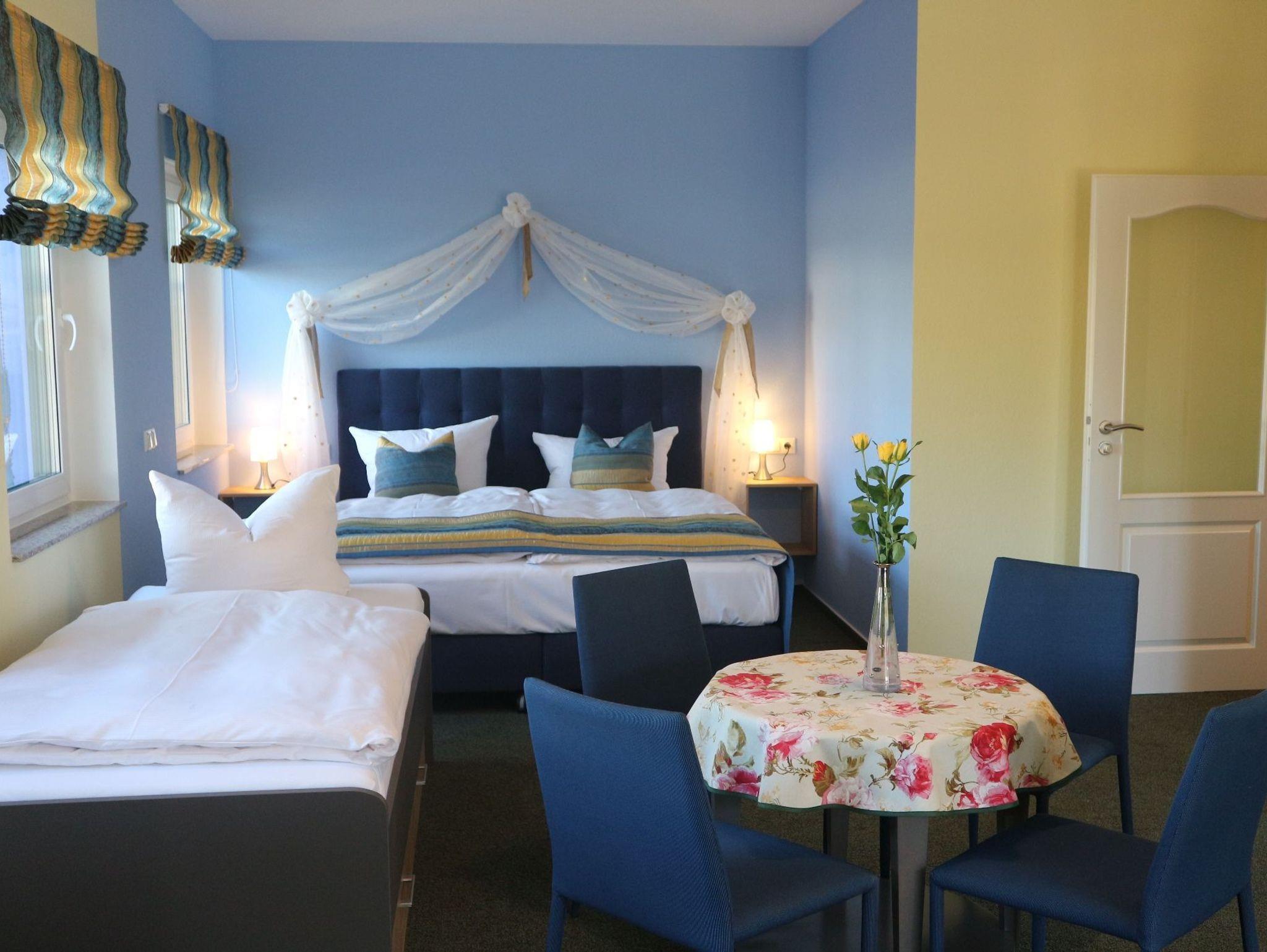 1 großzügiges Zimmer (Nr. 7) für 2 Personen mit gemütlicher Sofaecke. Aufbettung möglich.