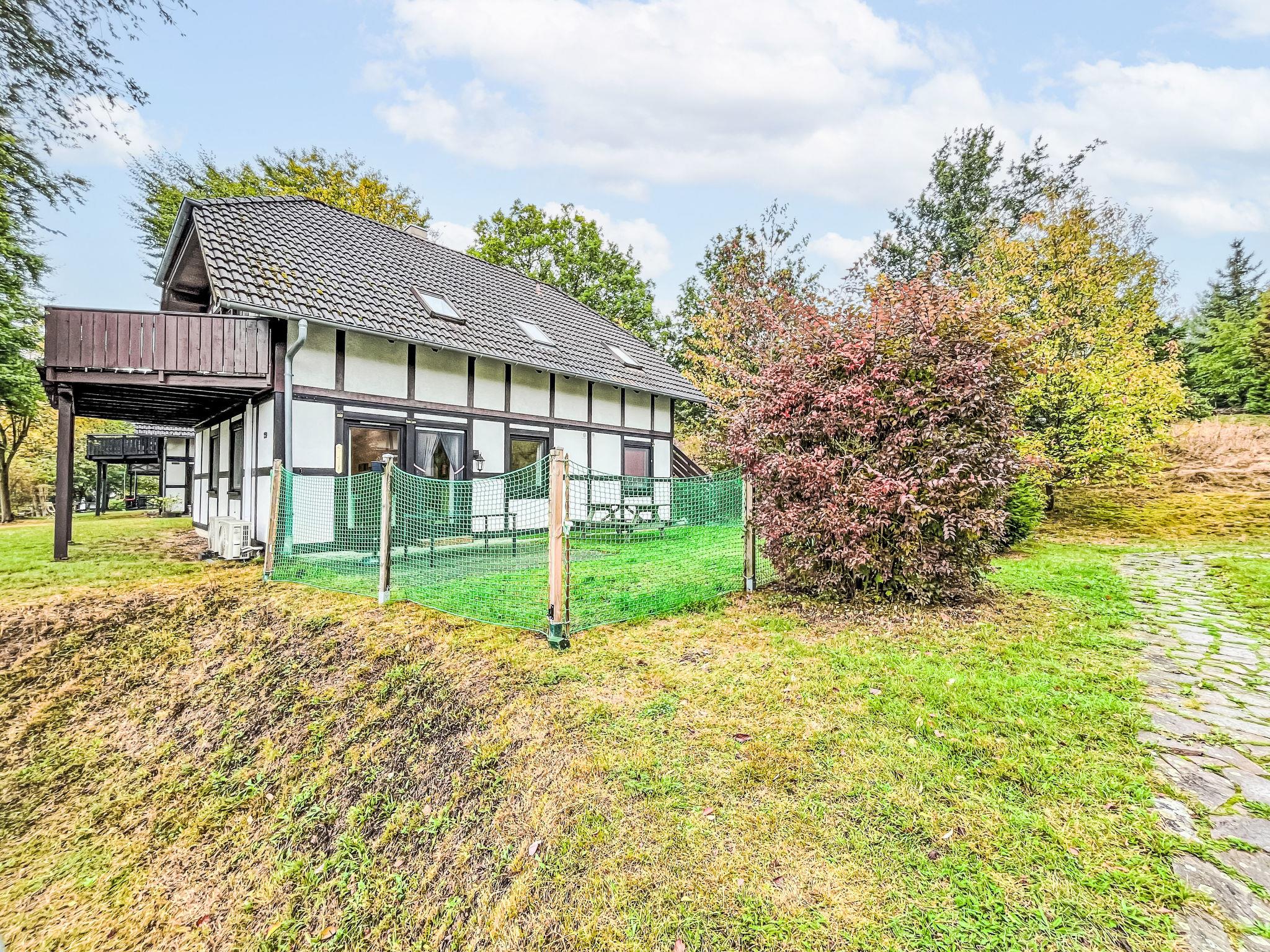 Holiday village "Frankenau", surrounded by trees and meadows. Outside the resort, 2 km from the centre of Frankenau, in the district Nationalpark Kellerwald, on a slope, 28 km from the lake. For shared use: natural state property, pond. In the complex: restaurant with TV, kiosk, sun terrace. Bread roll service. Grocery 8 km, restaurant 2 km, bakery 2 km, bicycle rental 15 km, bus stop 400 m, railway station "Frankenberg" 15 km, outdoor swimming pool 6 km, indoor swimming pool 15 km, thermal baths "Bad Wildungen-Reinhardshausen" 20 km, bathing lake 12 km. Golf course (18 hole) 25 km, tennis, indoor tennis centre 400 m, walking paths from the house 100 m, cycle lane 500 m, gondola lift 27 km, fishing possibilities 700 m. Nearby attractions: KellerwaldUhr 500 m, Schloss Waldeck 27 km. Well-known ski regions can easily be reached: Winterberg 45 km, Willingen 50 km. Well-known lakes can easily be reached: Edersee - Herzhausen 13 km. Hiking paths: Nationalpark Kellerwald 500 m. Please note: suitable for families. Neighbourhood highly sensitive to noise. Quietness and good behaviour expected. Some of the holiday homes can be reached via steps. At the park entrance there is a bistro/café with a sun terrace, Sunday breakfast buffet, children's cinema, table football (limited opening times outside of the season). There is also the option of using a washing machine and dryer for a fee.