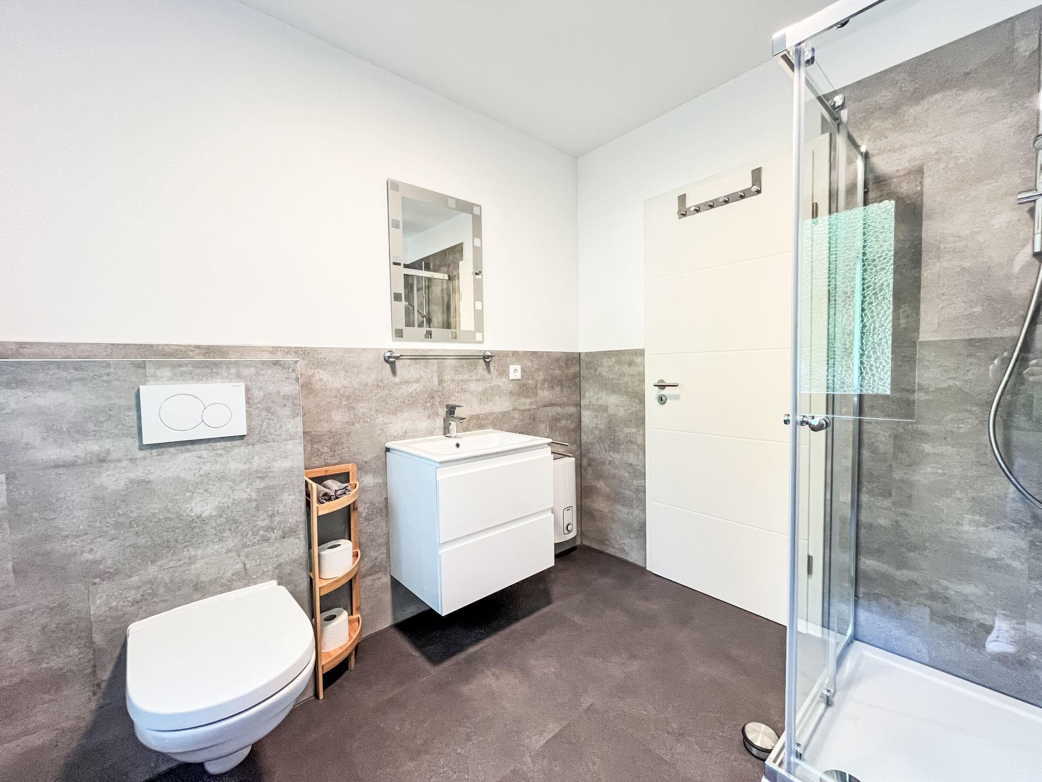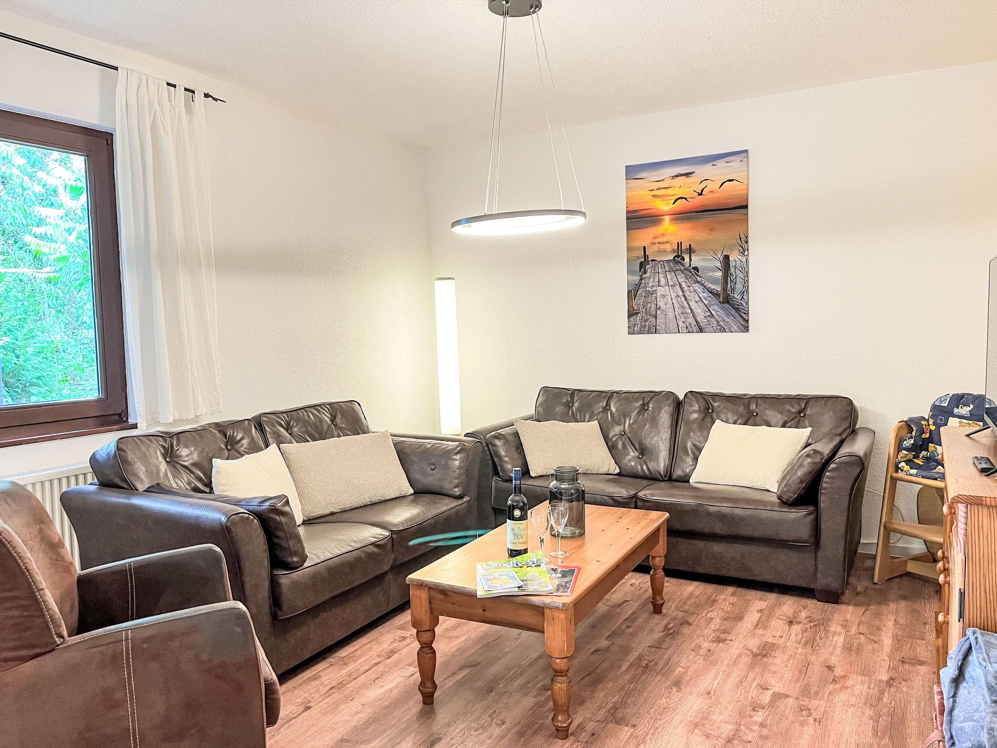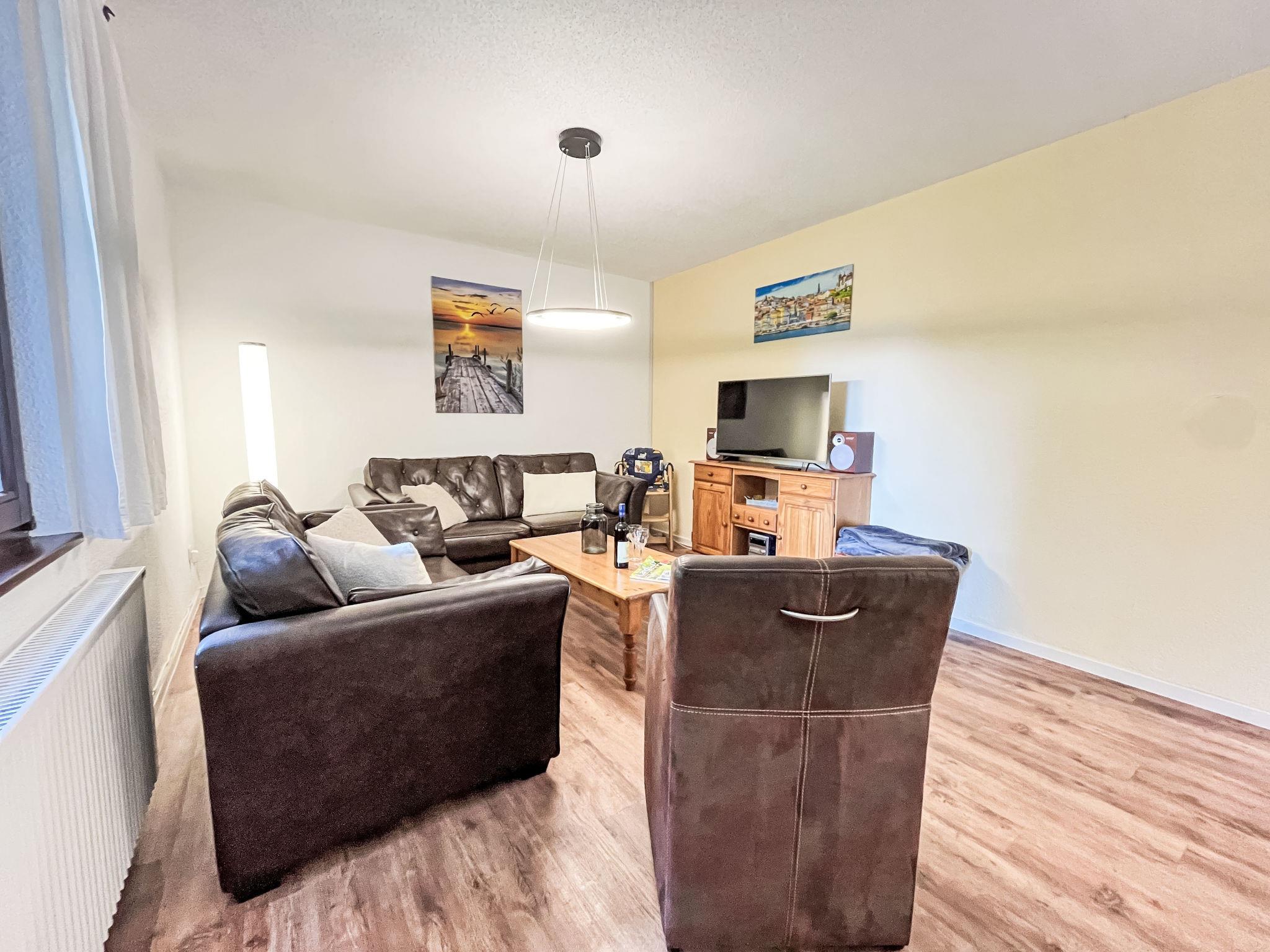"Sternberg 227", 3-room apartment 75 m2, on the ground floor. Modern and cosy furnishings: living/dining room with Scandinavian wood stove, satellite TV and radio. Exit to the terrace. 1 room with 1 double bed. 1 room with 2 beds. Open kitchen (oven, dishwasher, 4 ceramic glass hob hotplates, toaster, kettle, microwave, freezer). Shower/WC. Electric heating. Large terrace. Terrace furniture. Facilities: washing machine, children's high chair, baby cot. Internet (WiFi, free). Please note: non-smokers only. Maximum 2 pets/ dogs allowed. Smoke alarm, fire extinguisher.