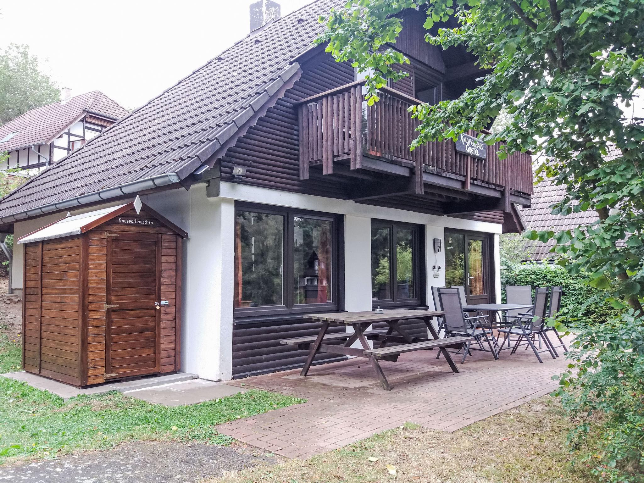 Holiday village "Frankenau", surrounded by trees and meadows. Outside the resort, 2 km from the centre of Frankenau, in the district Nationalpark Kellerwald, on a slope, 28 km from the lake. For shared use: natural state property, pond. In the complex: restaurant with TV, kiosk, sun terrace. Bread roll service. Grocery 8 km, restaurant 2 km, bakery 2 km, bicycle rental 15 km, bus stop 400 m, railway station "Frankenberg" 15 km, outdoor swimming pool 6 km, indoor swimming pool 15 km, thermal baths "Bad Wildungen-Reinhardshausen" 20 km, bathing lake 12 km. Golf course (18 hole) 25 km, tennis, indoor tennis centre 400 m, walking paths from the house 100 m, cycle lane 500 m, gondola lift 27 km, fishing possibilities 700 m. Nearby attractions: KellerwaldUhr 500 m, Schloss Waldeck 27 km. Well-known ski regions can easily be reached: Winterberg 45 km, Willingen 50 km. Well-known lakes can easily be reached: Edersee - Herzhausen 13 km. Hiking paths: Nationalpark Kellerwald 500 m. Please note: suitable for families. Neighbourhood highly sensitive to noise. Quietness and good behaviour expected. Some of the holiday homes can be reached via steps. At the park entrance there is a bistro/café with a sun terrace, Sunday breakfast buffet, children's cinema, table football (limited opening times outside of the season). There is also the option of using a washing machine and dryer for a fee.