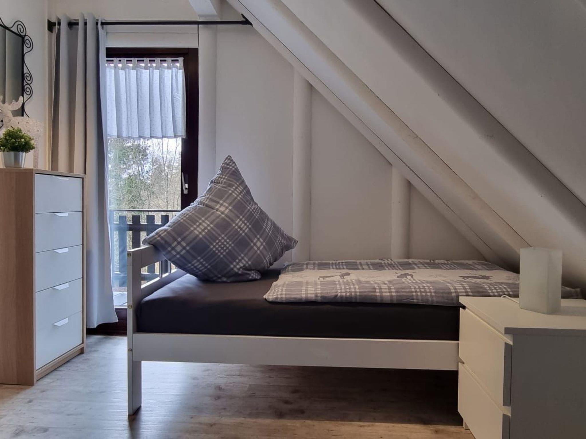 Experience nature right on the edge of the Kellerwald-Edersee National Park forest ...Our modern "Platzhirsch" holiday home is located in a quiet cul-de-sac, right on the edge of the forest in the holiday home village of Frankenau. This is located on a wooded hill at the Kellerwald-Edersee National Park. From here you can reach the only church in the Kellerwald, our Quernst church, directly via a beautiful and very informative forest path. The Kellerwald Clock and the Ark are also in the immediate vicinity of the holiday home village and will not only fascinate children.if you are looking for peace and quiet, want to relax or are a nature lover, you will spend wonderful days here.whether a time-out for two or a relaxing holiday with the whole family, here you are exactly right.our lovingly furnished house is the last one in a dead end.The well-kept holiday home has a living space of approx. 75 square metres and is spread over three levels.on the ground floor is the spacious living and dining room with a large dining table, pellet stove, cable TV, WLAN (free), digital radio with CD and a PlayStation 3 without games (please bring your own if required).five steps up you reach the second level. Here you will find a modern and fully equipped kitchen, a hallway and also the bathroom with WC and shower, as well as the bedroom with double bed (160 x 200 cm) and an adjoining bathroom with WC and washbasin.From the first floor, eight steps take you to the other bedroom with two single beds and access to the balcony. In the summer months, this is equipped with an awning. All two bedrooms naturally have sufficient storage space and room for a longer stay.Under the balcony there is a newly laid terrace with a large wooden table and 6 high-back chairs, a barbecue and a large parasol for hot summer days.You can park your car free of charge in our car park in front of the house.The nearby Edersee holiday area offers an unlimited range of leisure activities. In addition to swimming and the well-known water sports, you will also find attractions in the countryside around the huge reservoir. Whether nature lovers, sports enthusiasts, culture vultures or families with children, there is something for everyone thanks to the extensive range of tourist activities on offer, and the Frankenau holiday park is also a wonderful holiday destination in winter. Within a short time (approx. 45 min.) you can reach the winter sports resorts of Züschen, Winterberg and Willingen by car.800 m away in the village of Frankenau, you will find plenty of shops and restaurants so that you don't have to spend a long time shopping or cooking during your precious holiday time.We attach great importance to cleanliness and a feel-good atmosphere...this is the only way to make your holiday unforgettable.Frankenau is a recognised climatic health resort. Here you will find the cleanest air in the whole of Hesse... take a deep breath! We look forward to your visit, your Schneider family